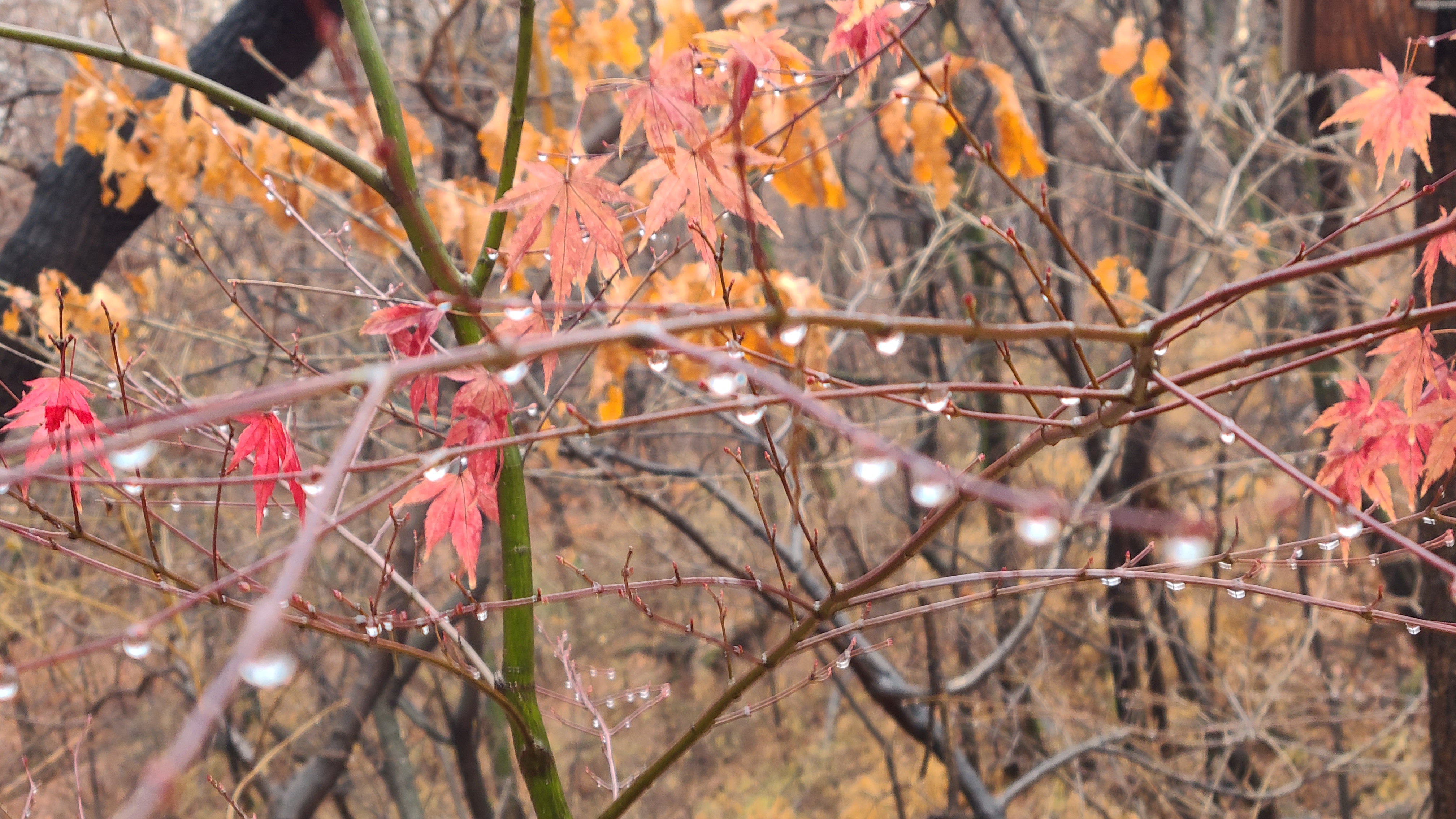 나뭇가지에 맺힌 빗방울이 마치 봄날이 다가와 있는 듯 봄비같은 느낌을 준다.