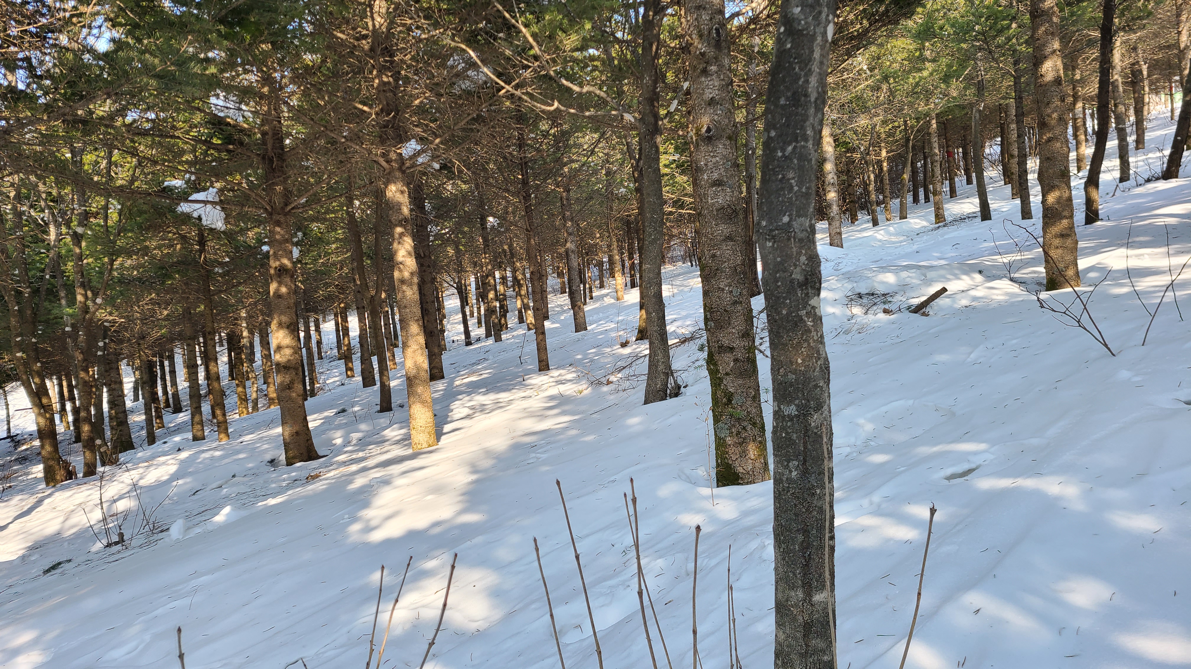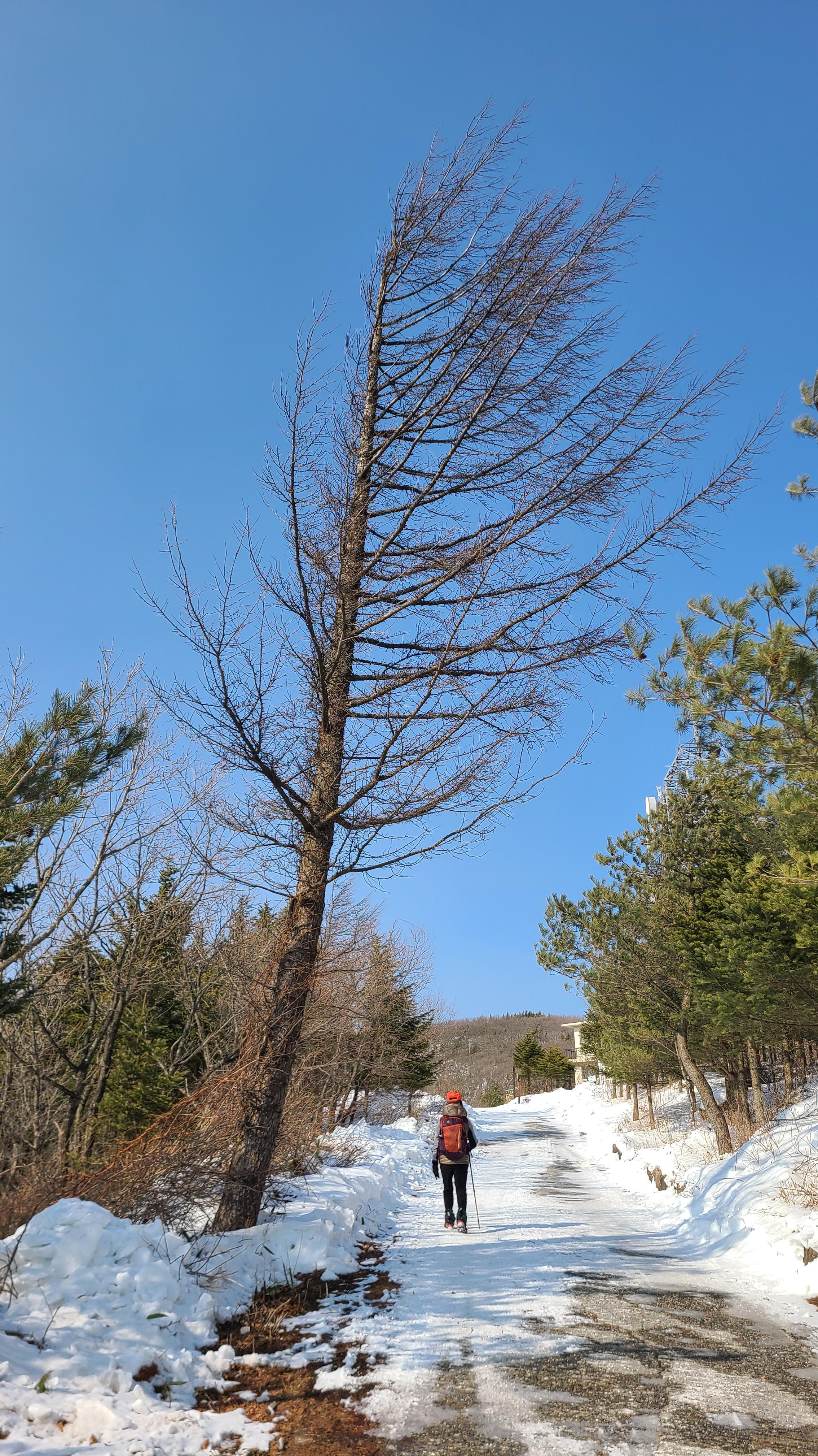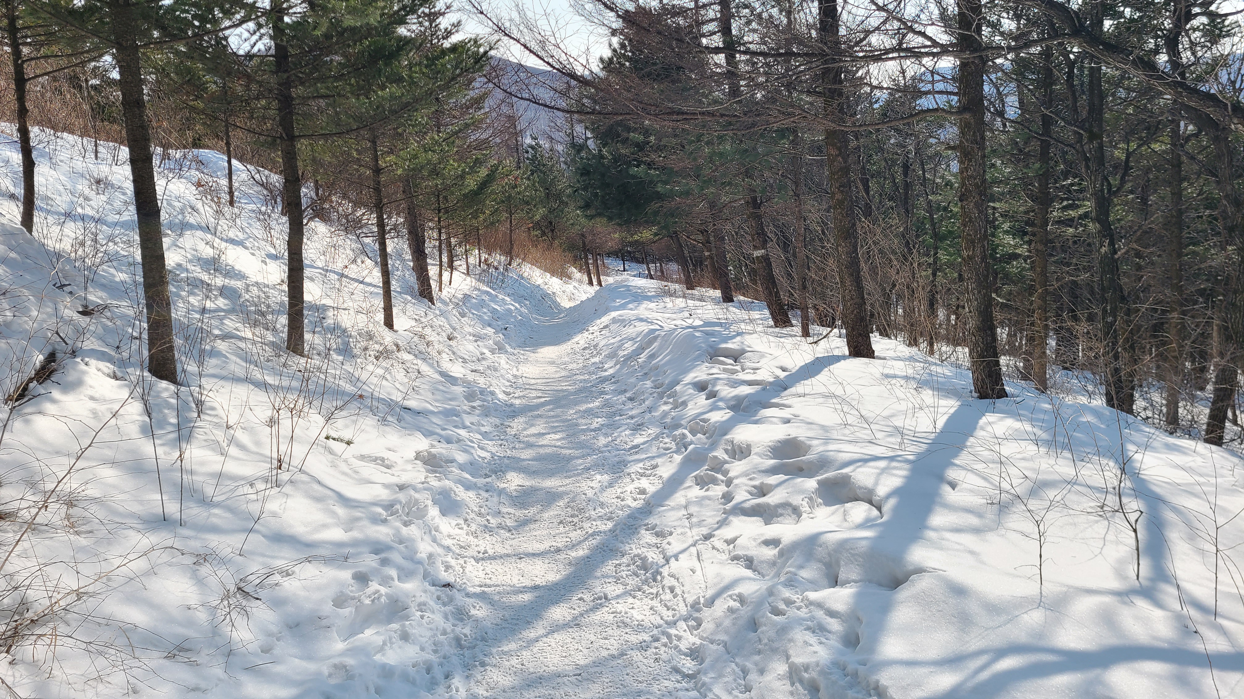 임도를 벗어나 산길로 접어드니 그래도 눈이 쌓여있고 간간히 바람이 불어온다.