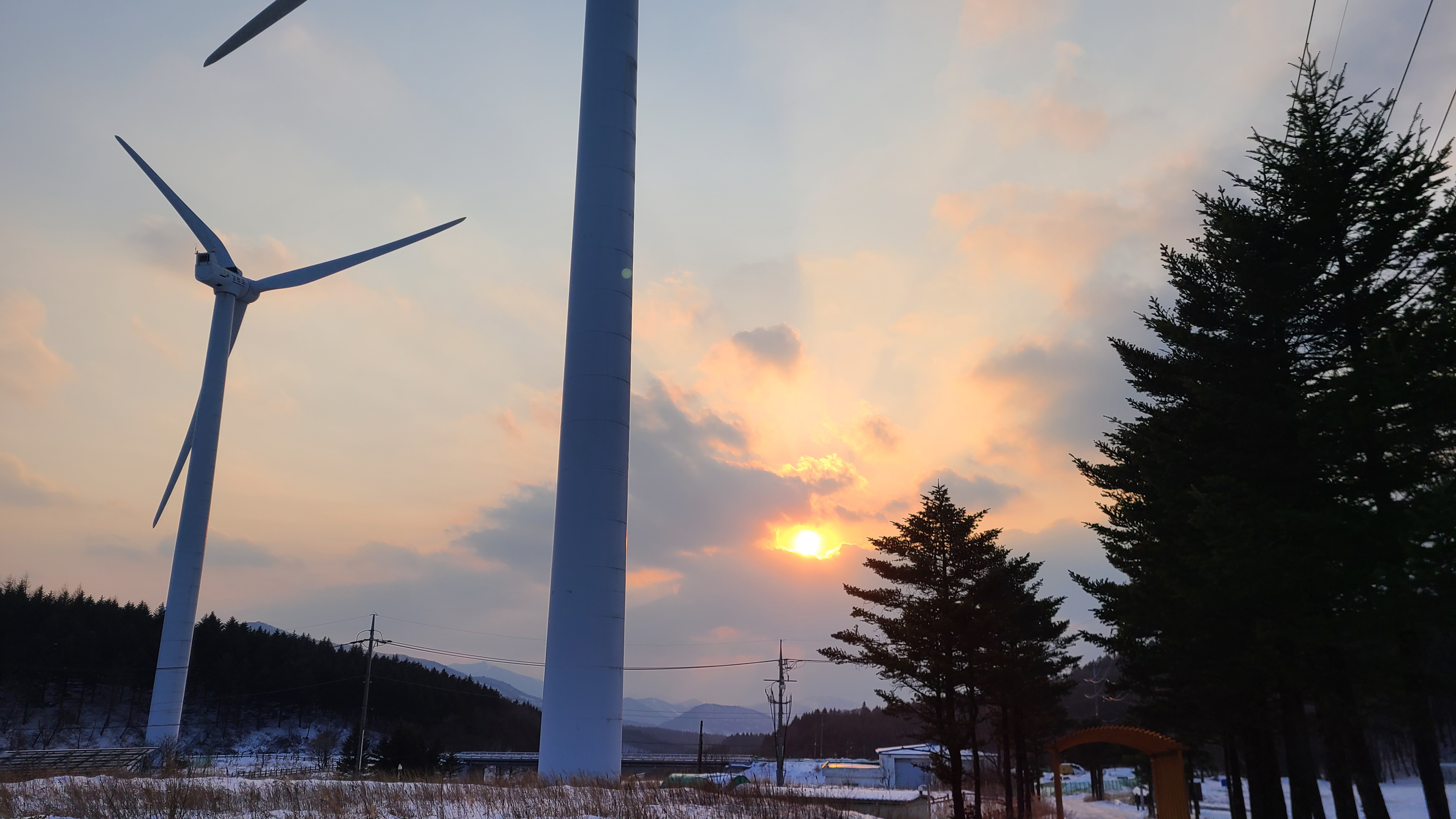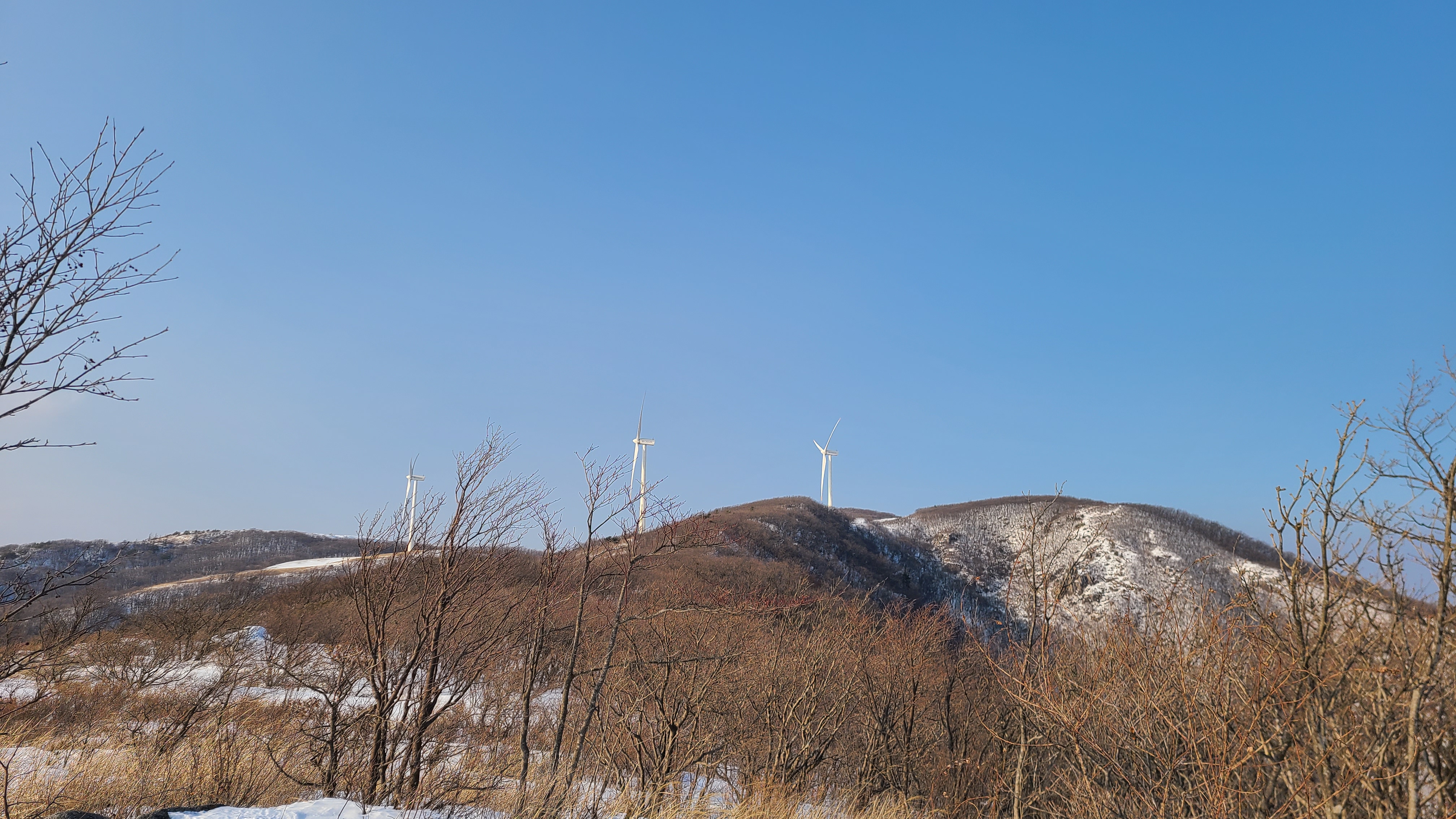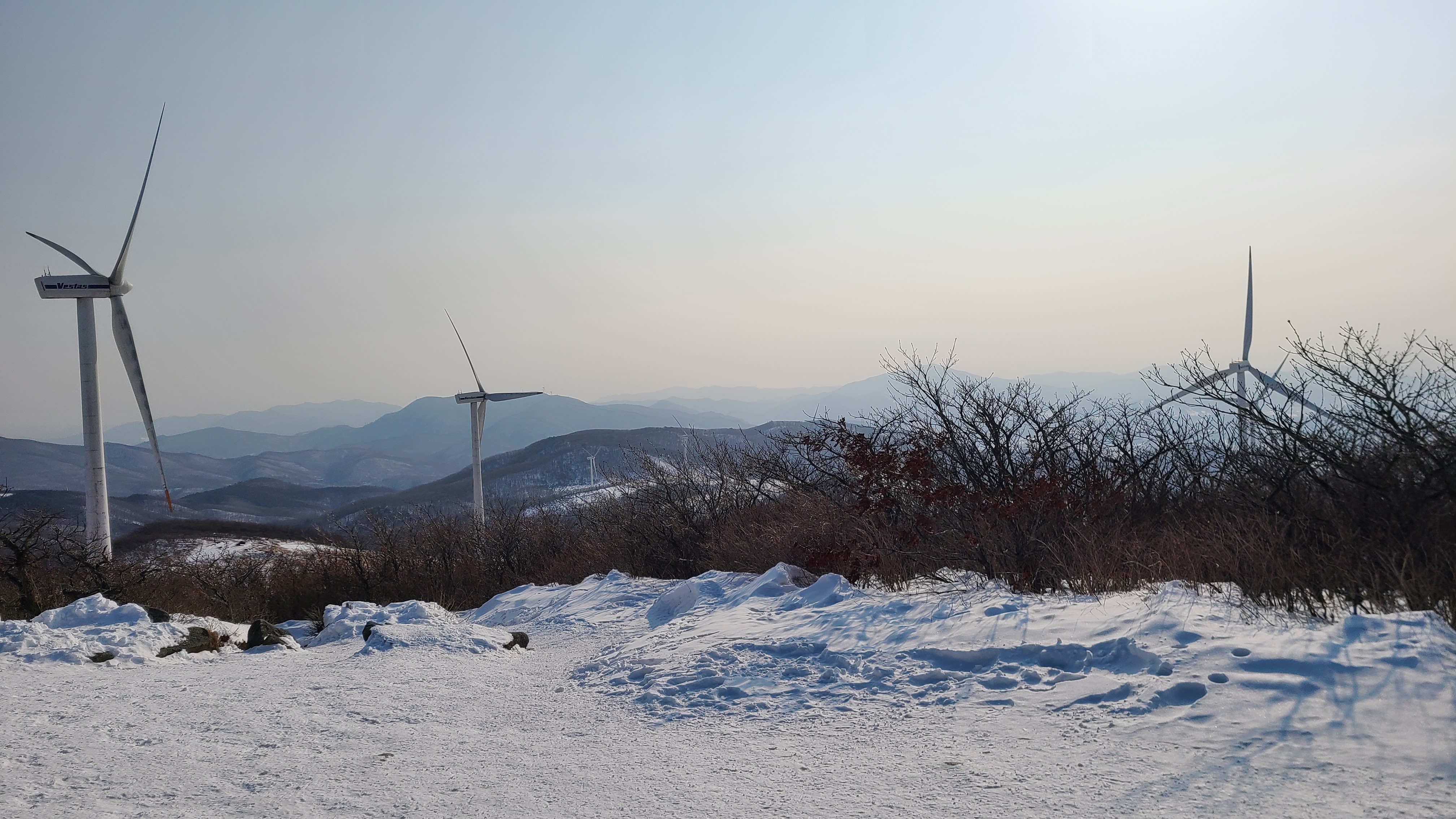 오를수록 바람은 거세어져 풍력발전기 옆을 지나니 바람소리가 매섭게 들려오고 어느순간 몸이