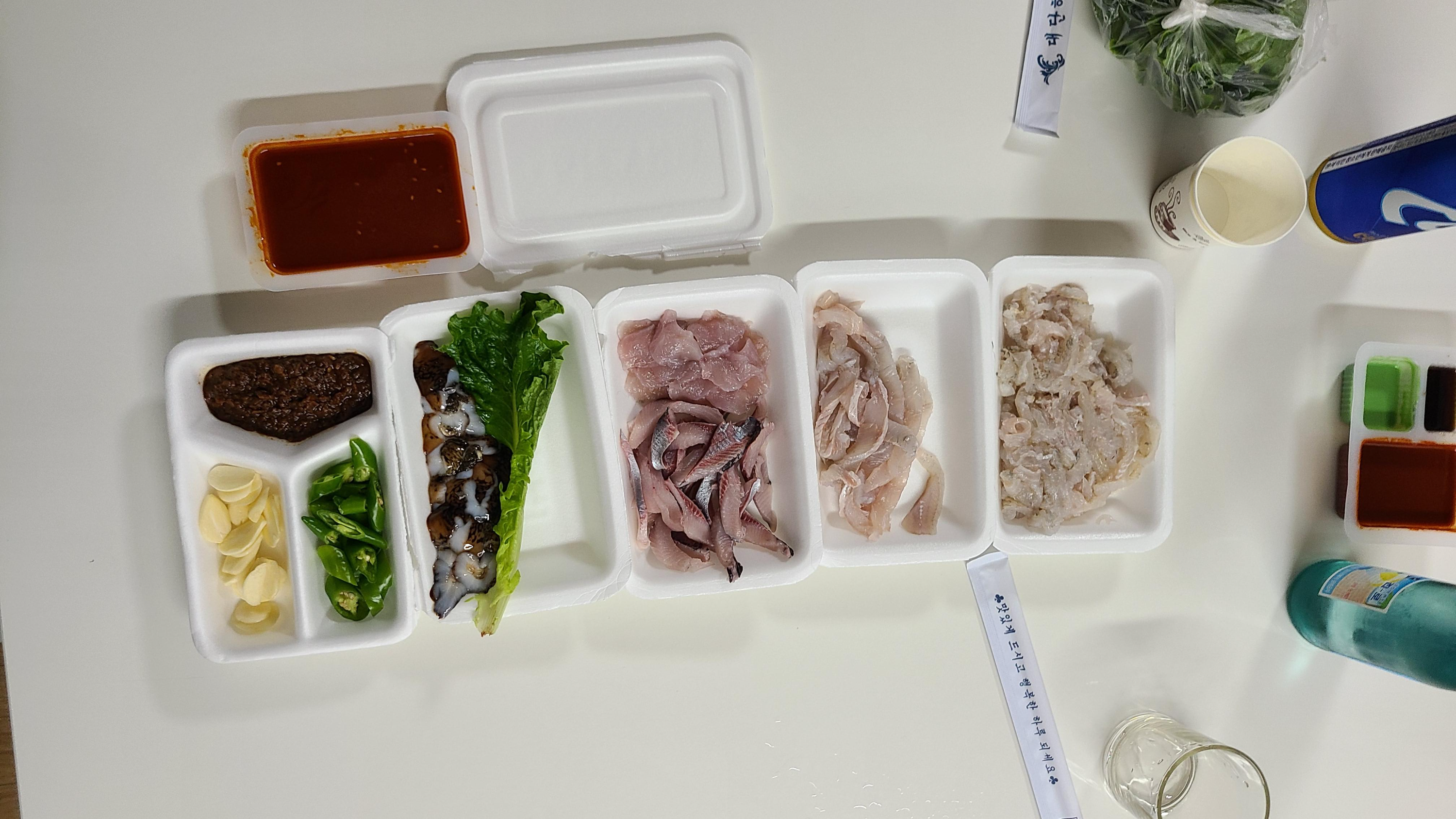 운전과 산행으로 피곤한 몸을 따뜻하게 씻고는 소맥한잔에 회를 안주로 먹으니 그만이다.