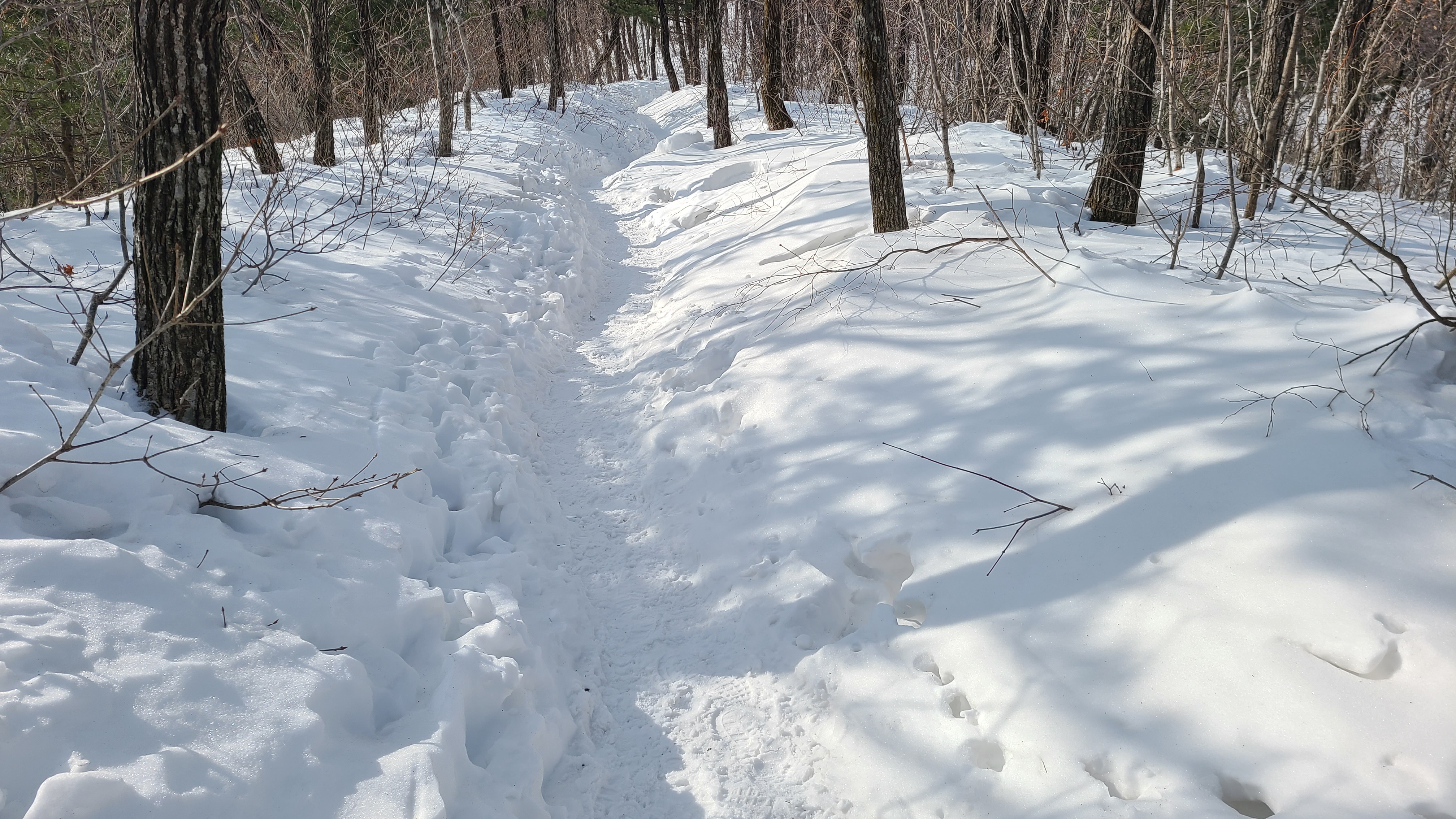 비료포대같은 비닐이 있으면 눈길에 썰매라도 탔을텐데하는 아쉬움이 있고 경사길은 다소 위험하기도하다.