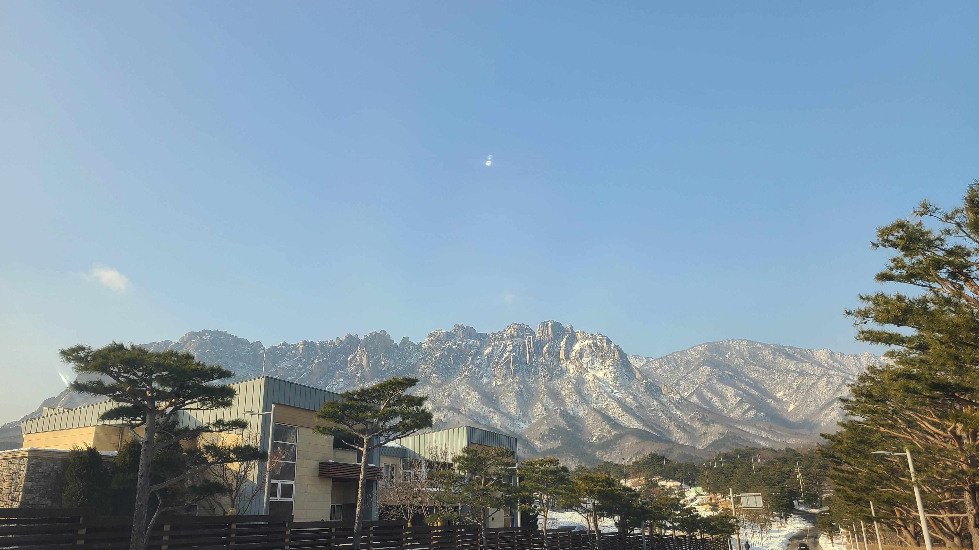 맞은편의 눈쌓인 산들이 웅장하고 보기에도 좋고 절경이니 오름의 힘듬을 보상받는다.