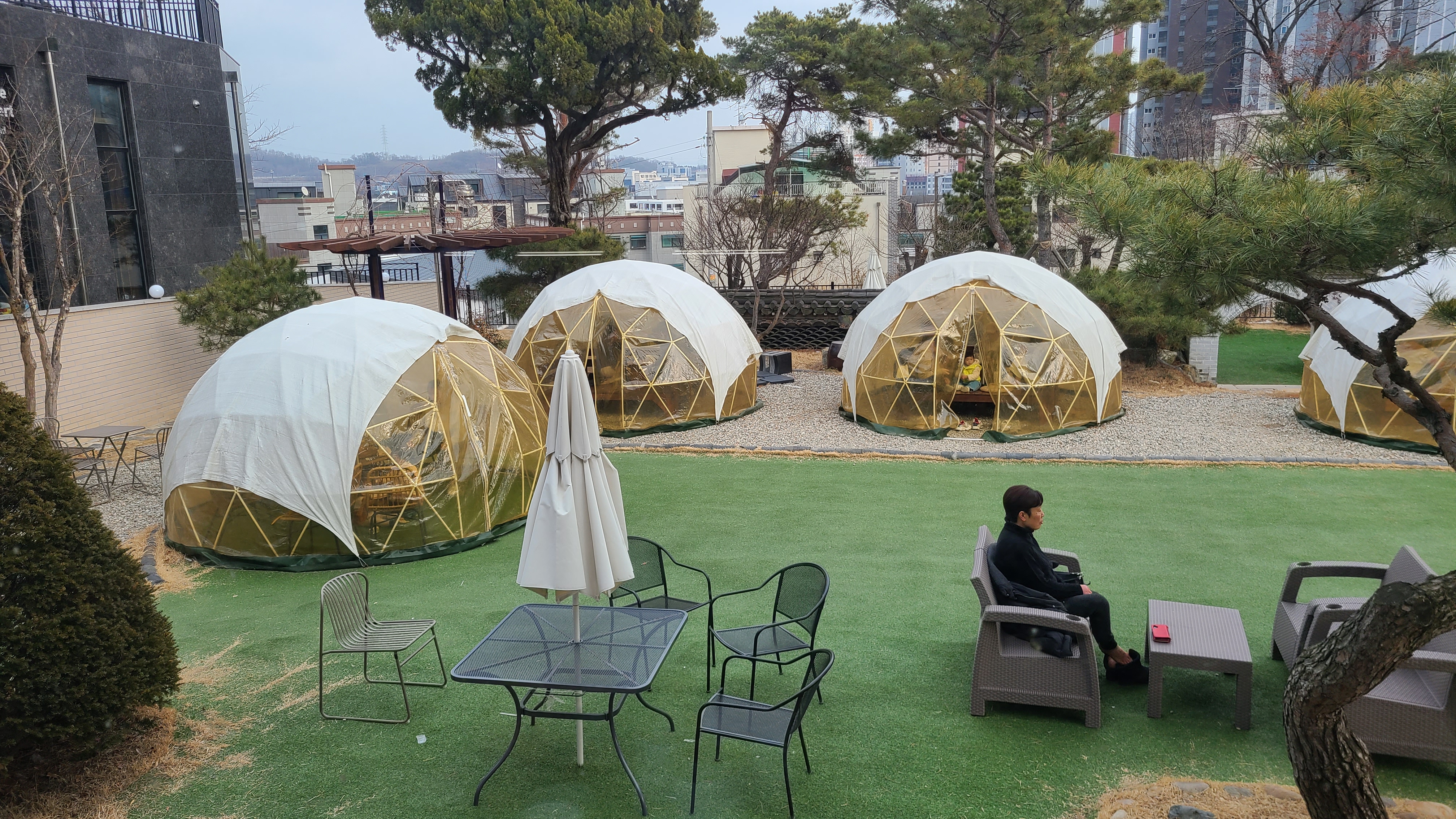 한옥으로 정원이 넓은 카페로 들어가니 실외도 실내도 좌석이 없을 정도로 만석이다.