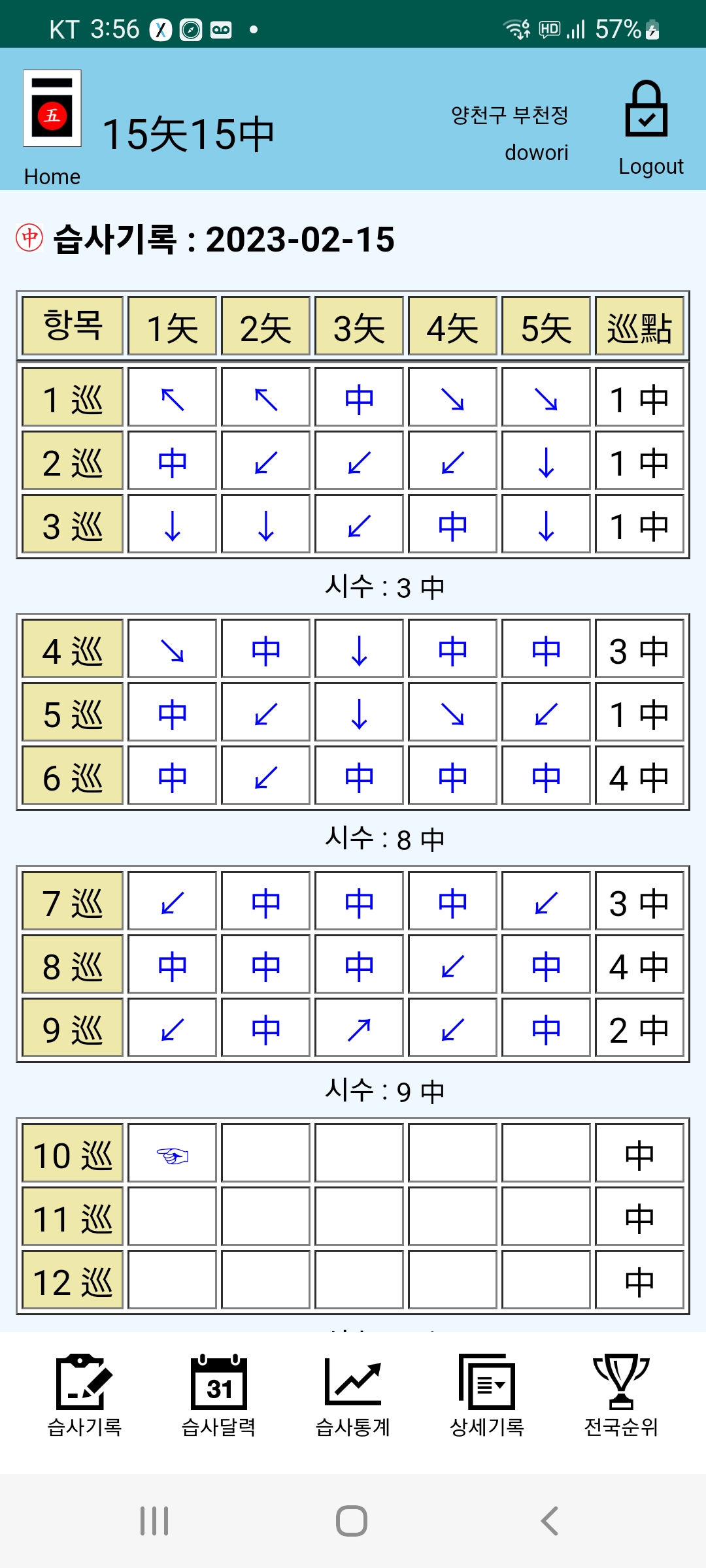 덕사로 과녁을 본 시수와 거의 비슷하게 나왔다.