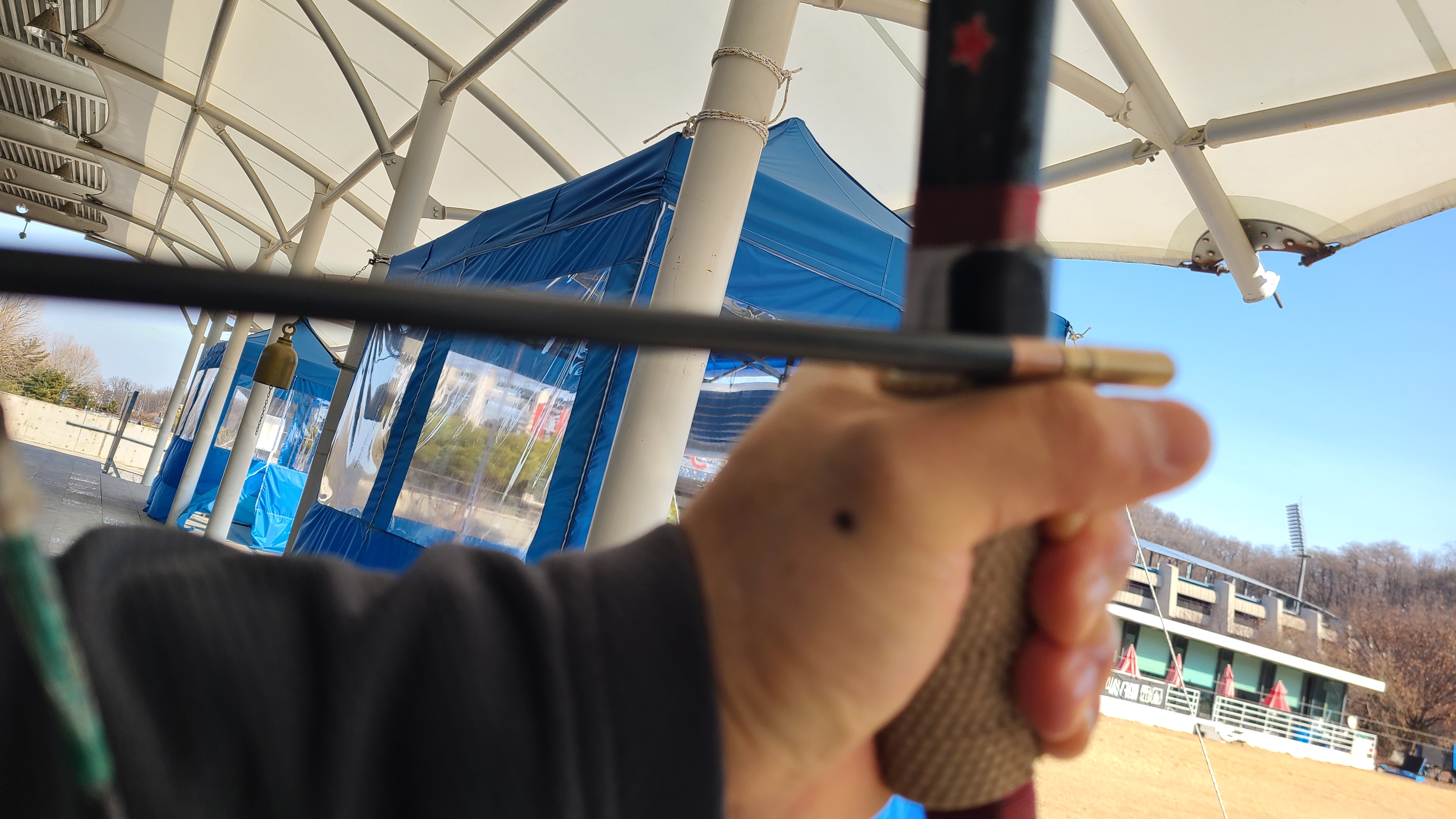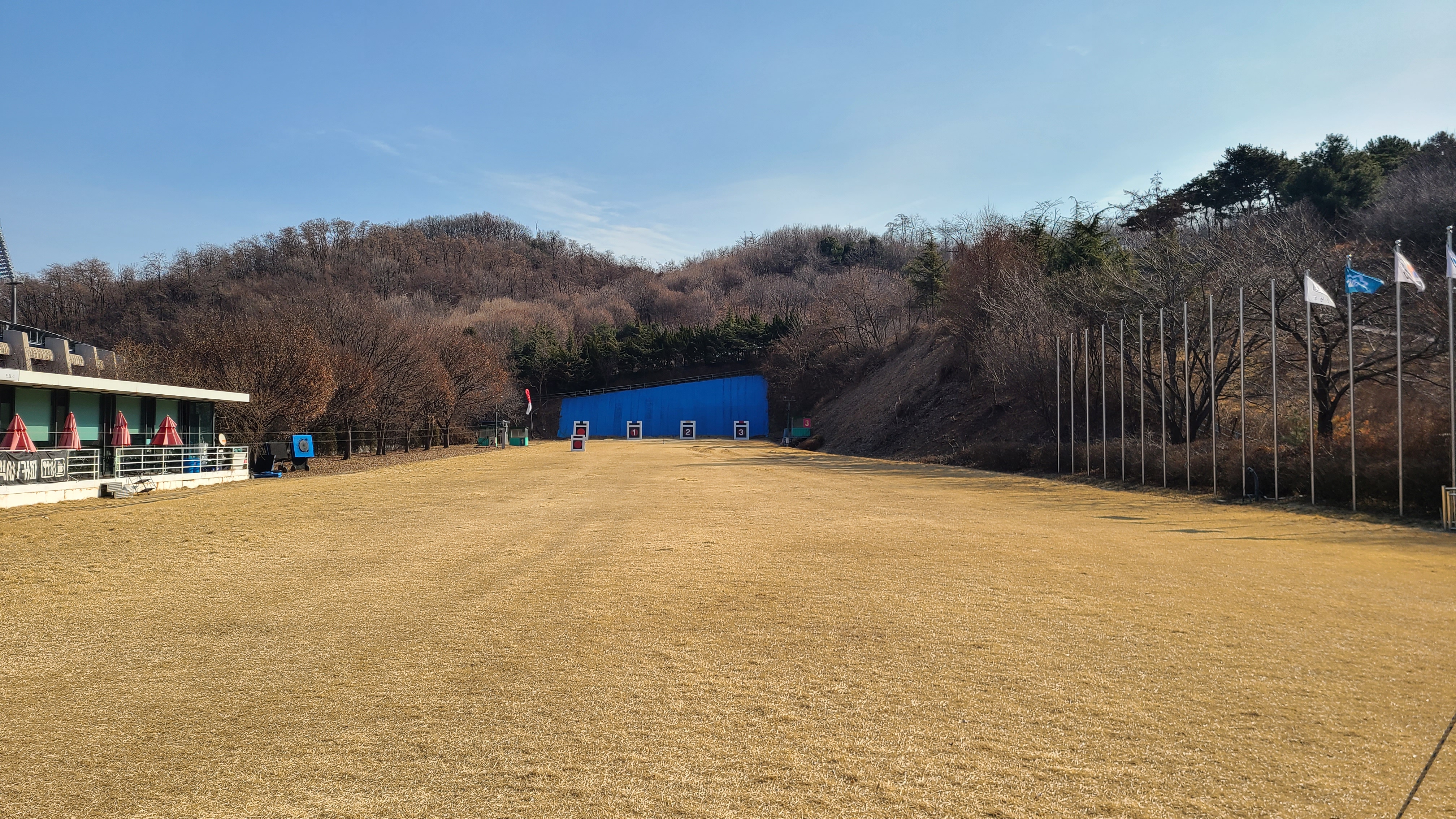 사대에 서서 145m의 거리에 있는 과녁을 맞추기가 쉽지는 않고 활의 강도와 화살의
