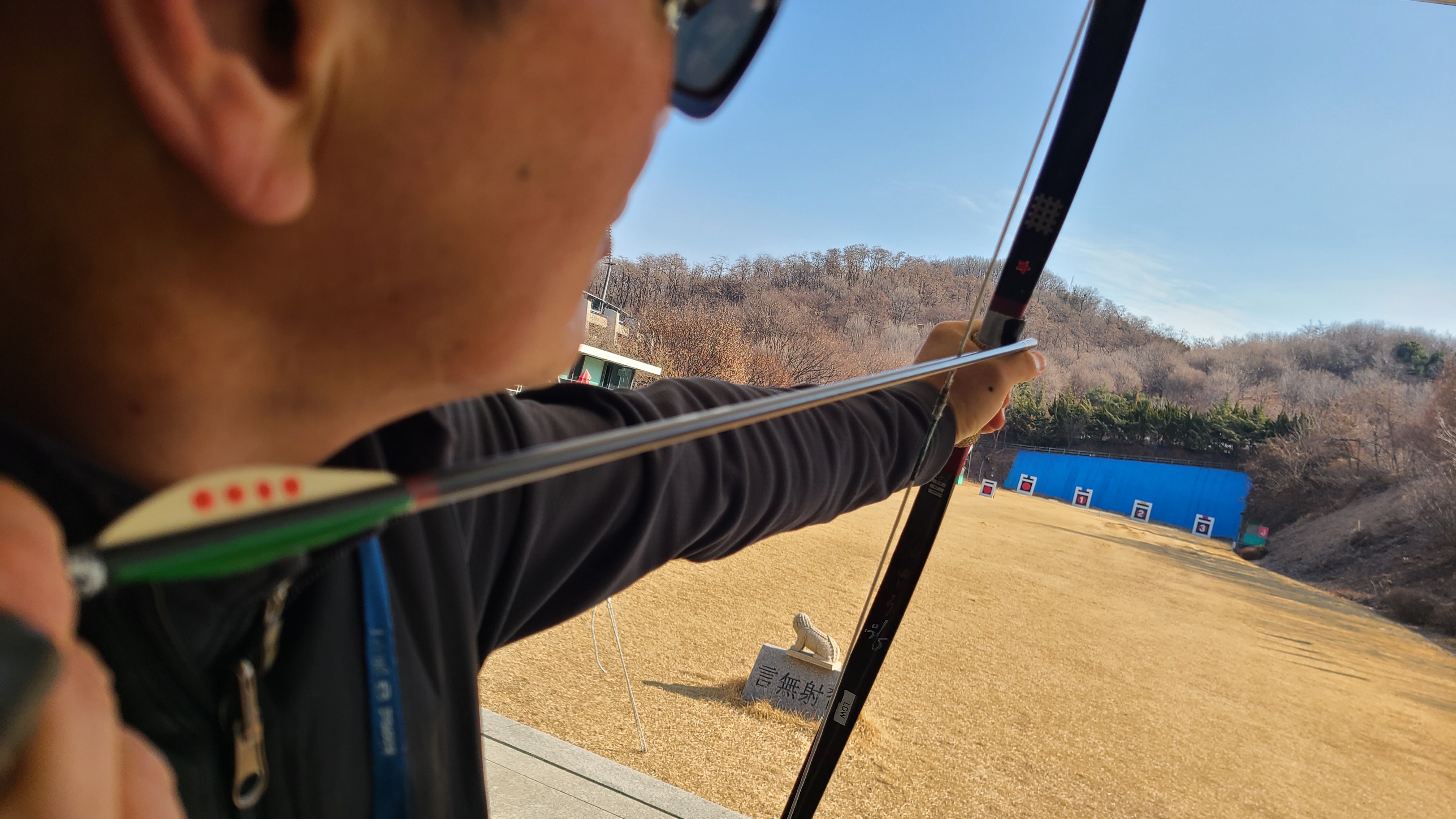 조금 거리가 짧기는 하지만 과녁부근으로 떨어지니 만작자세로 꾸준히 습사하면 될 것