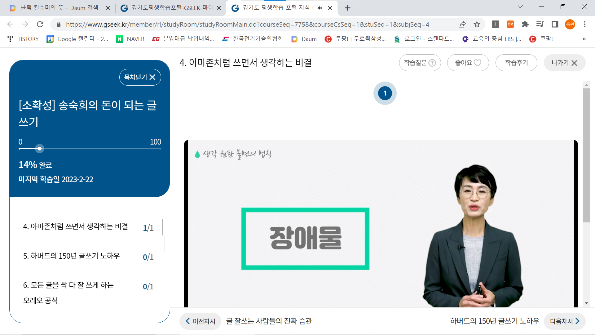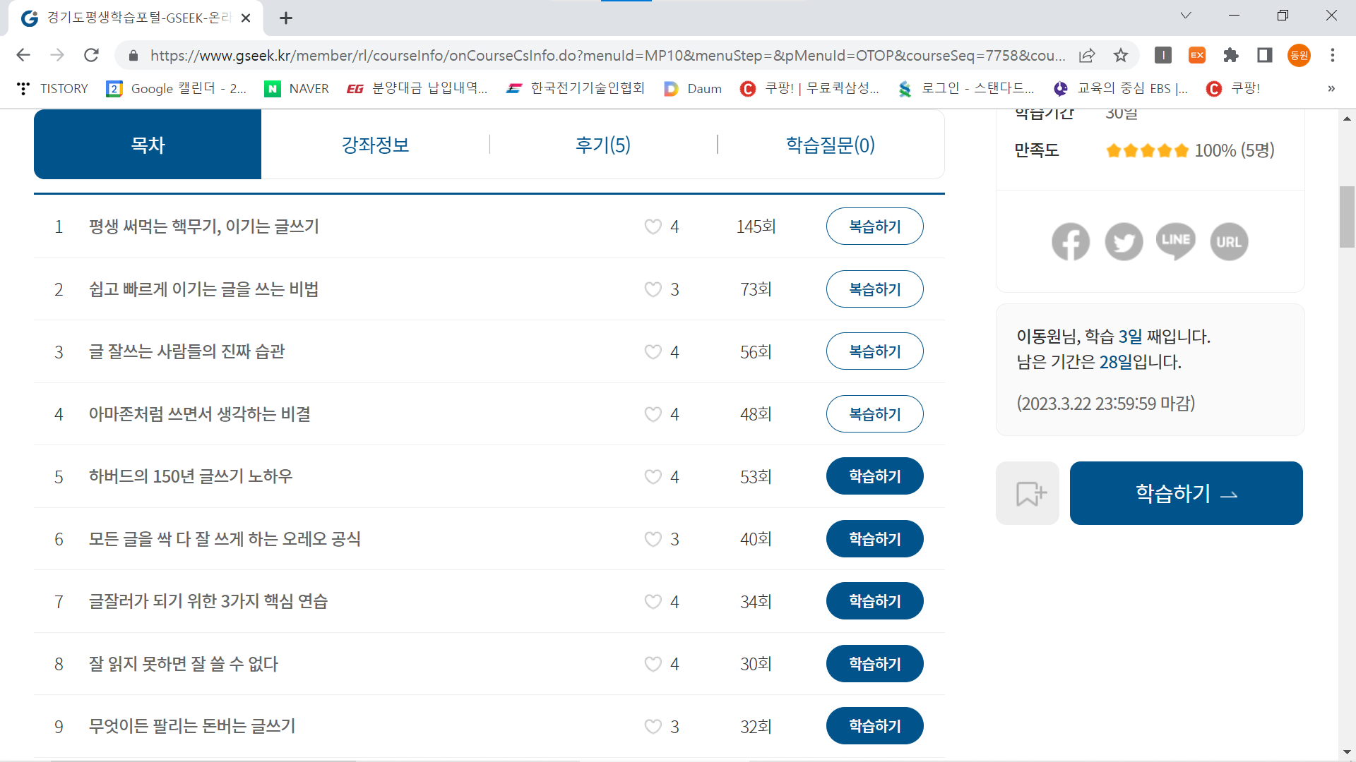 글쓰기 강좌를 들어보고있다.