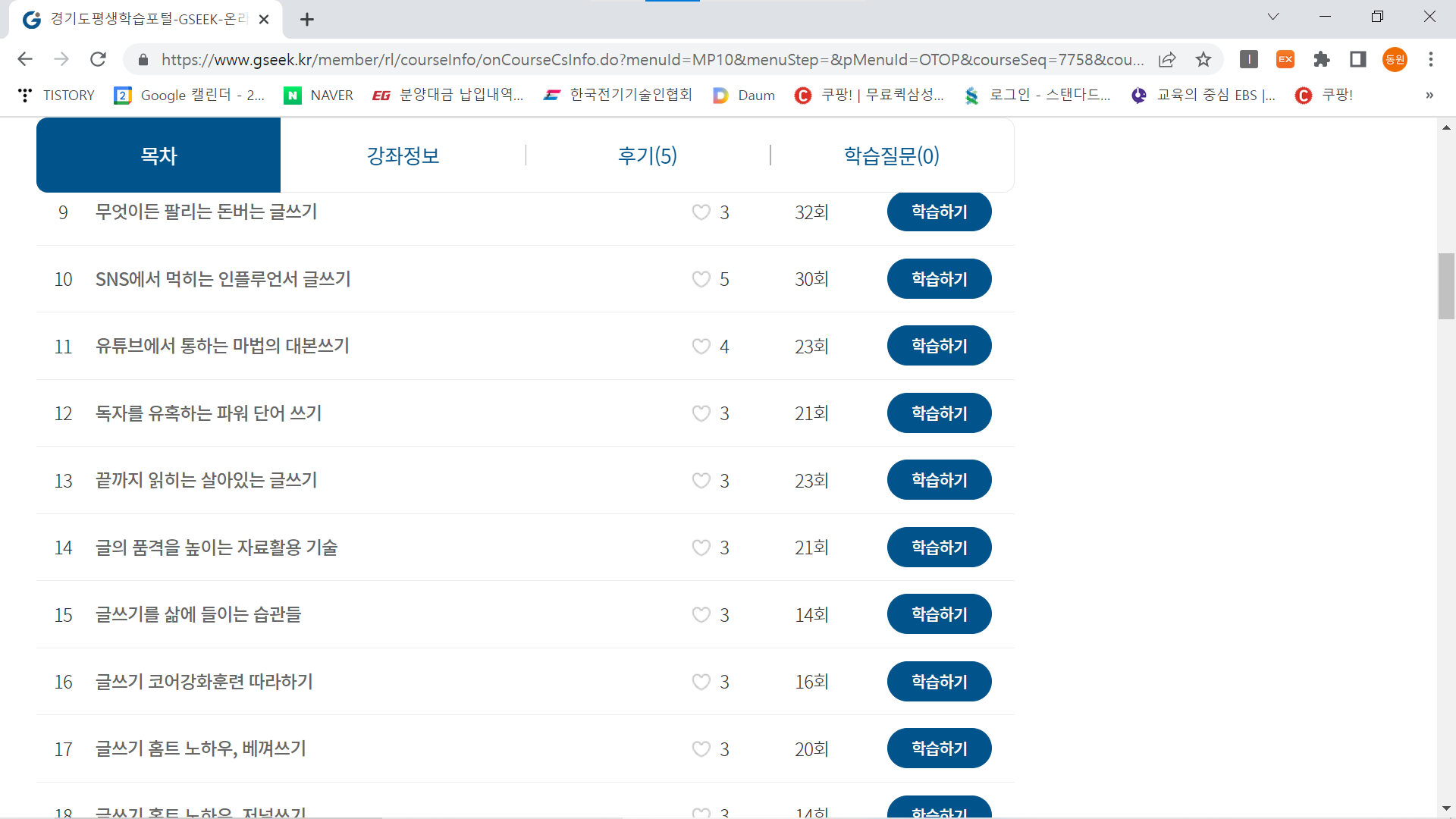 마음만 먹으면 유익한 정보와 좋은 강좌를 얼마든지 선택하여 들을 수가있다.