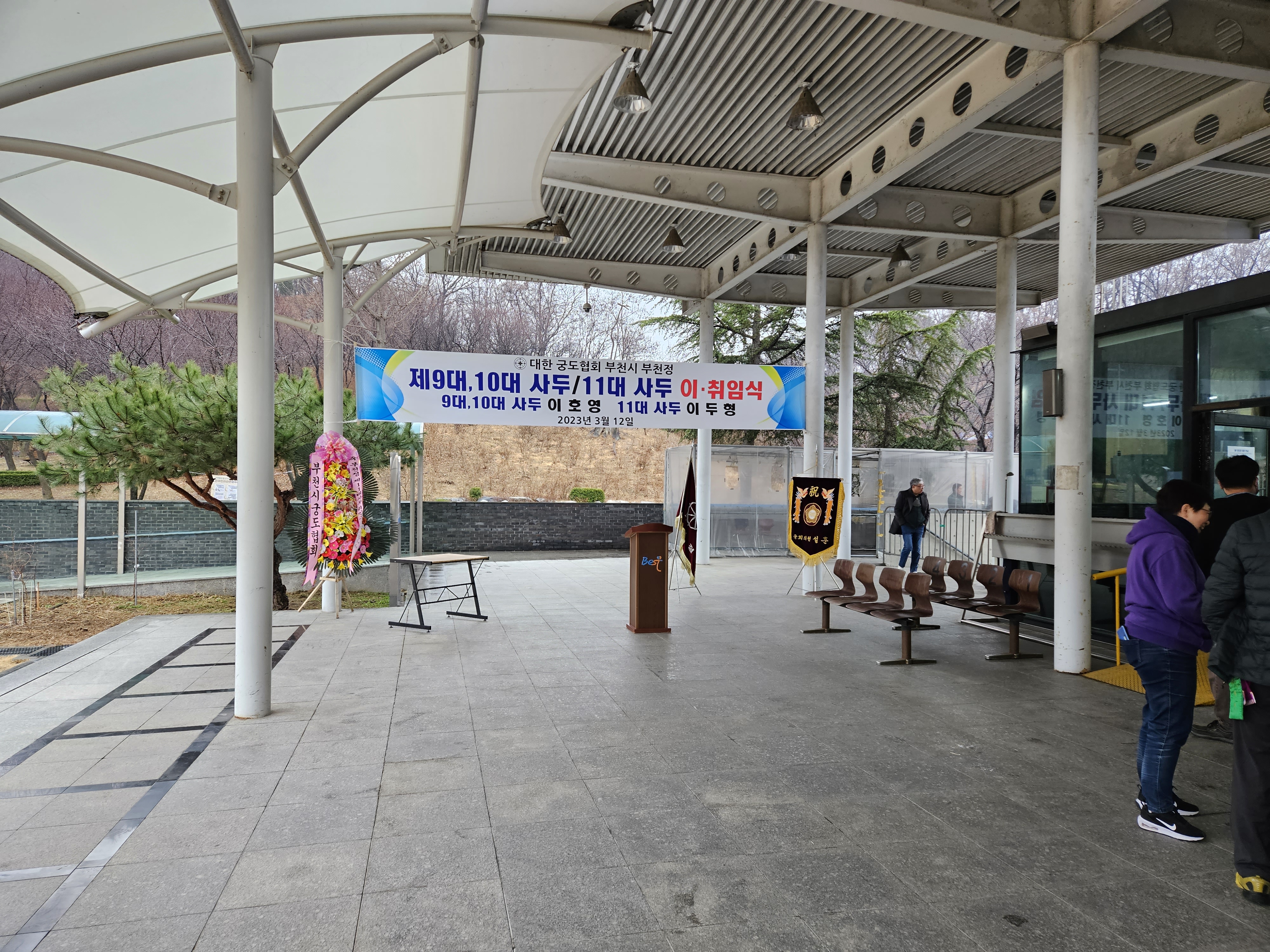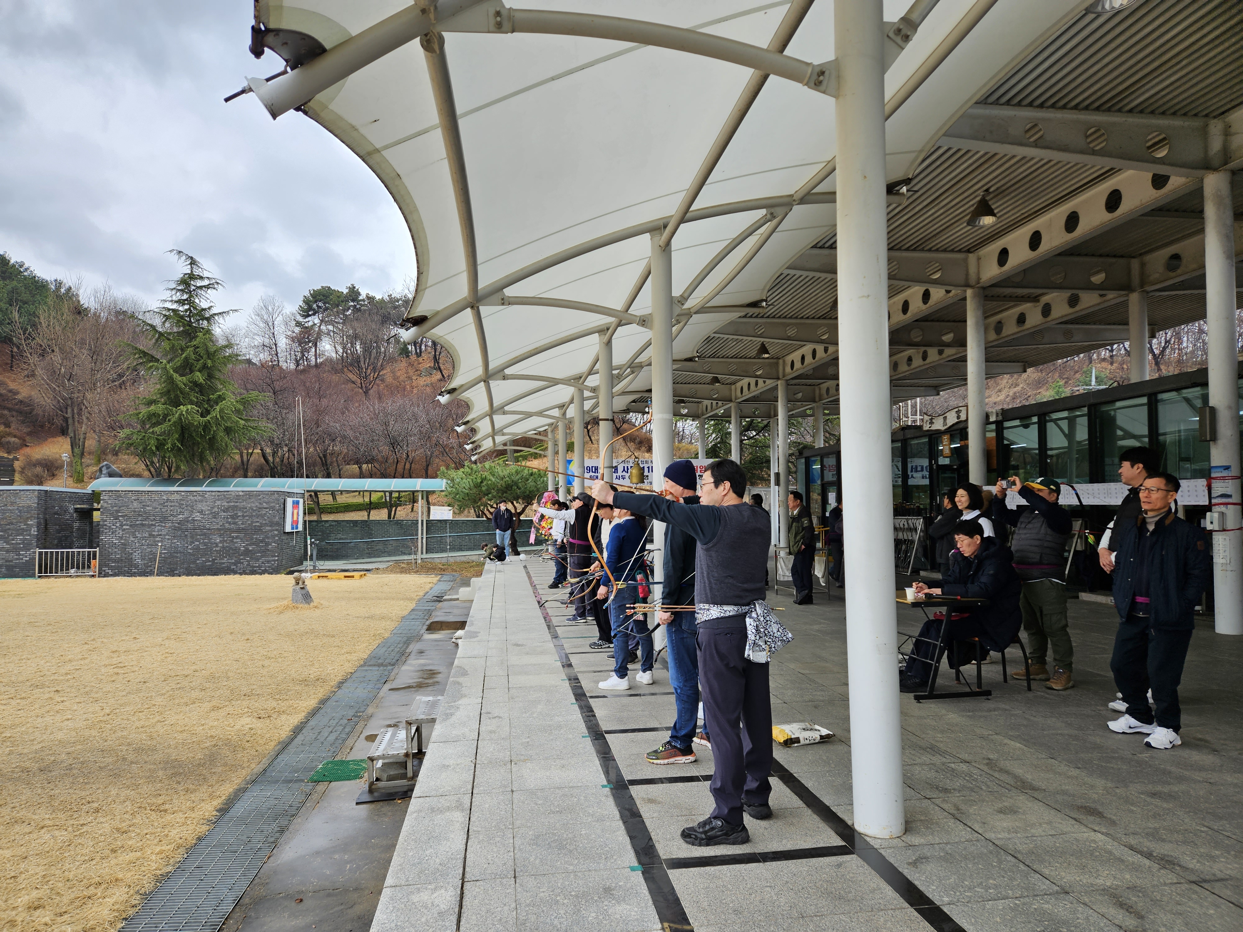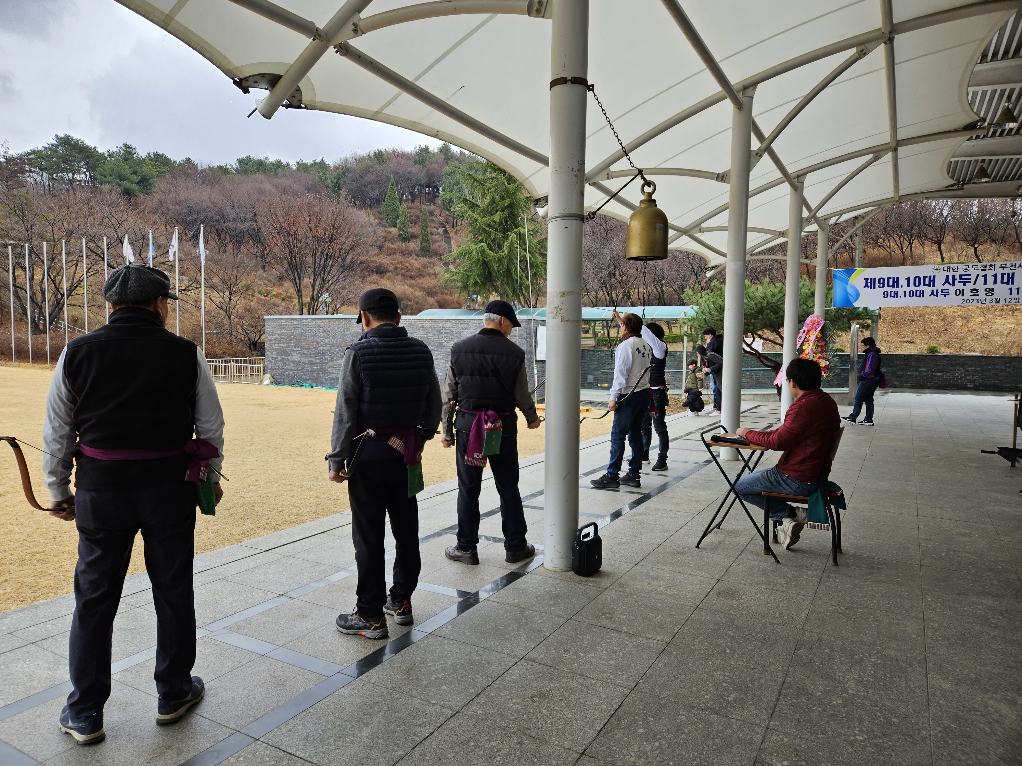 다니는 활터에서 사두의 이.취임식이 있고 더불어 축하하는 친선경기도 갖는 날이다.