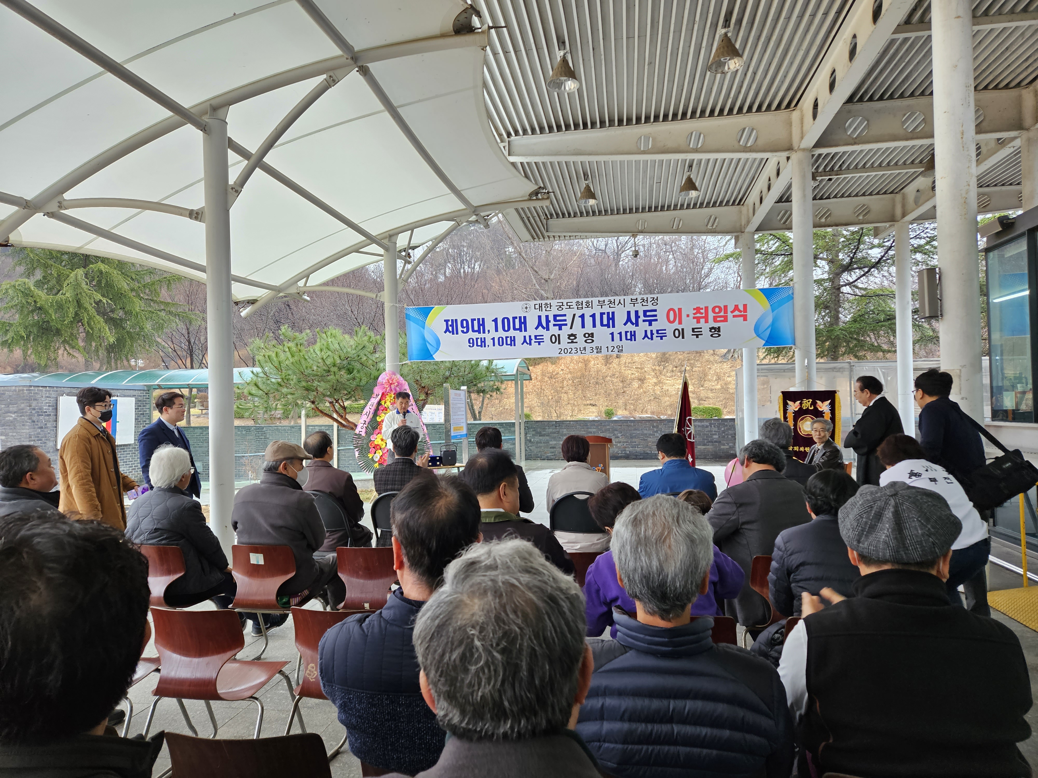 추적추적 비가내리고 준비가 늦어지니 예정된 시각을 지나 이.취임행사를 시작한다.