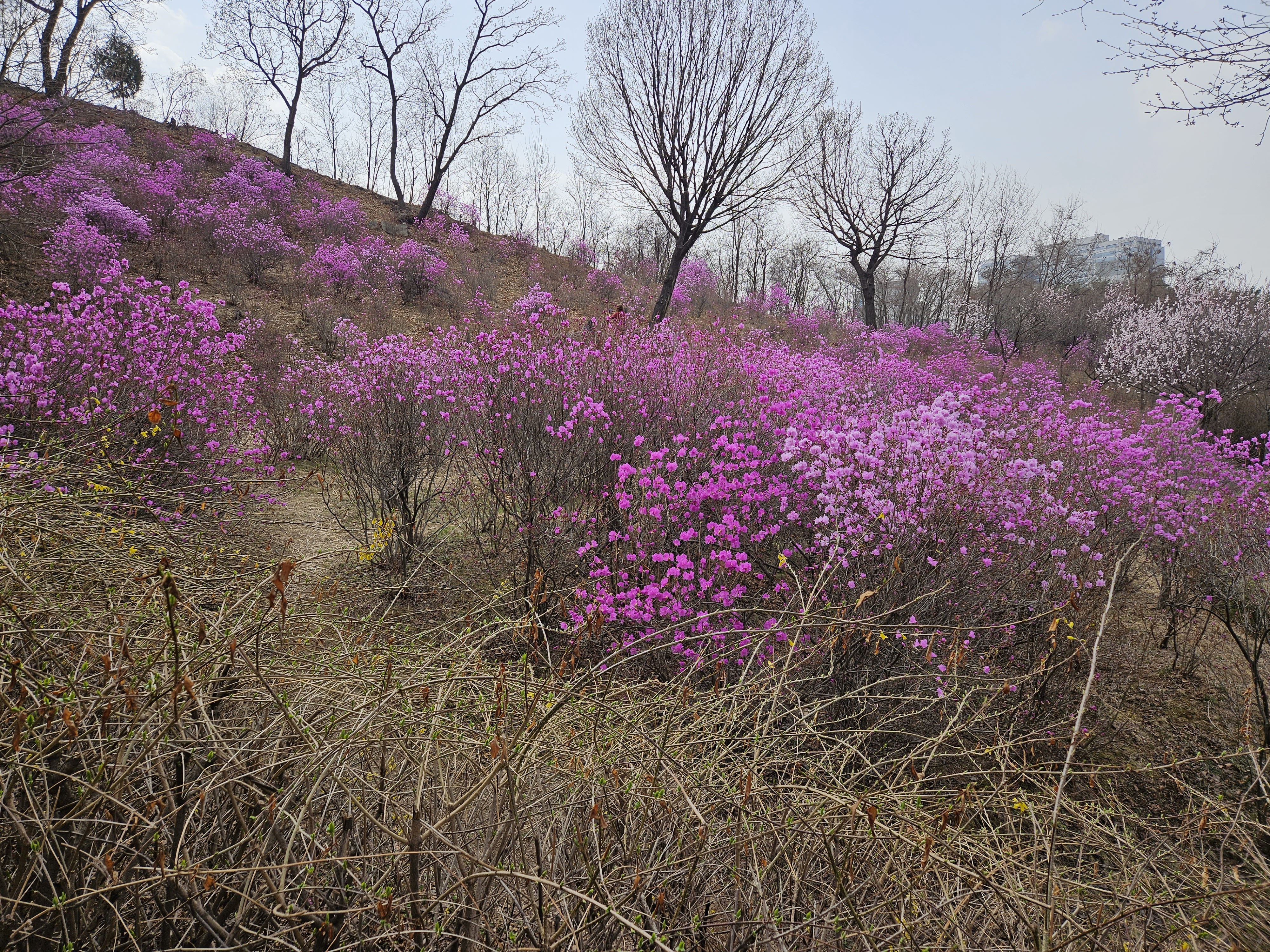 활터가 진달래군락지에 위치하고있어 진달래가 피기시작하여 반정도는 만개하였으니