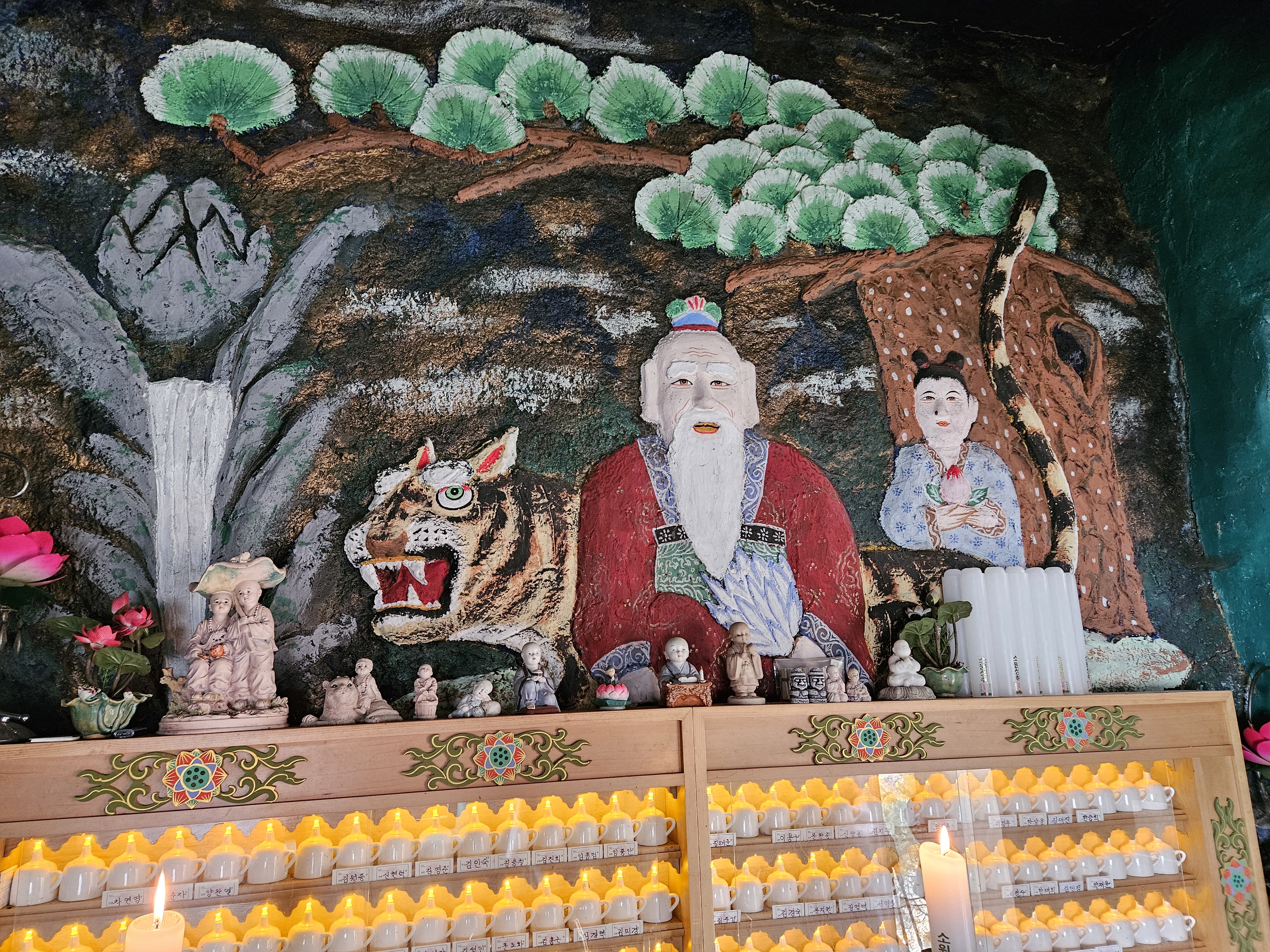 이곳의 산신각은 천연바위를 암각화하여 산신의 모습을 조각하여 절집을 만들었다.