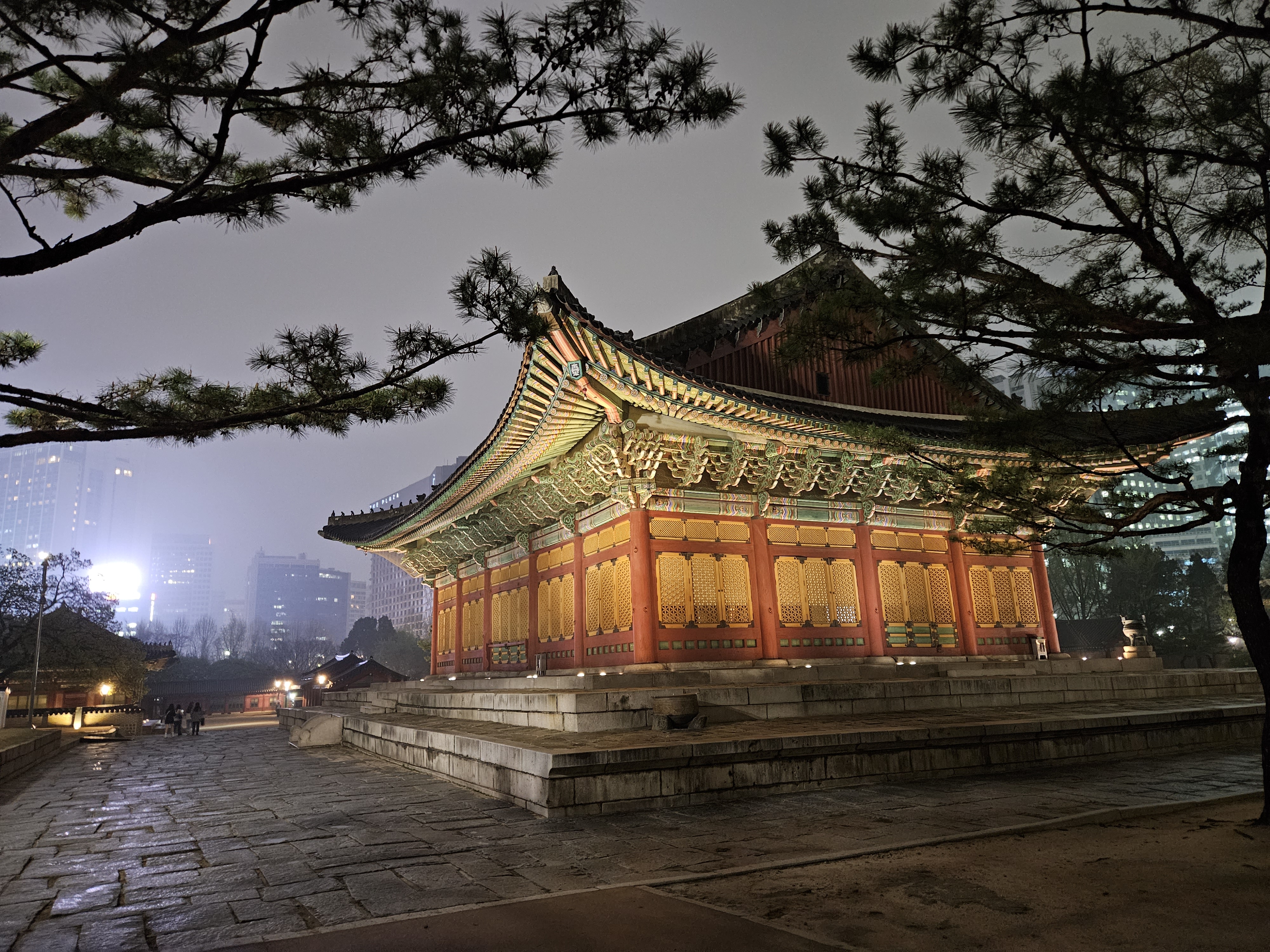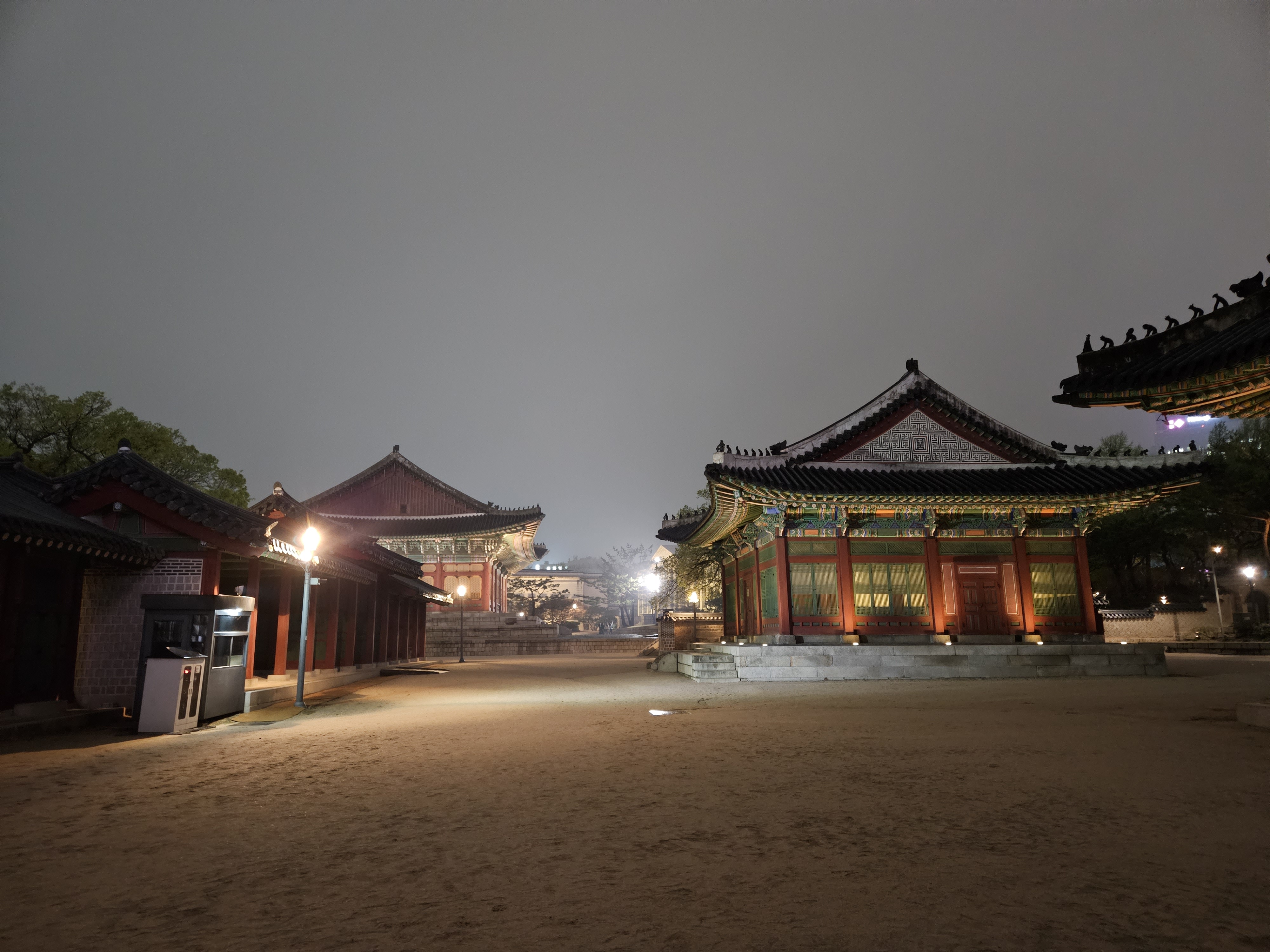 야간의 비내리는 고궁을 거닐고는 한쪽의 벤치에 앉아 차한잔을 마시는 여유를 즐기고는 귀가길에 오른다.