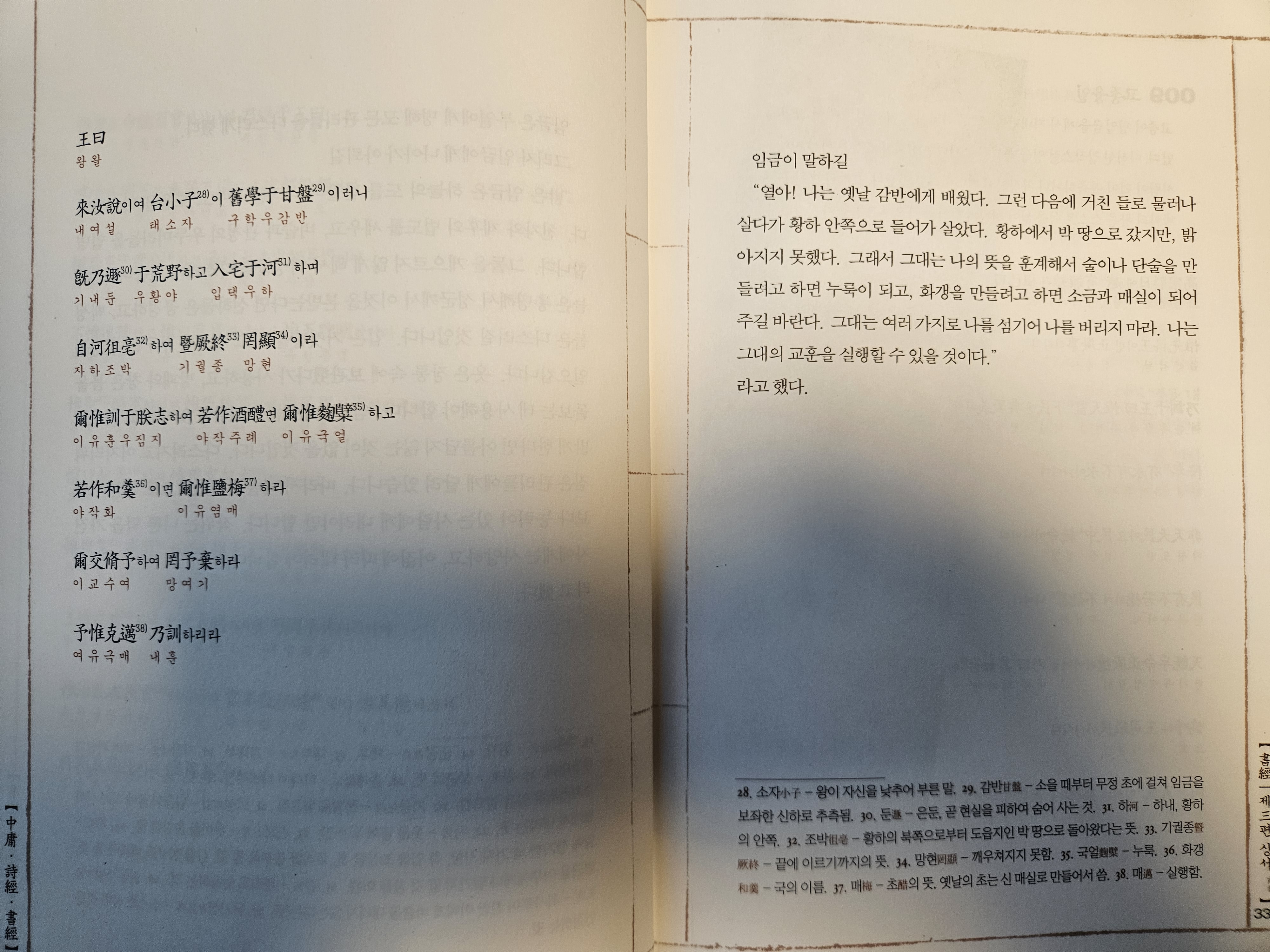 한권으로 된 중용,시경,서경을 지난 겨울에 구입하여 베껴 쓰기를 시작하였는데