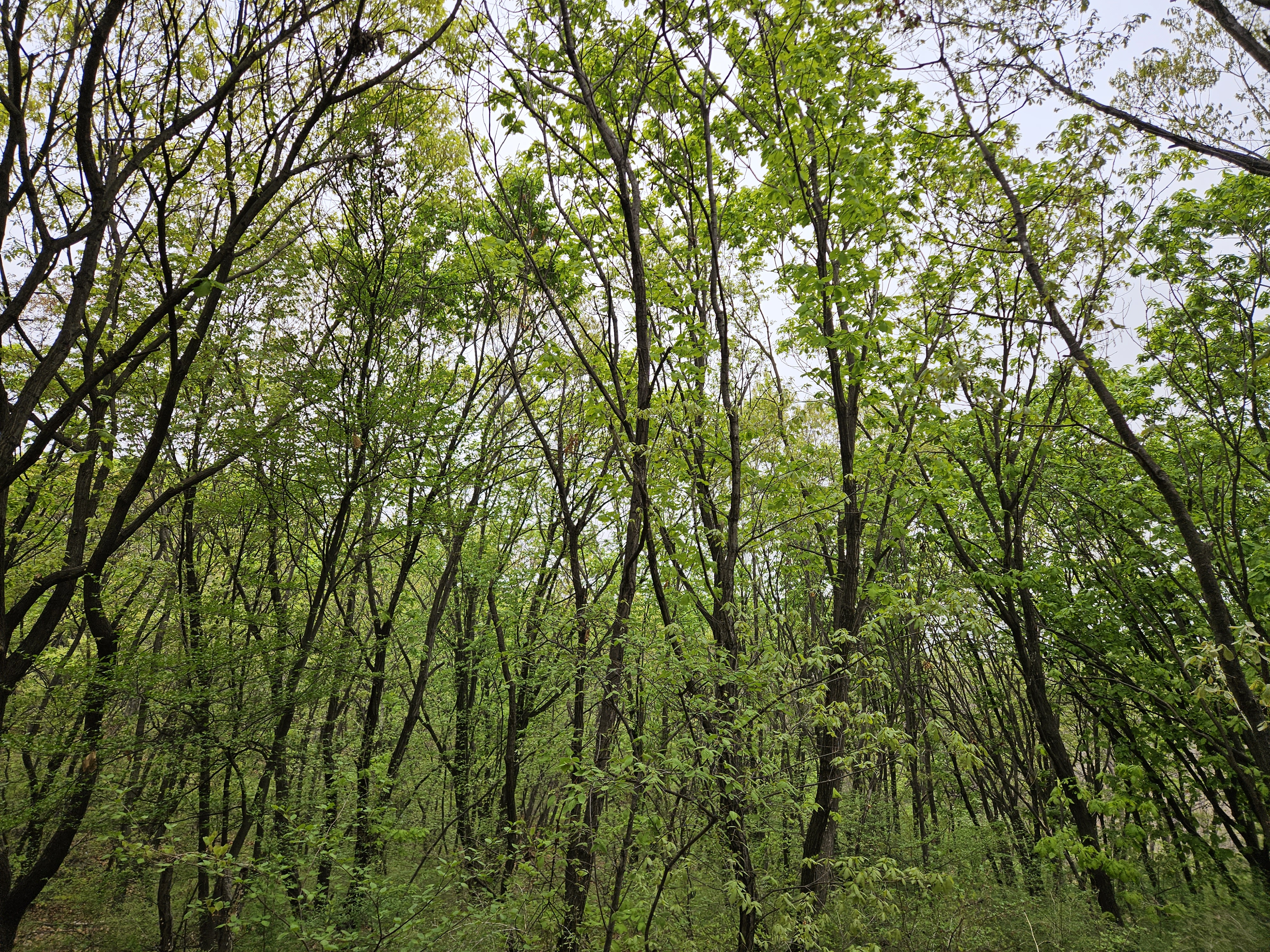 어제 비가 내린후 대기가 깨끗하여야 함에도 또다시 황사가 하늘을 덮고있는데 눈앞의 숲속은 깨끗하고 맑다.
