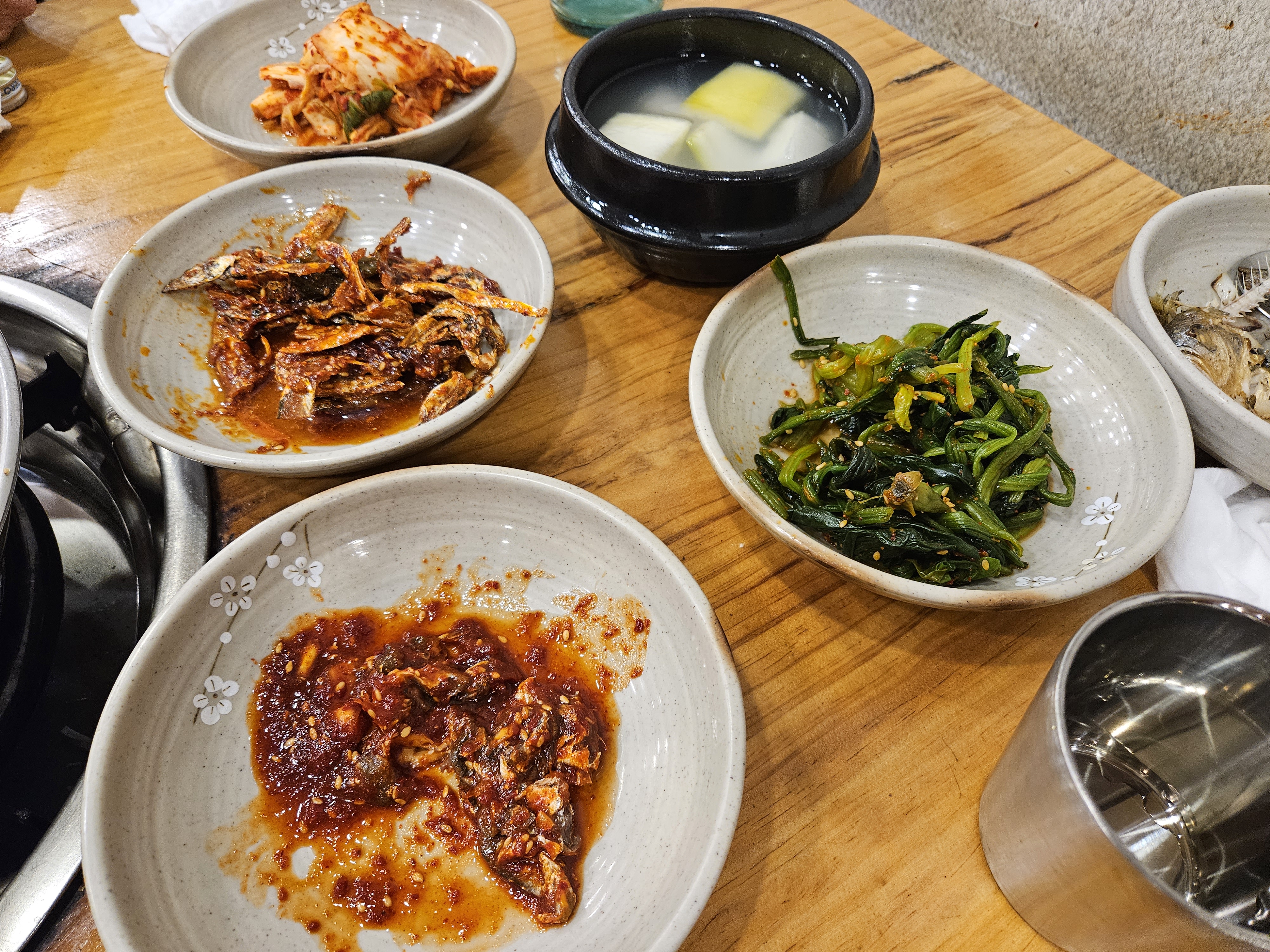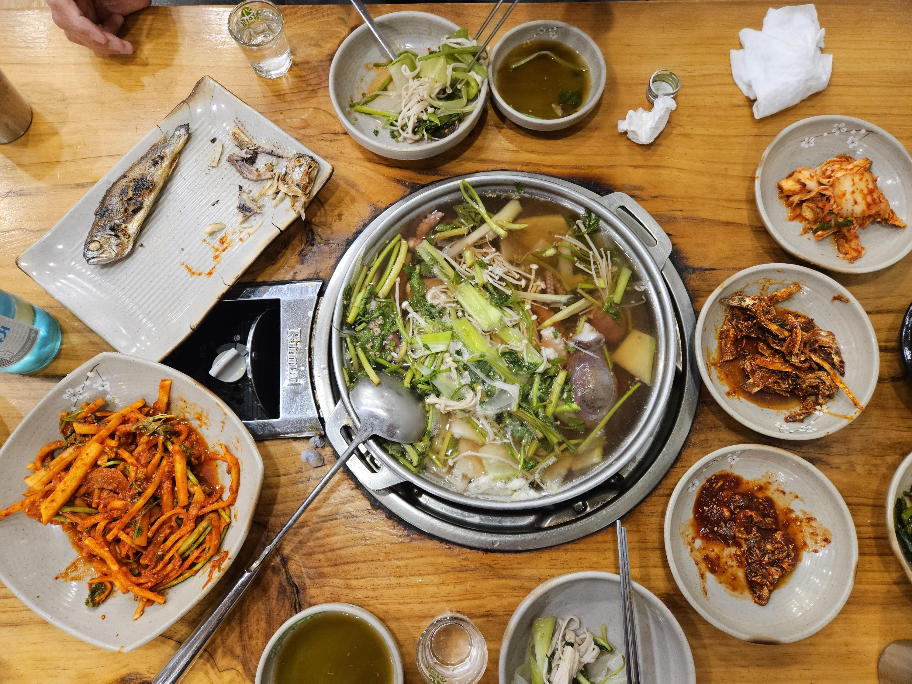 푸짐한 안주에 술을 마시고는 죽까지 끓여주니 술마신 속에 채워넣었다.