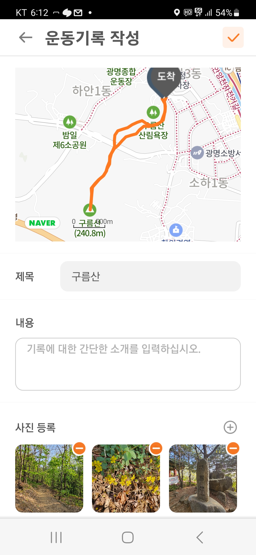 3.광명보건소-가리대고개-돌산전망대-구름산-원점회귀, 5.45km
