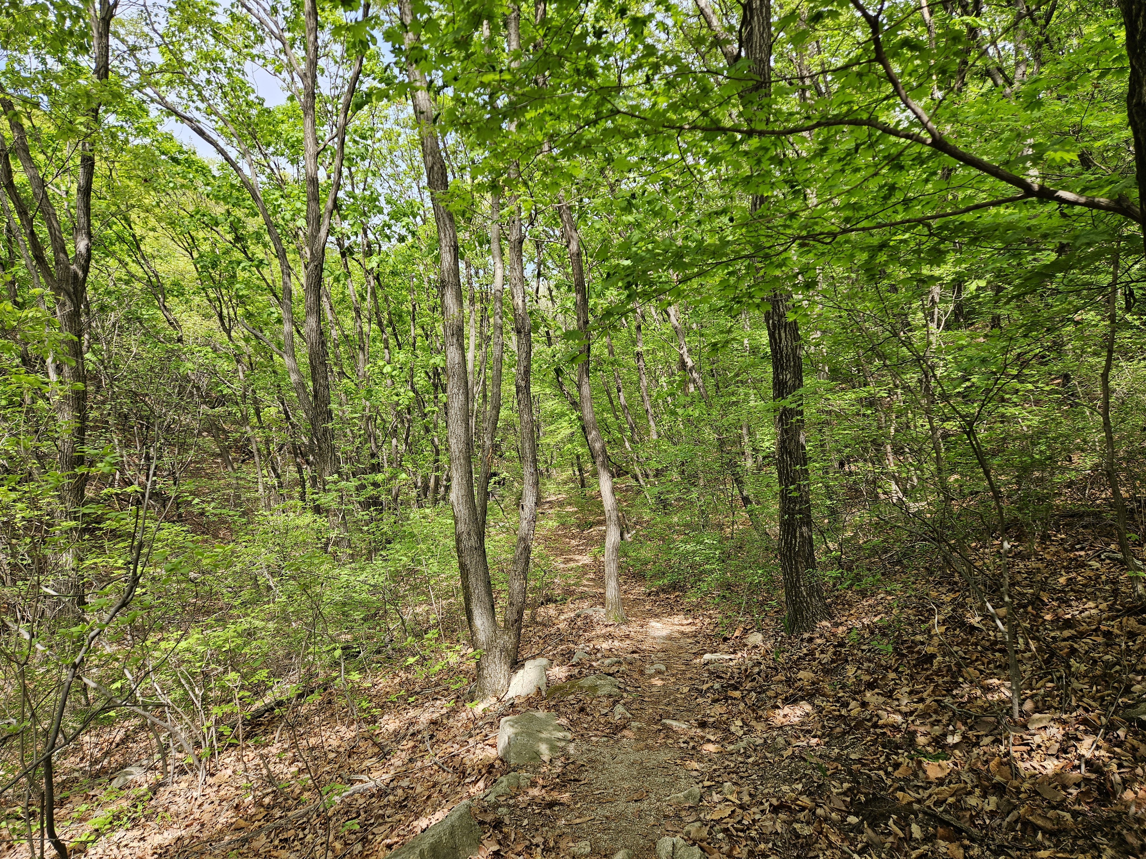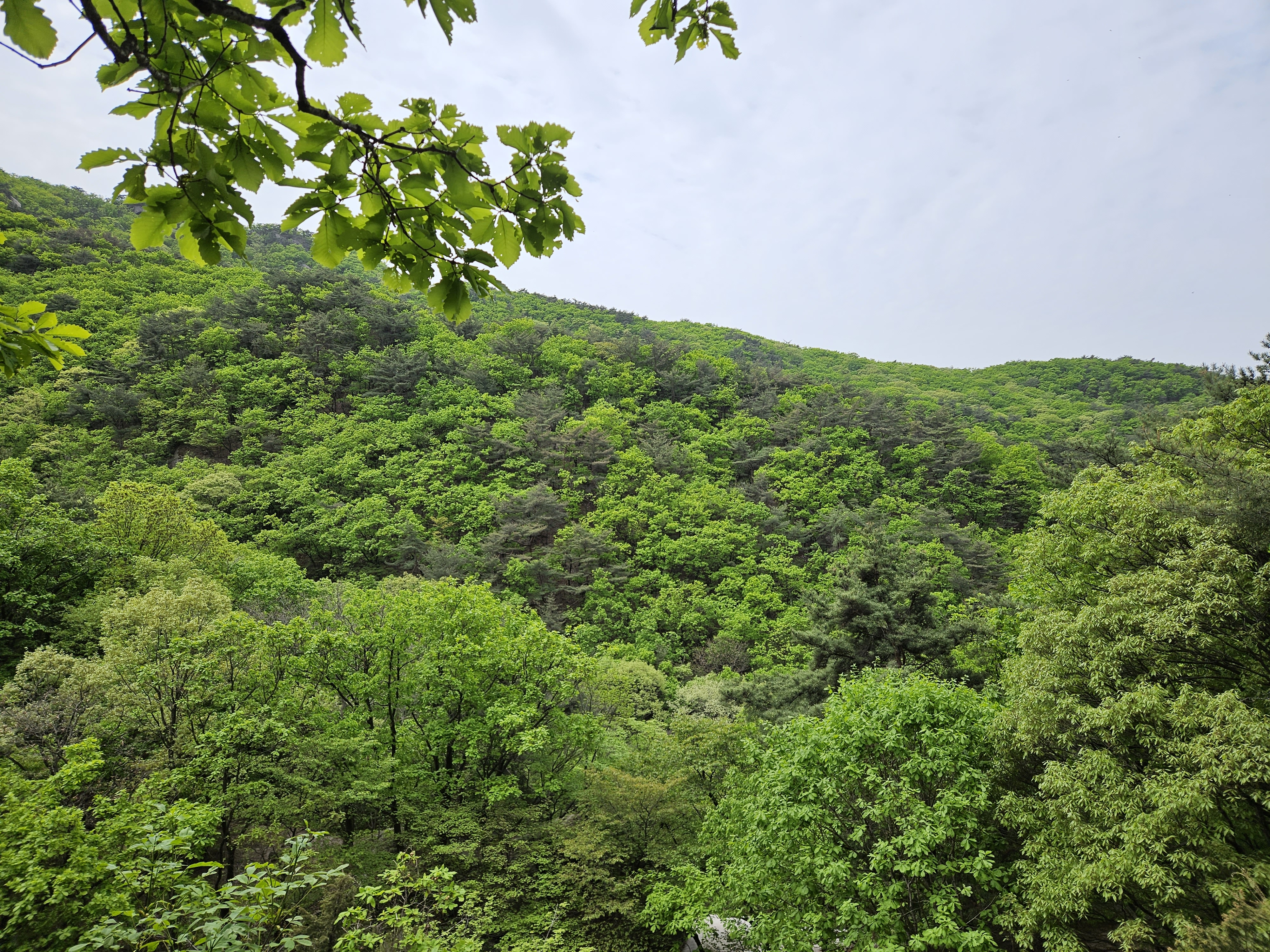 푸르른 신록을 바라보며 걷는 길이 좋기만한데, 그래도 오르는 길은 힘이 든다.
