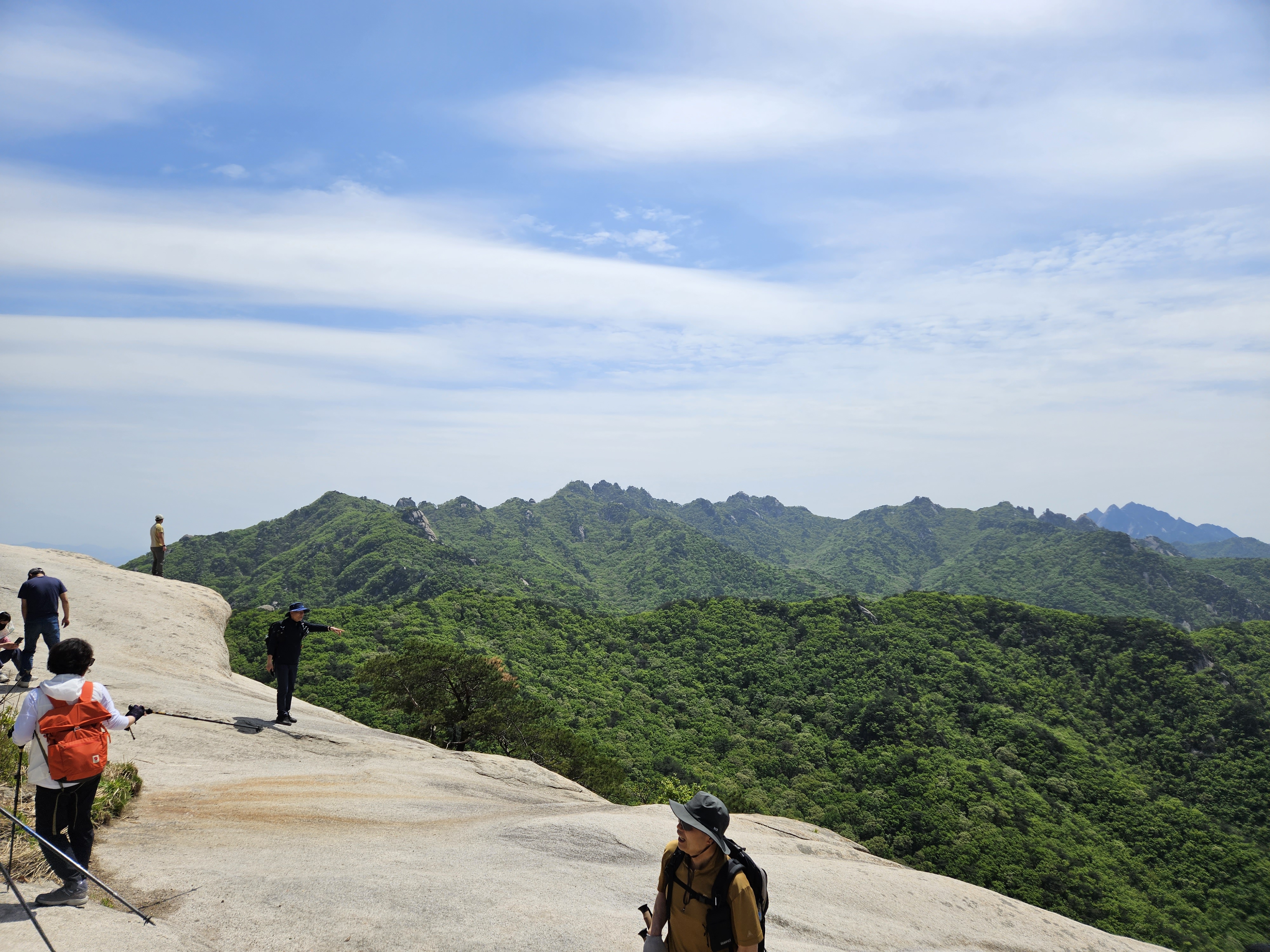 조금 더 진행하여 눈에 익은 정상부에 도달하니 많은 사람과 더불어 장쾌한 전경이 펼쳐진다.