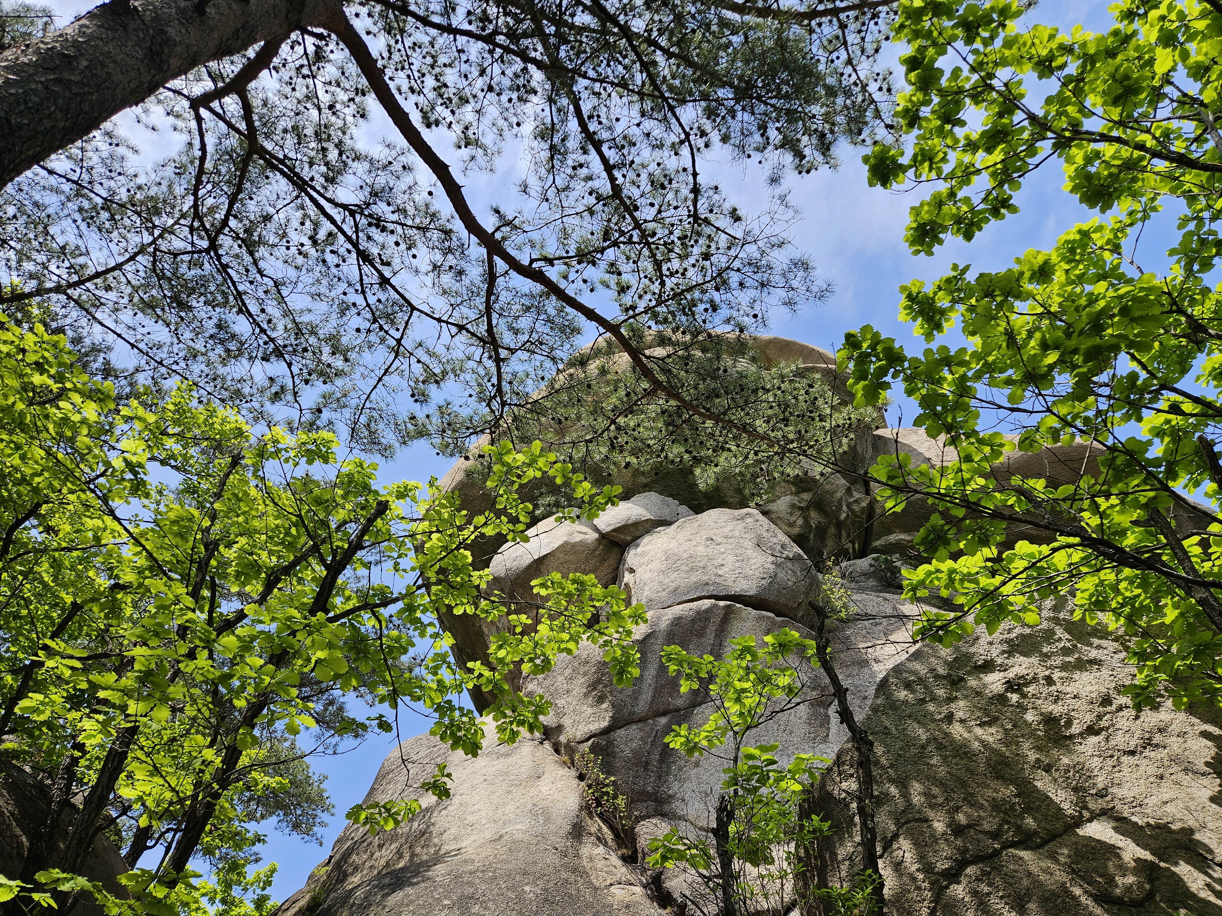 푸르른 신록을 바라보며 걷는 길이 좋기만한데, 그래도 오르는 길은 힘이 든다.
