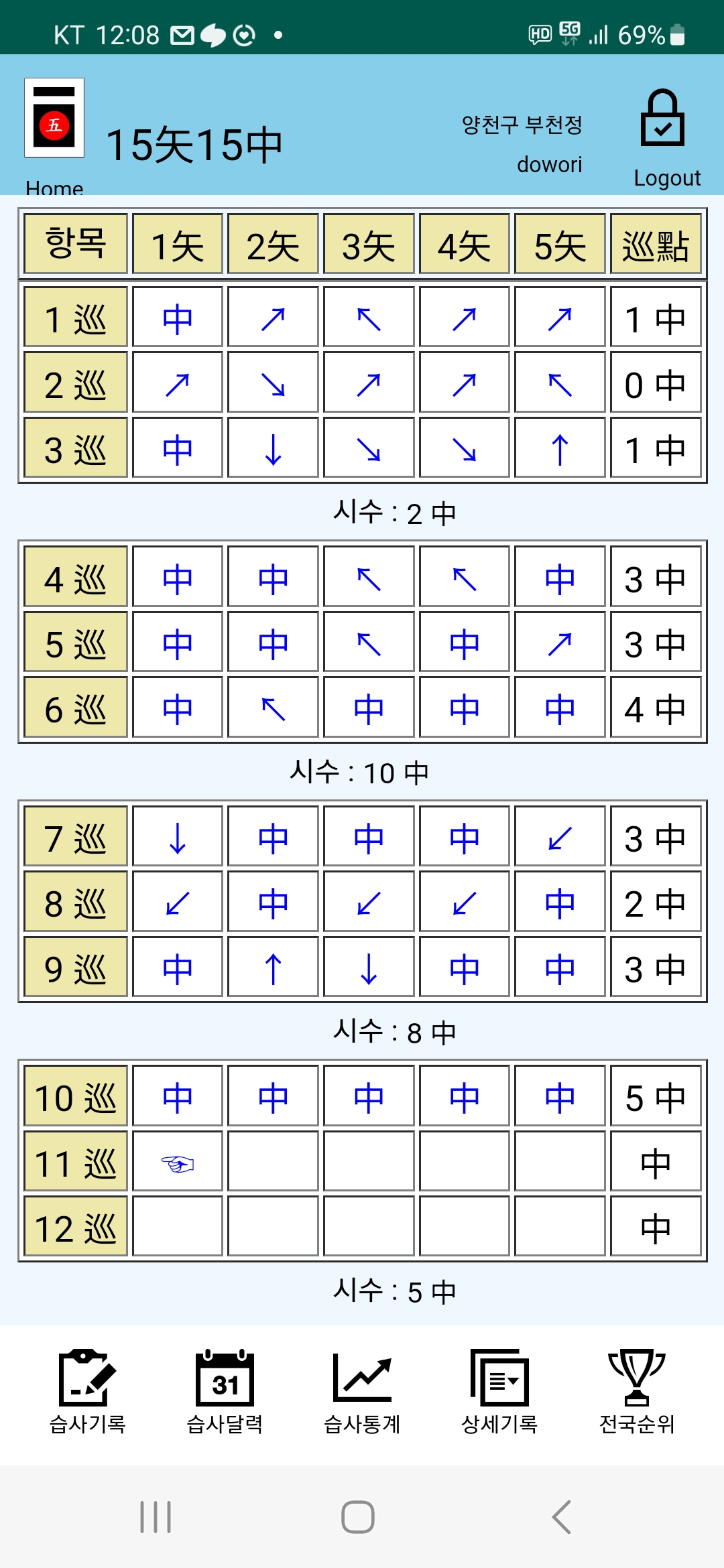 평일과는 다른 얼굴들이다. 평일오전은 6명의 고정멤버외에 한두명이 습사를 하는 것이 거의 정해져있고