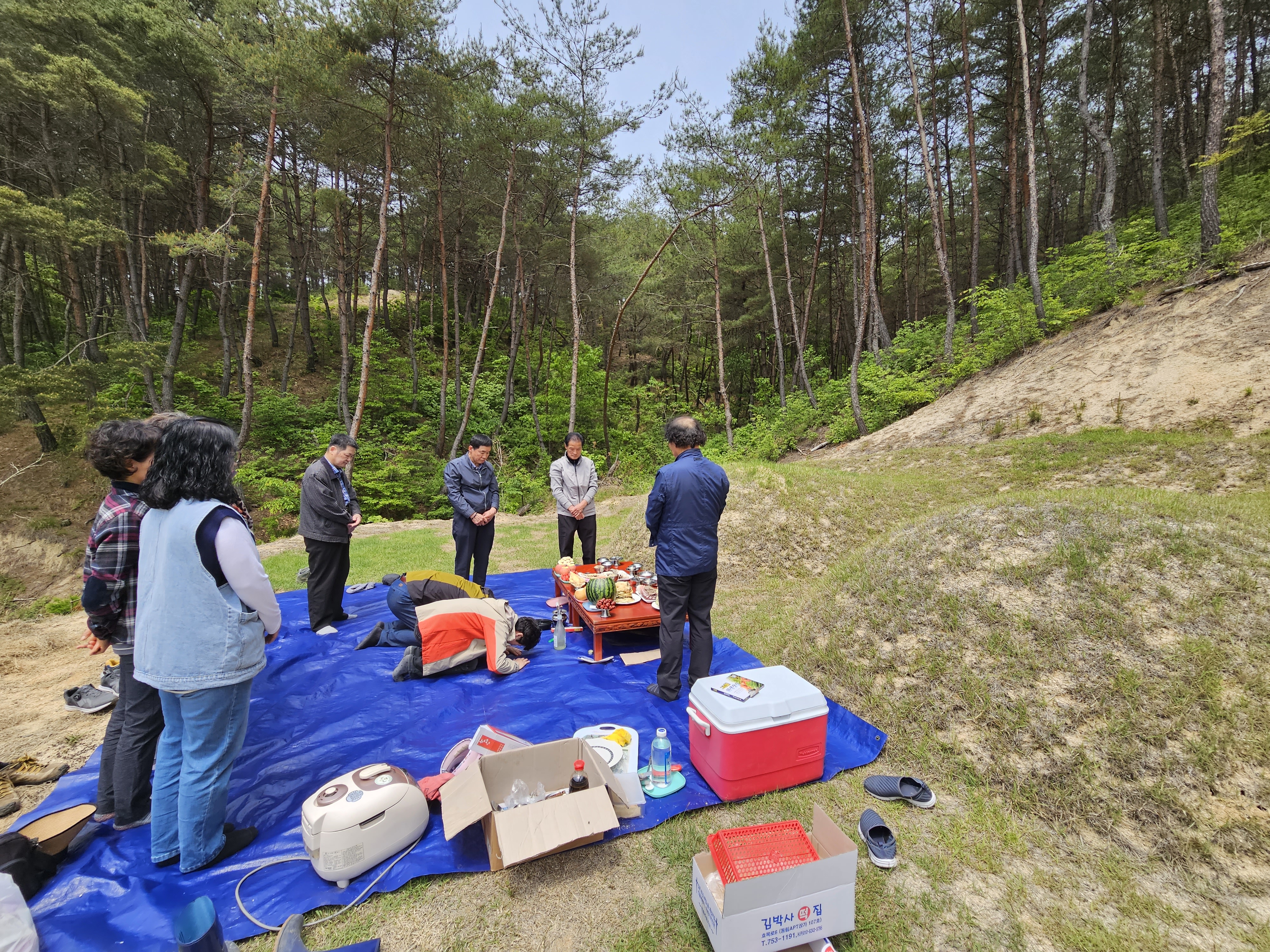제사를 모시고는 음복과 더불어 점심을 산소에서 먹기로해서 같이 모여 식사를 한다.