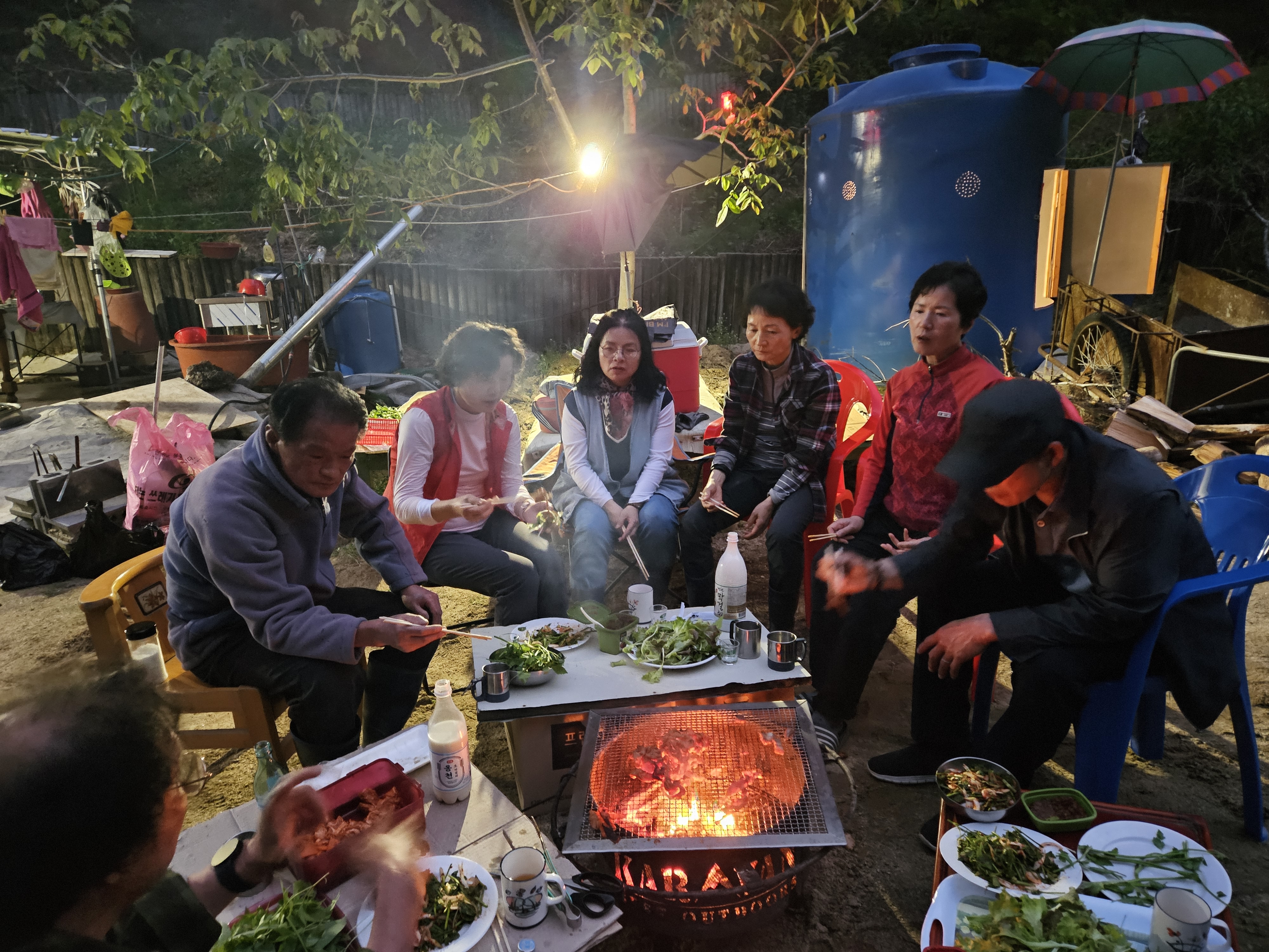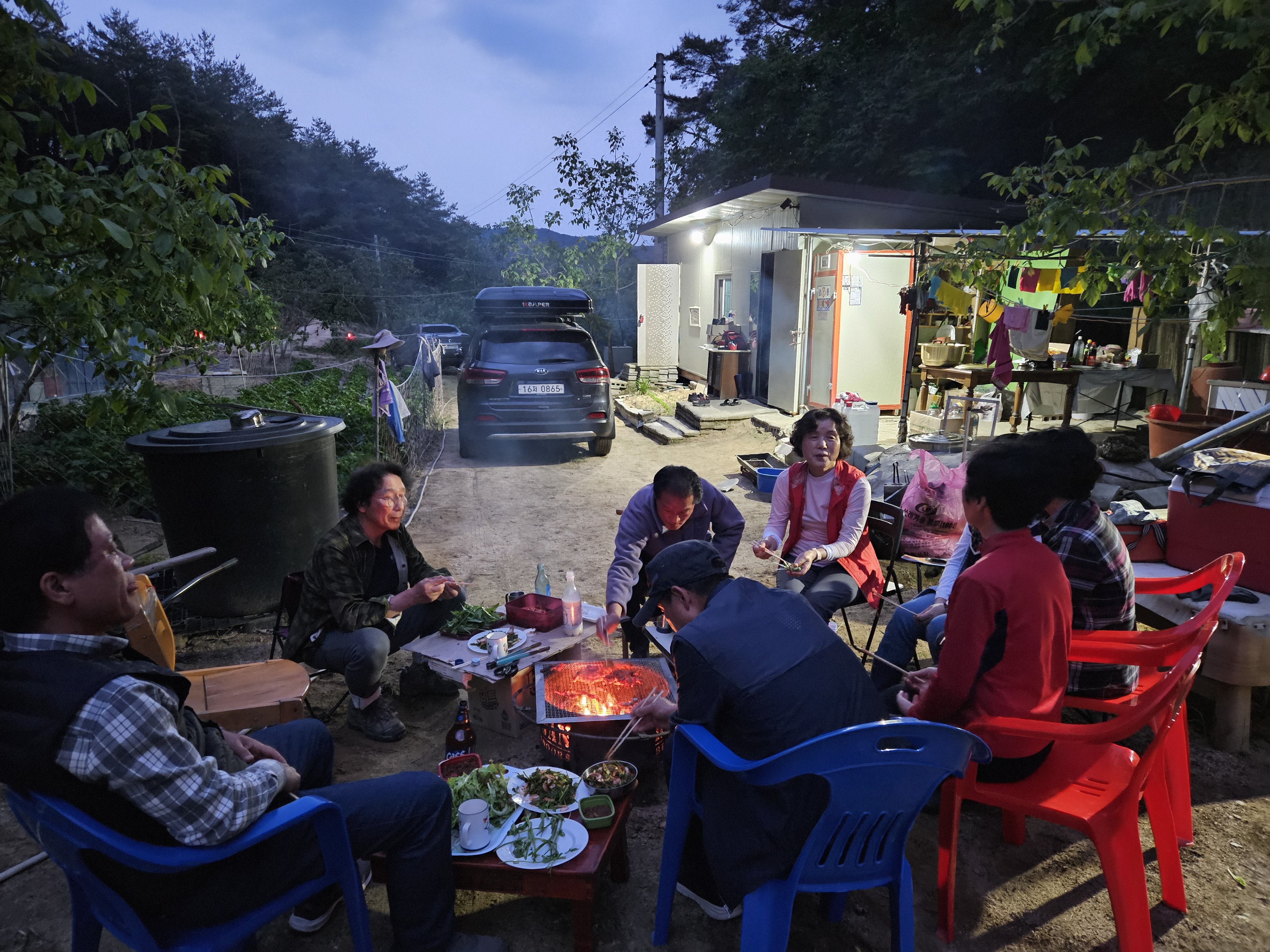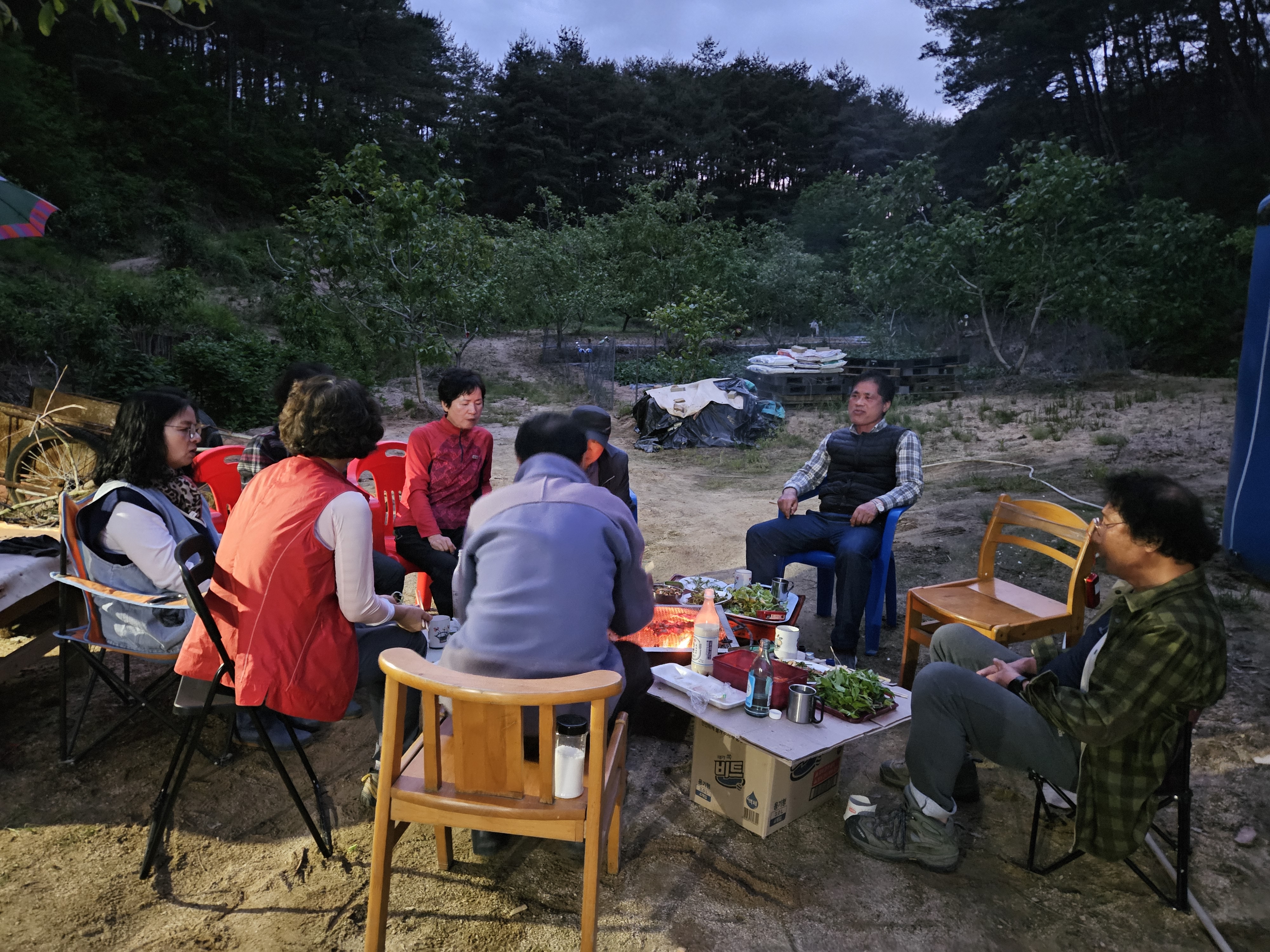 긴시간을 대화로 나누다가 농막과 루프탑텐트,하우스등 세팀으로 갈라 잠자리에 든다.