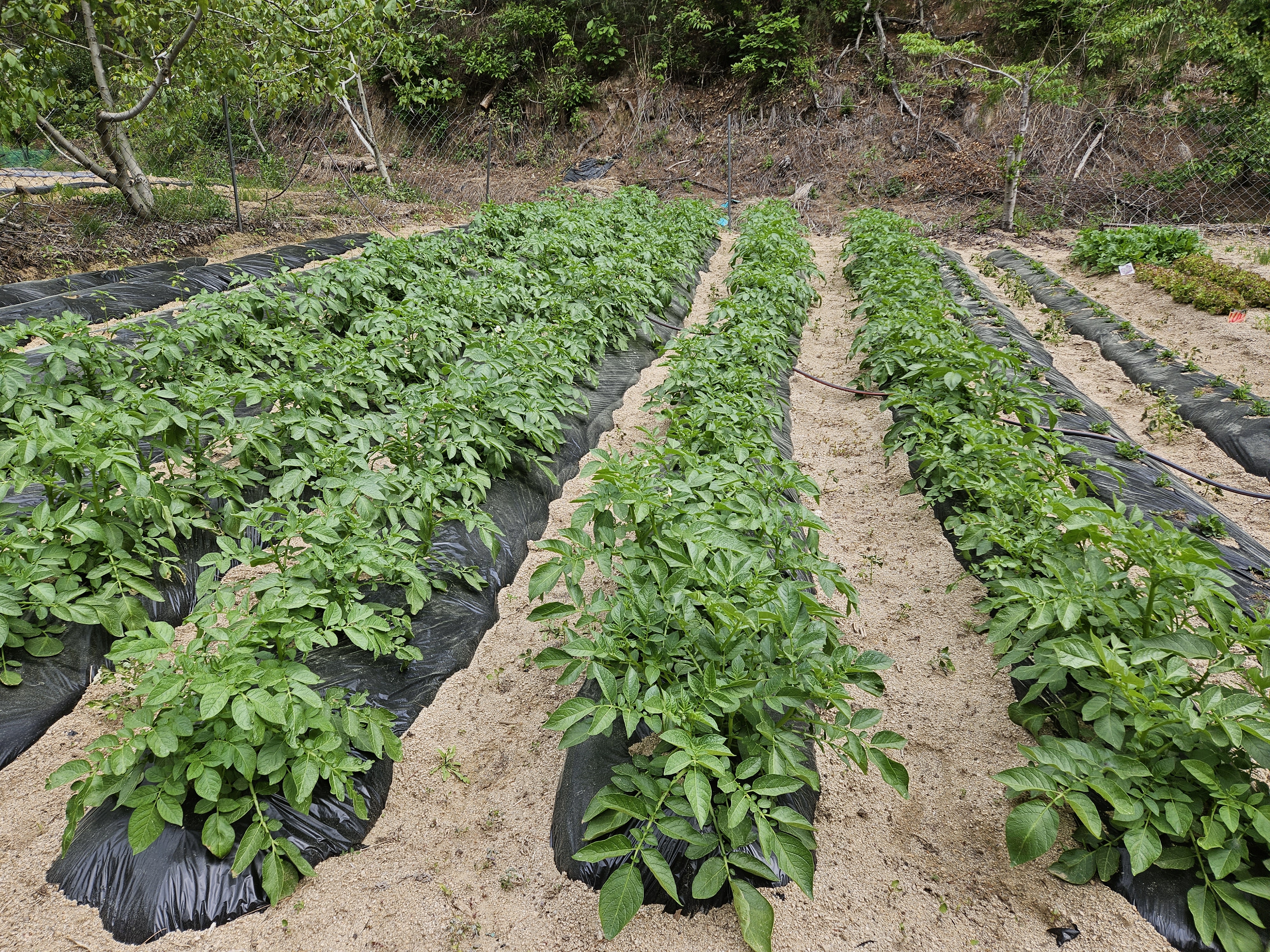 쓸리지 않도록 폐 전기장판을 씌우고 관부분에 구멍을 뚫고 나머지 부분은 흙으로 덮는다.