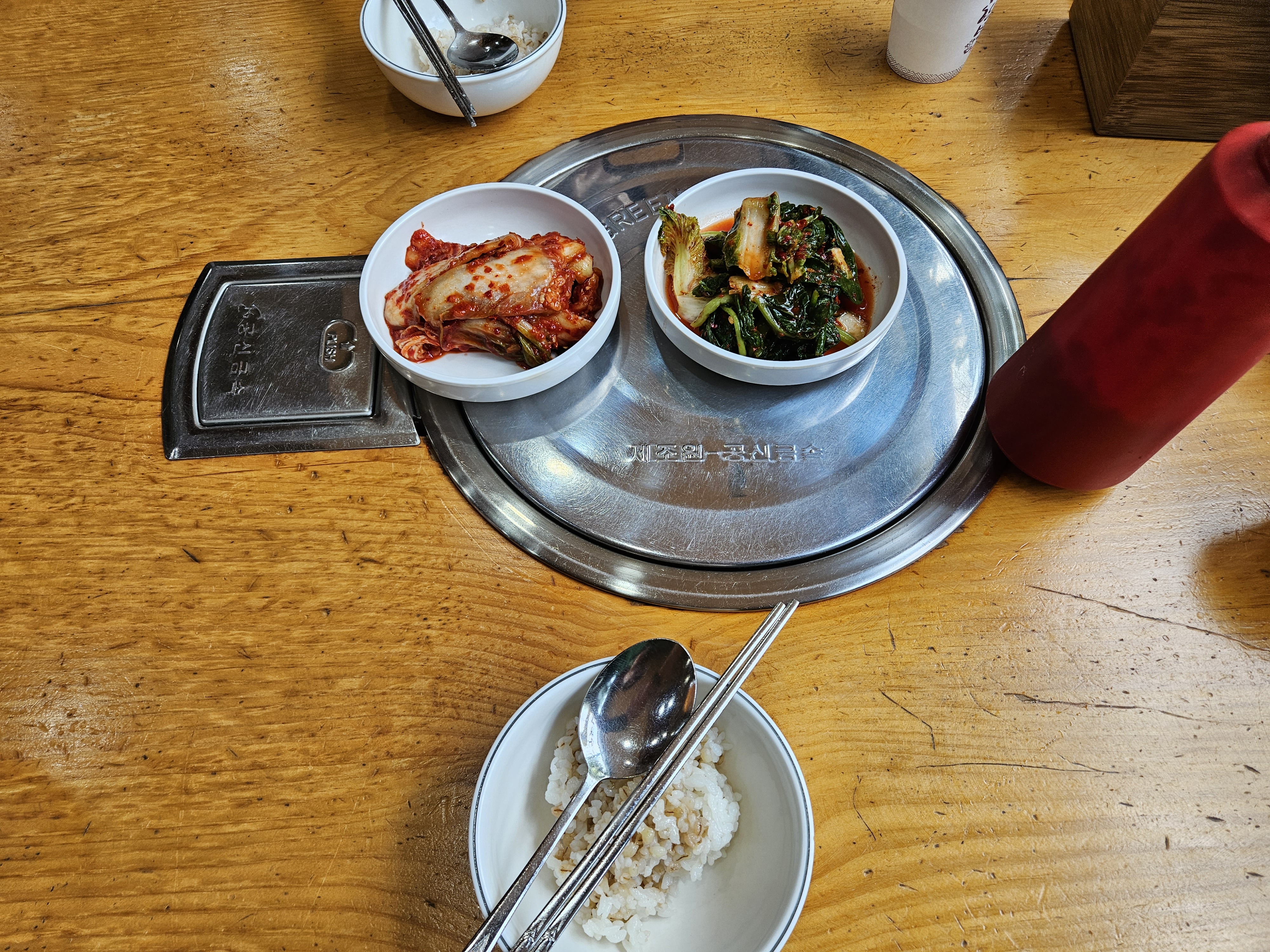 주문을 하면 단촐하게 김치2개와 보리밥이 나온다.