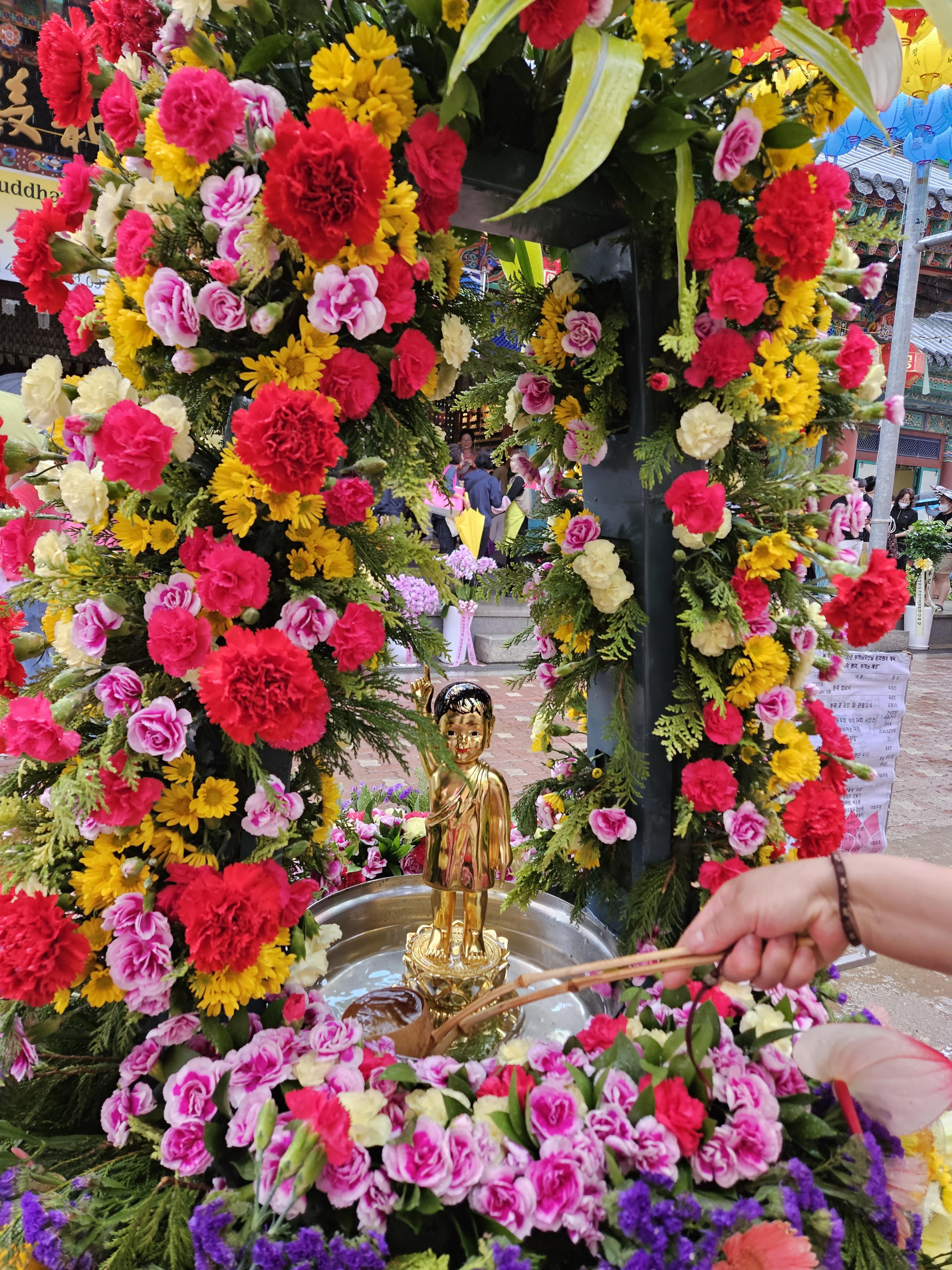이왕 줄을 섰으니 기다려 아기부처님의 몸에 세번의 감로수를 부어 씻기고는 합장한다.