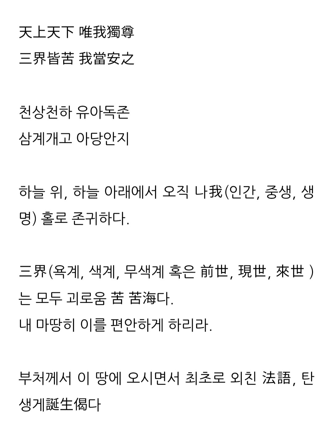 “하늘과 땅 위에 나 홀로 존귀하니 온 세상이 모두 고통에 휩싸여도