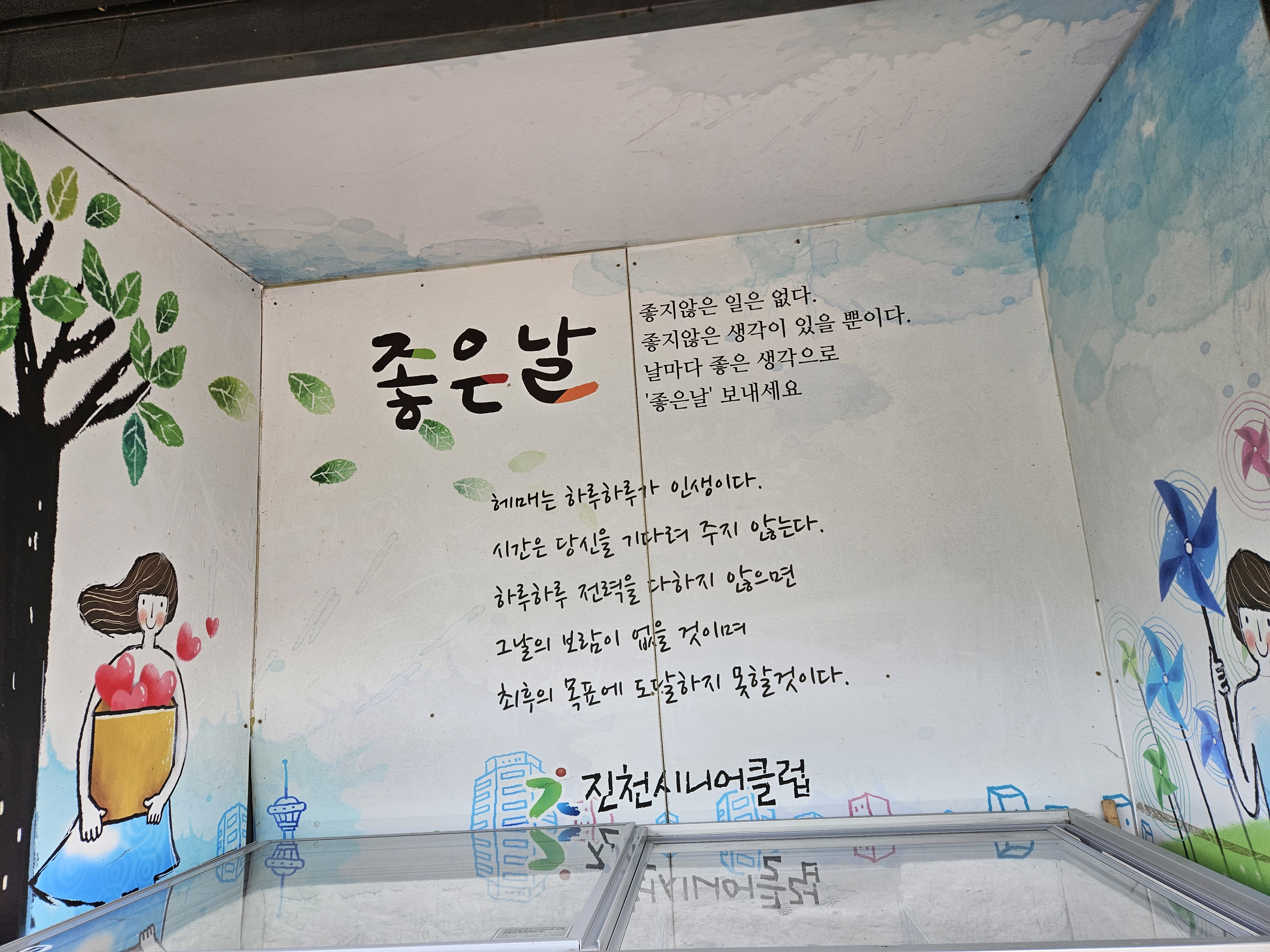 진천시니어클럽에서 운영하는 청춘매점의 나이드신 직원들의 단정한 옷차림과 모습이 인상적이다.