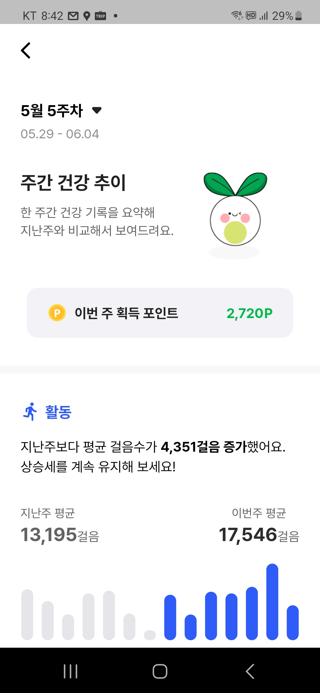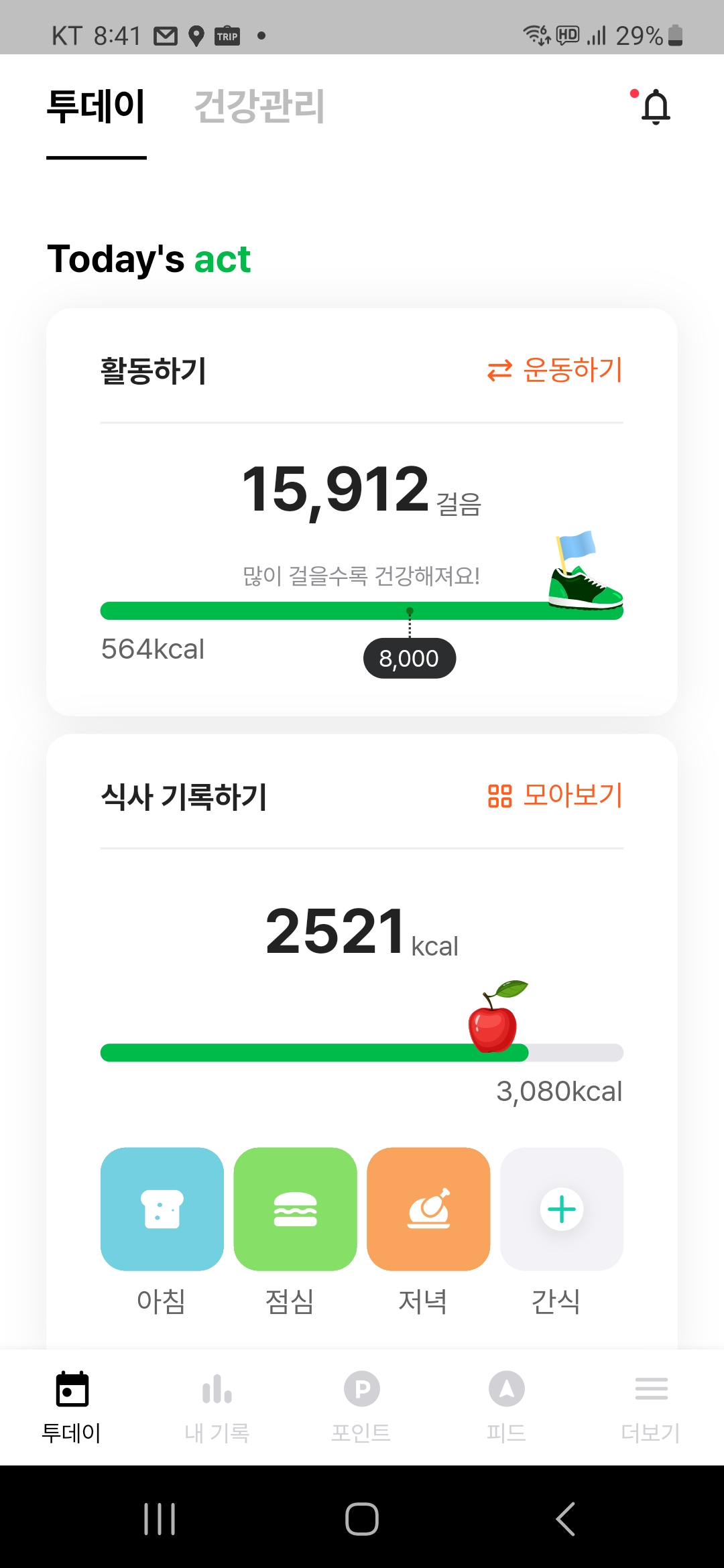 걷기야 평소하는데로 하지만 식단과 운동량까지 체크를 하고 그에따른 포인트까지 지급받으니 도랑치고 기재잡는 격이다.