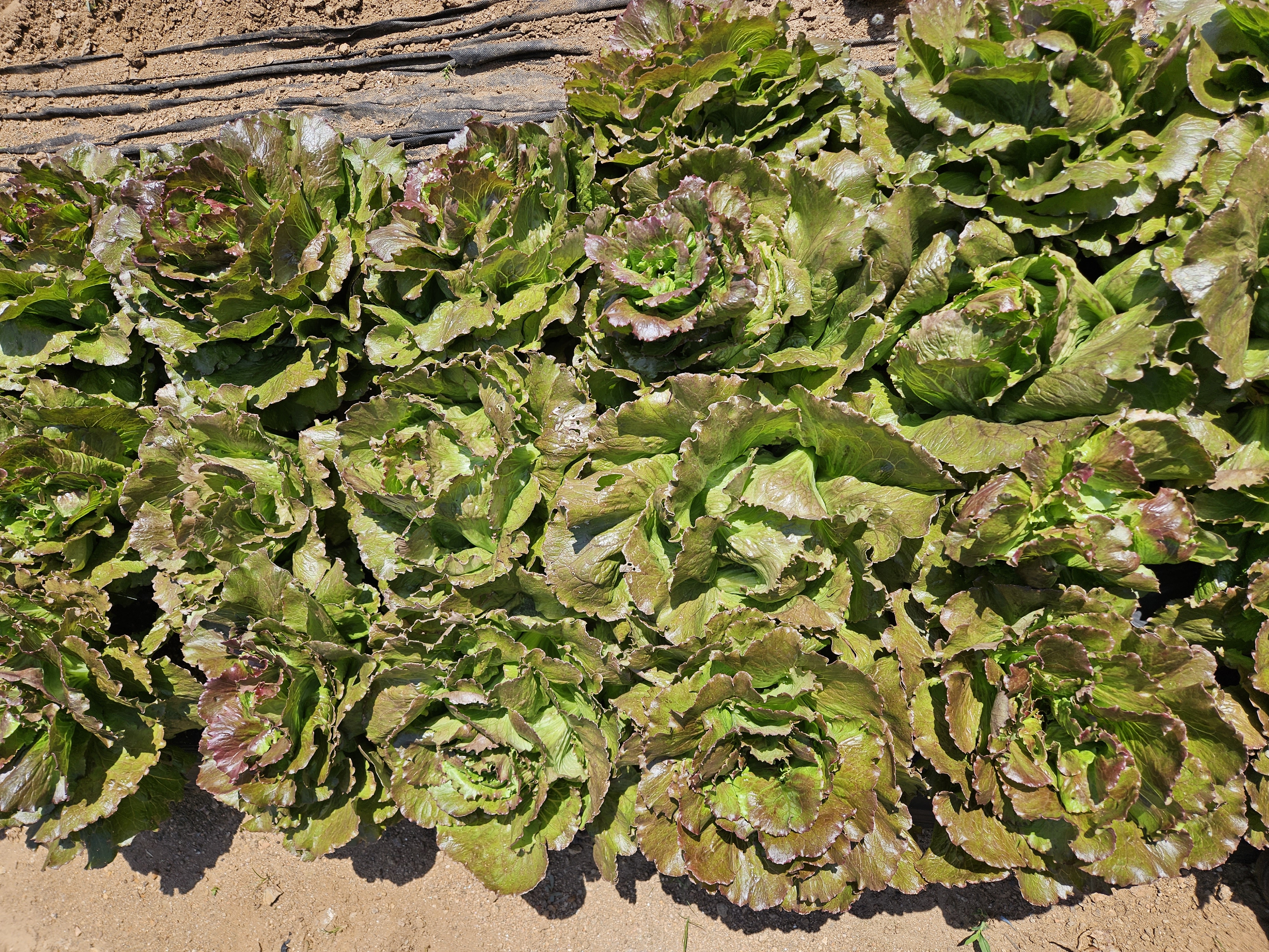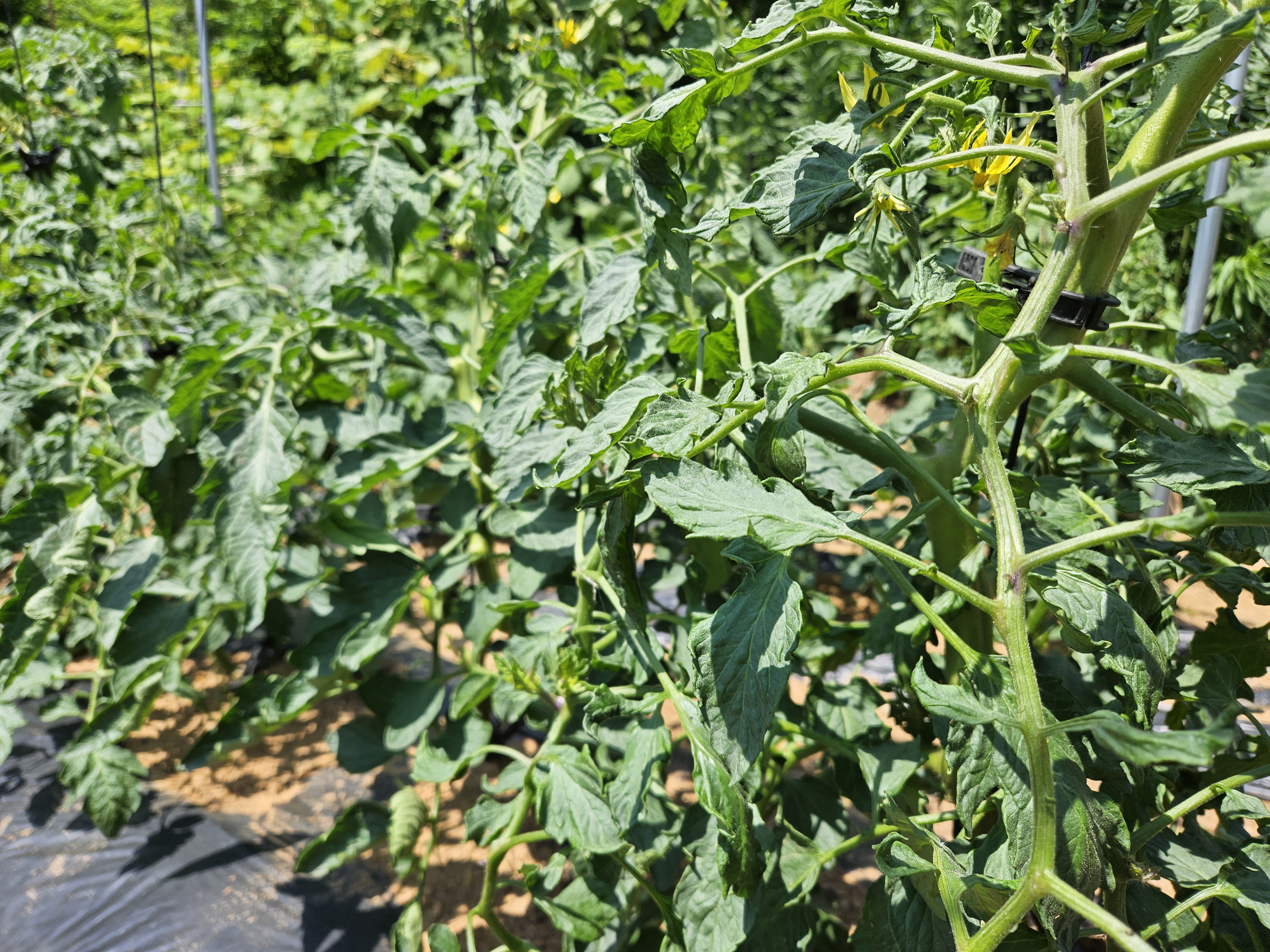 상추,토마토,가지,호박,오이,고추,고구마,양파,파등이 고랑에서 무럭무럭 자라고있고 한쪽에는