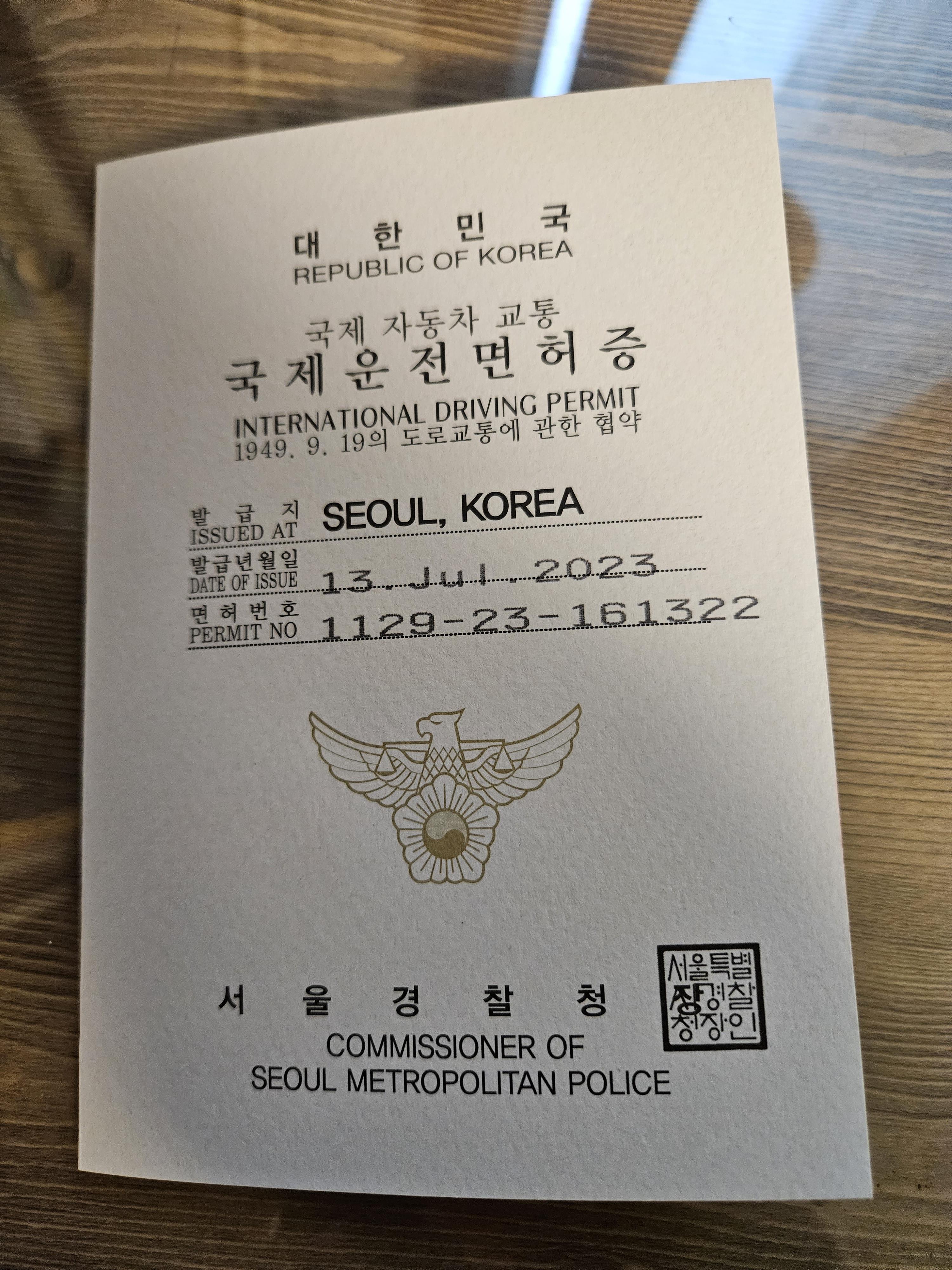 오후에 경찰서로 국제면허를 신청하여 발급받는다.