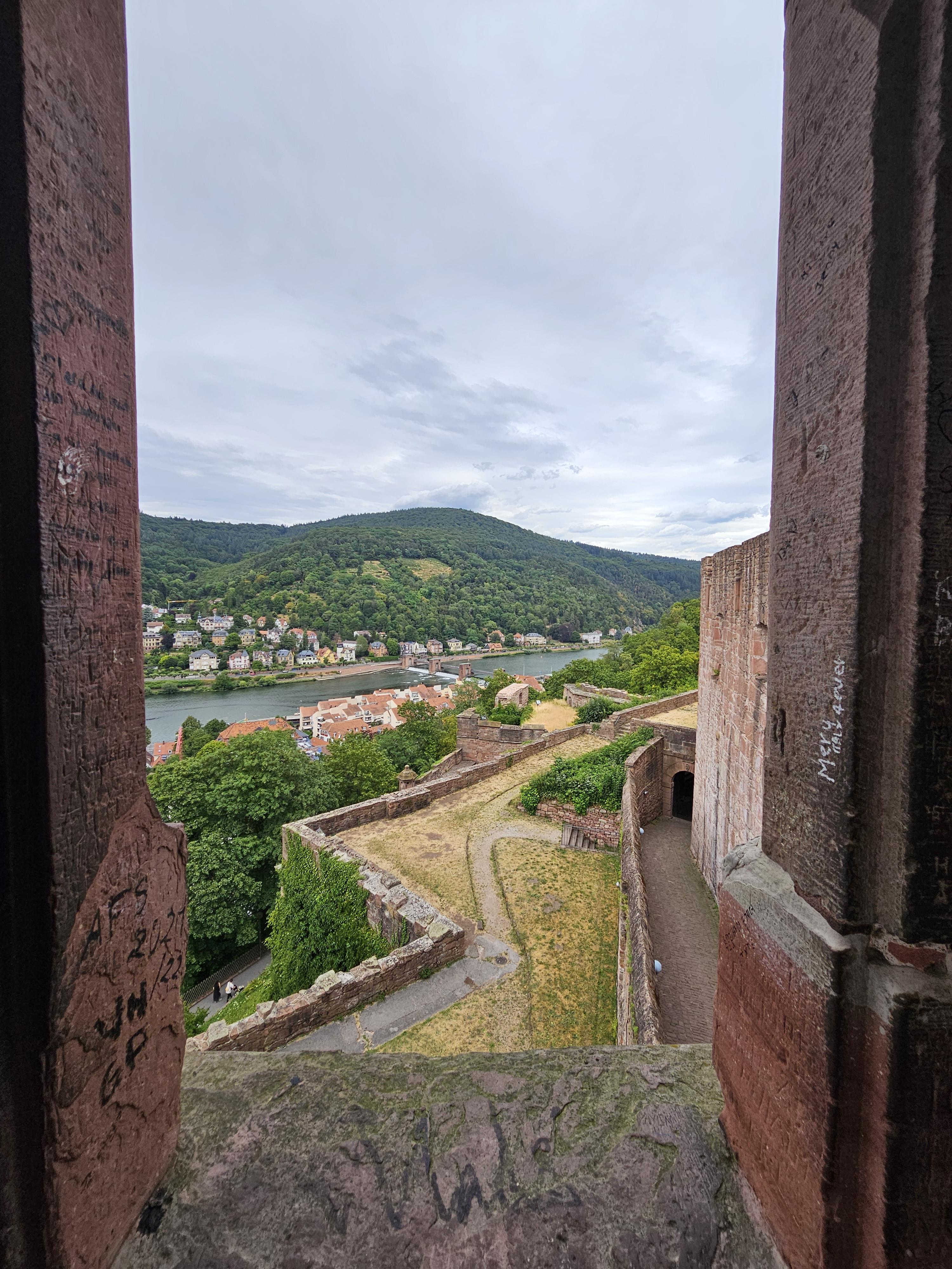 맞은편의 철학자의 길도 보이고 하이델베르크의 아담하고도 예쁜 집들이 네카어강과 잘 어울려 보기에도 좋다.