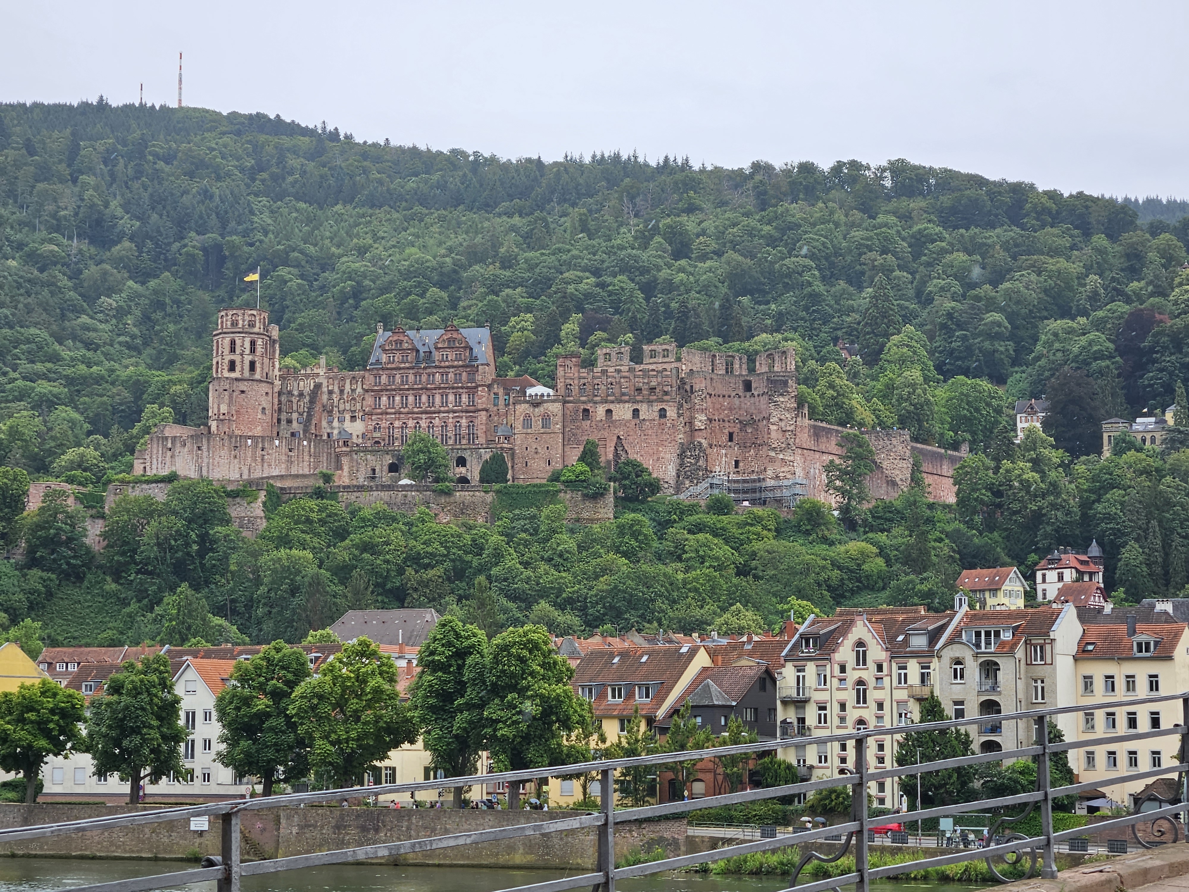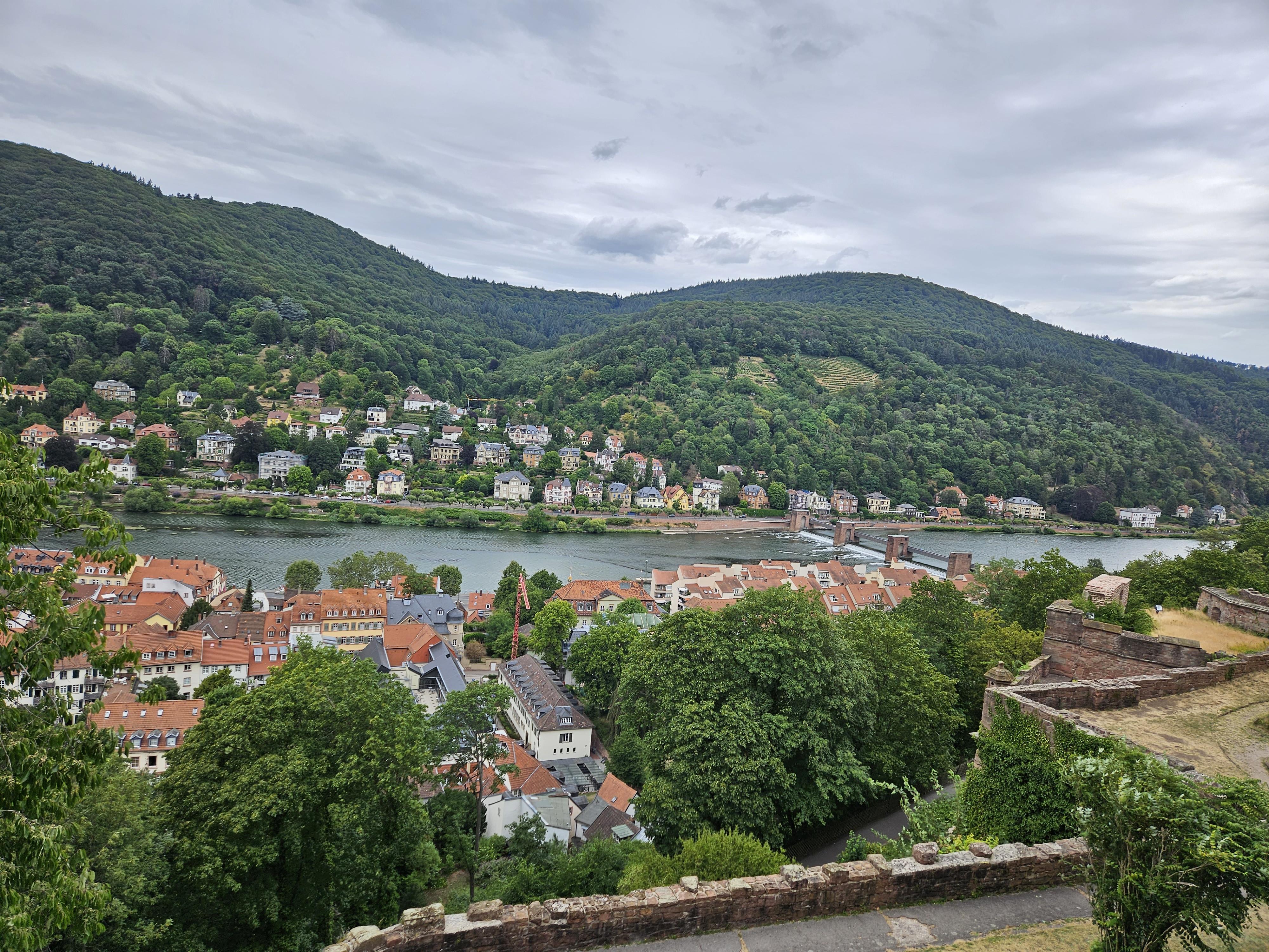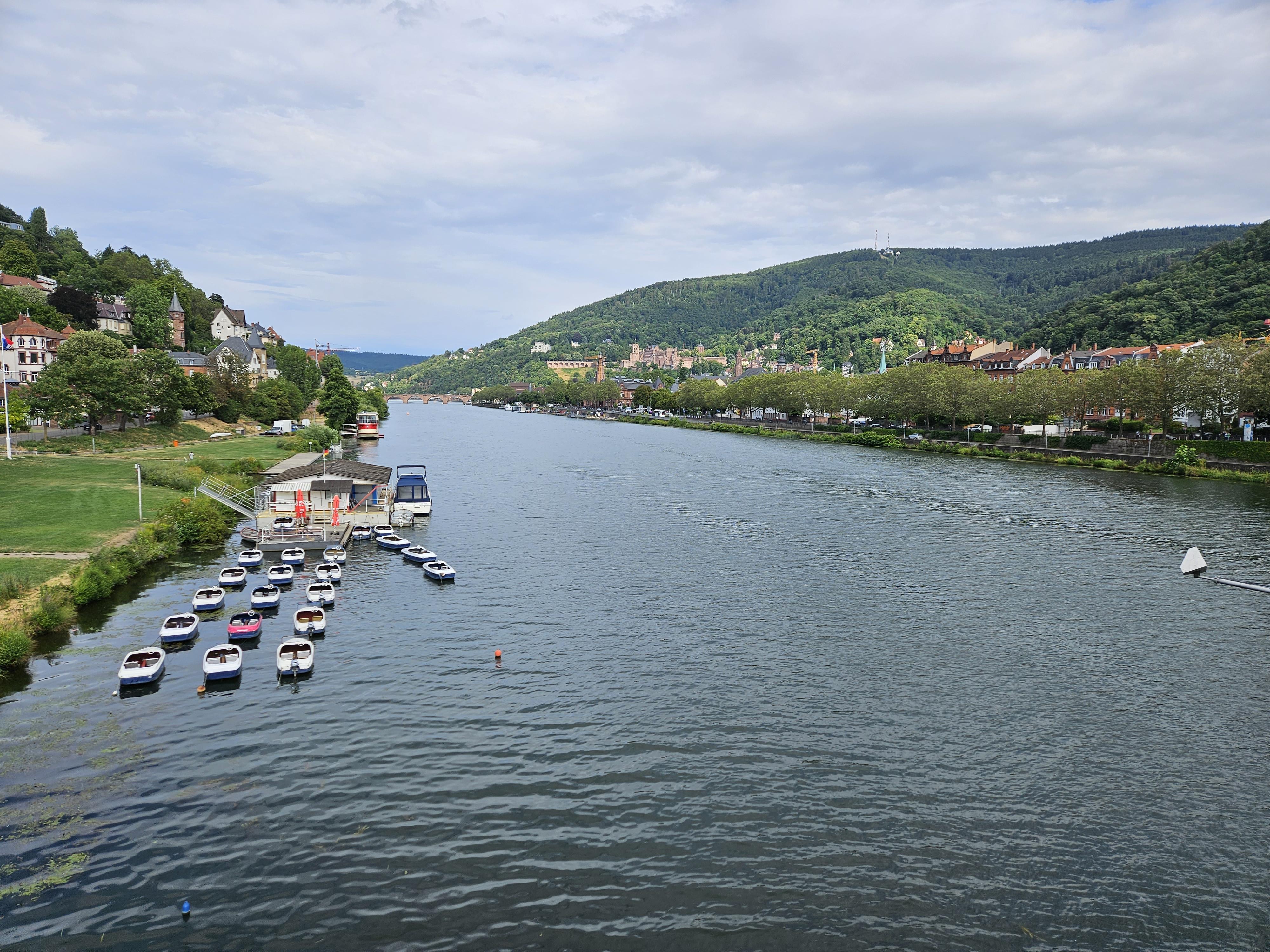 맞은편의 철학자의 길도 보이고 하이델베르크의 아담하고도 예쁜 집들이 네카어강과 잘 어울려 보기에도 좋다.