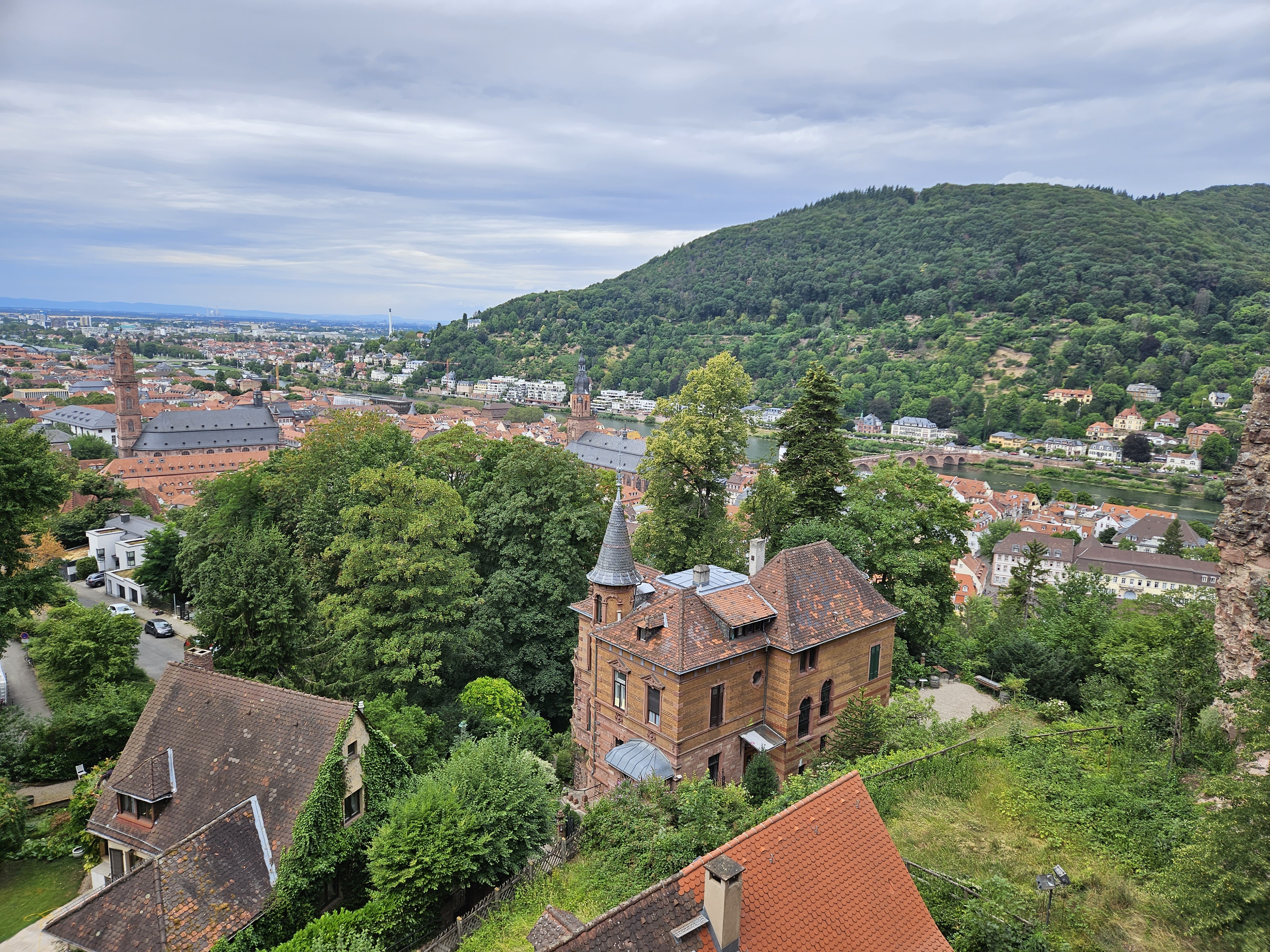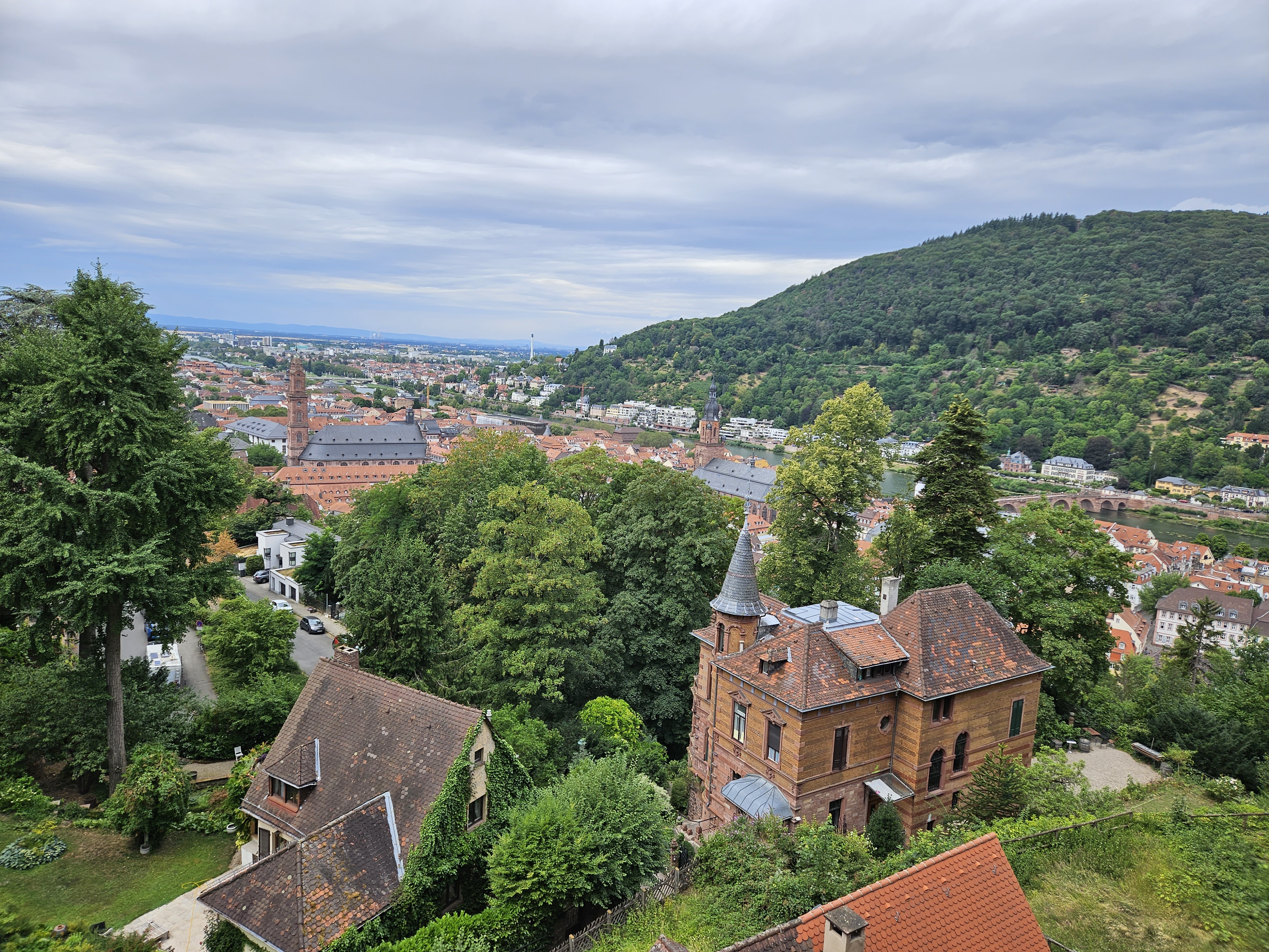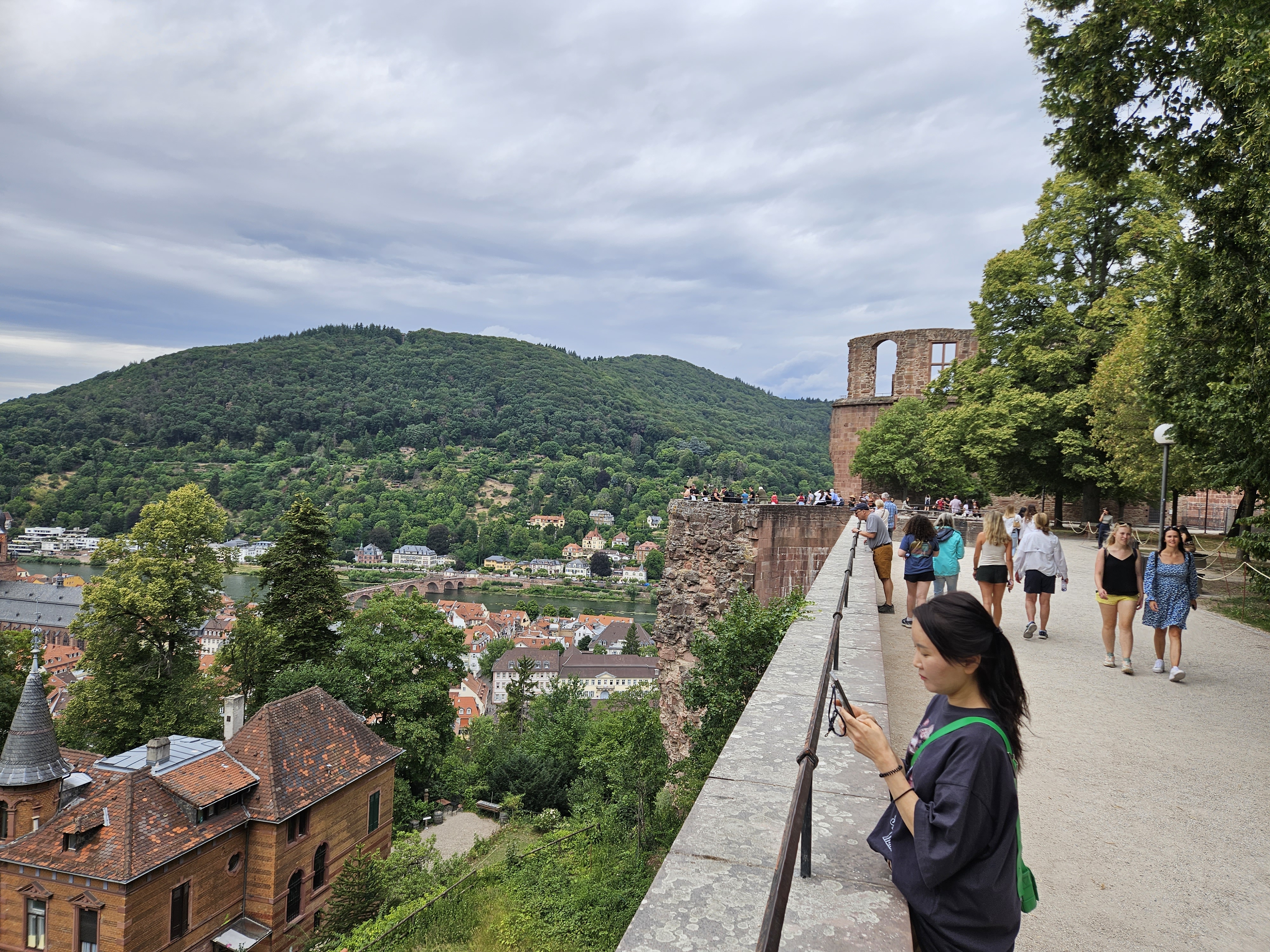 맞은편의 철학자의 길도 보이고 하이델베르크의 아담하고도 예쁜 집들이 네카어강과 잘 어울려 보기에도 좋다.