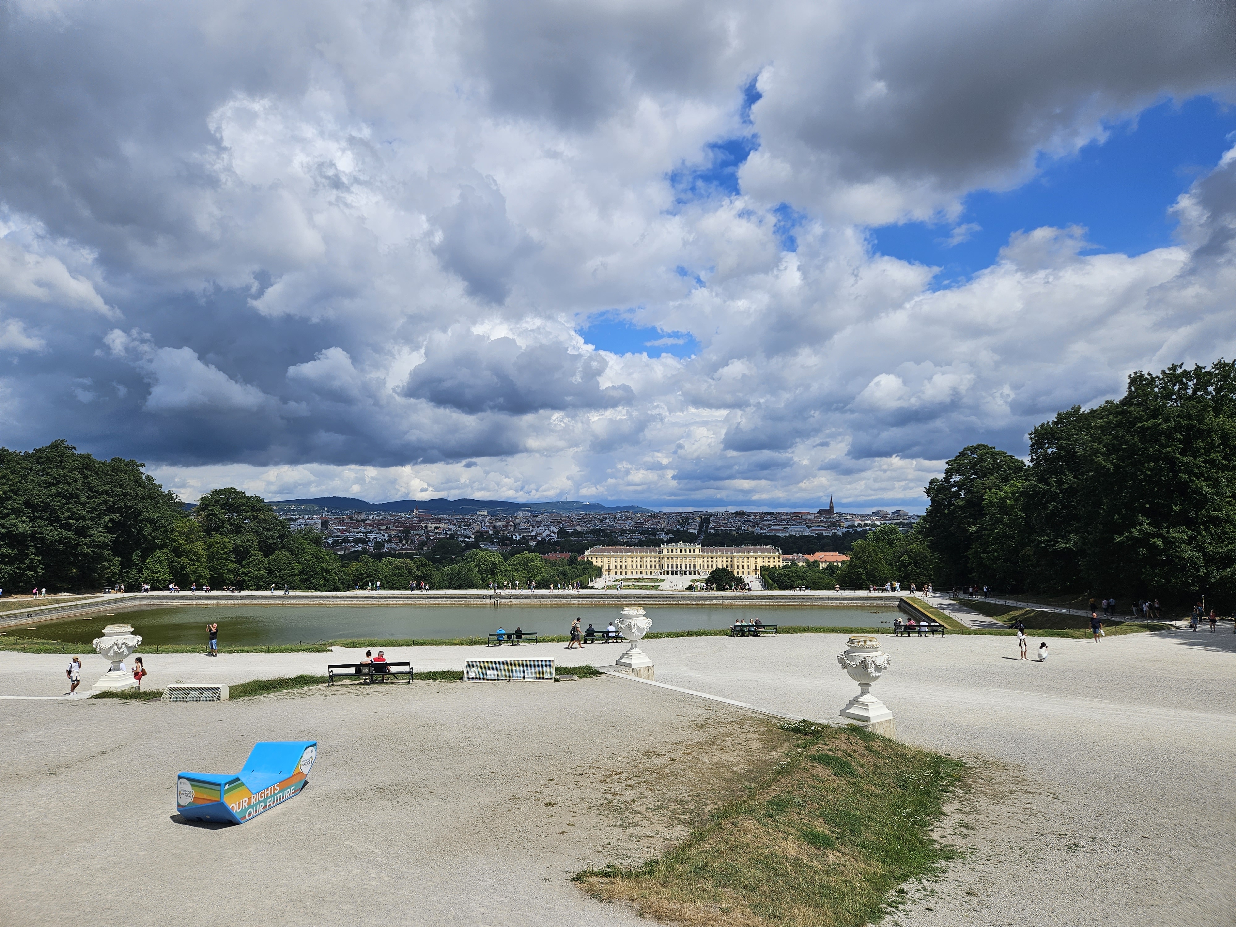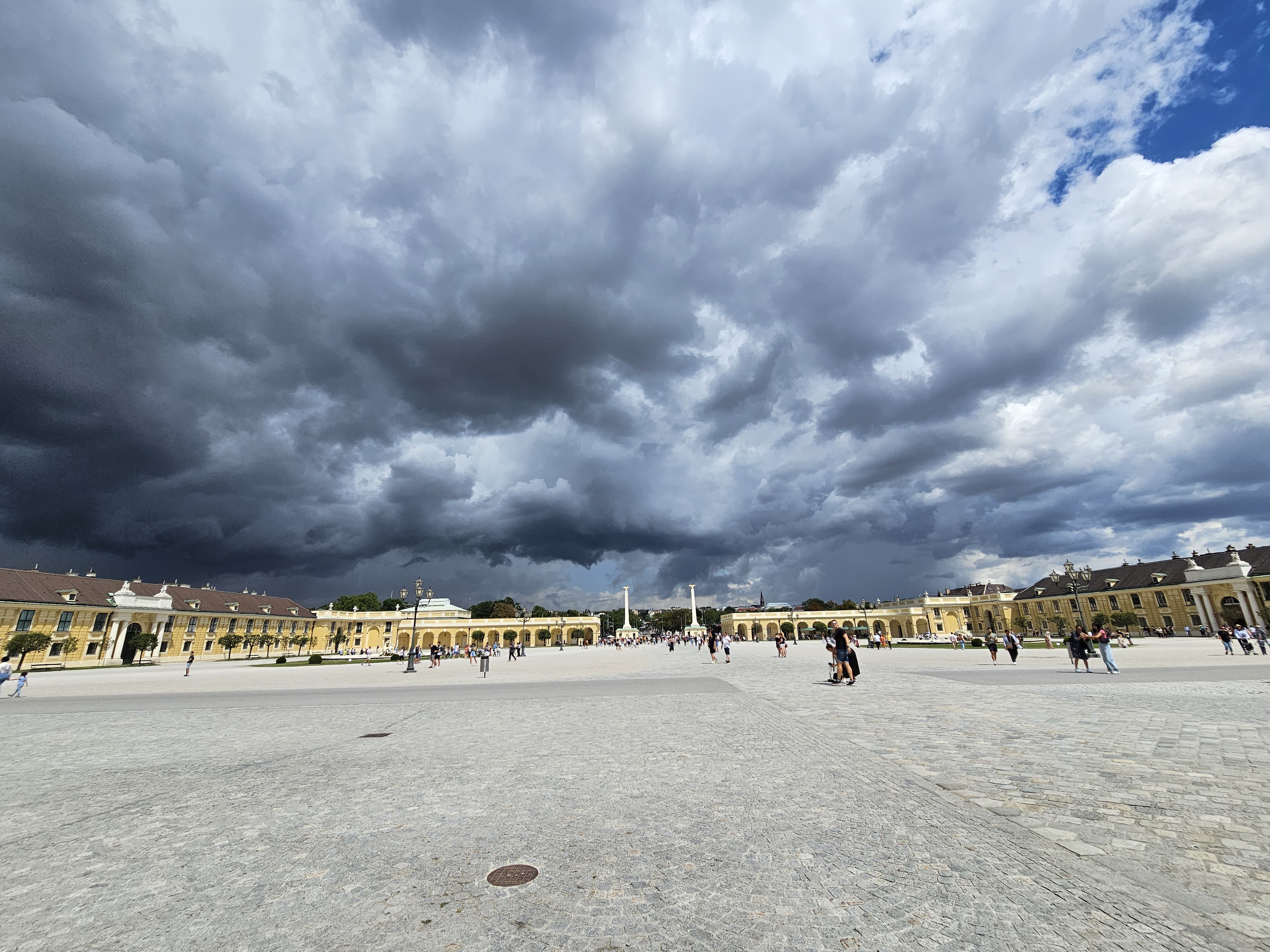 쉰브른에 내리니 한쪽하늘은 흐리고 바람이 불어 곧 비가 내릴 것도 같은 날씨이다.