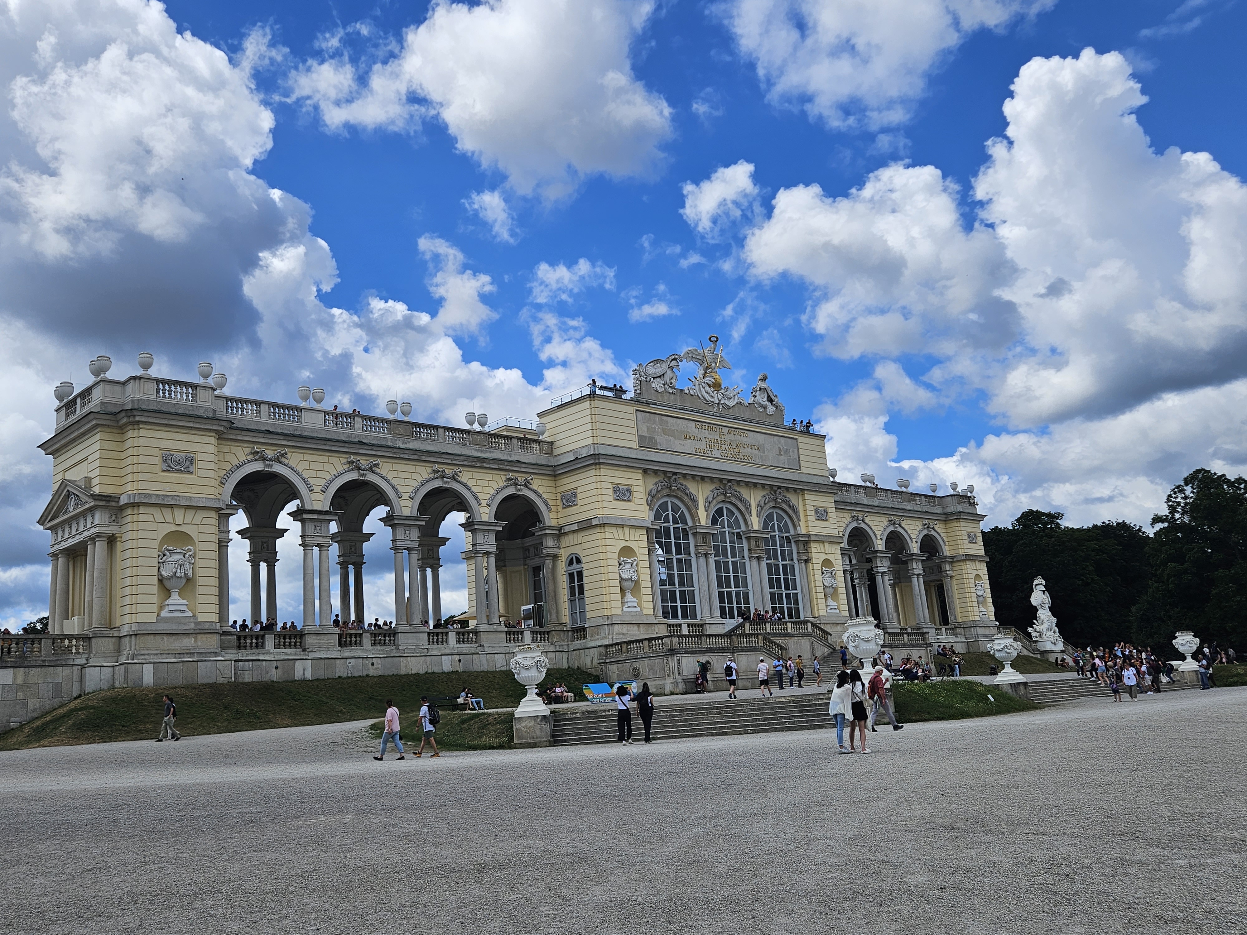 건물상부에서 내려다본 궁전의 전망이 아름답고도 시원스레 전망되고 멀리 비엔나의 시가도 내려다보인다.
