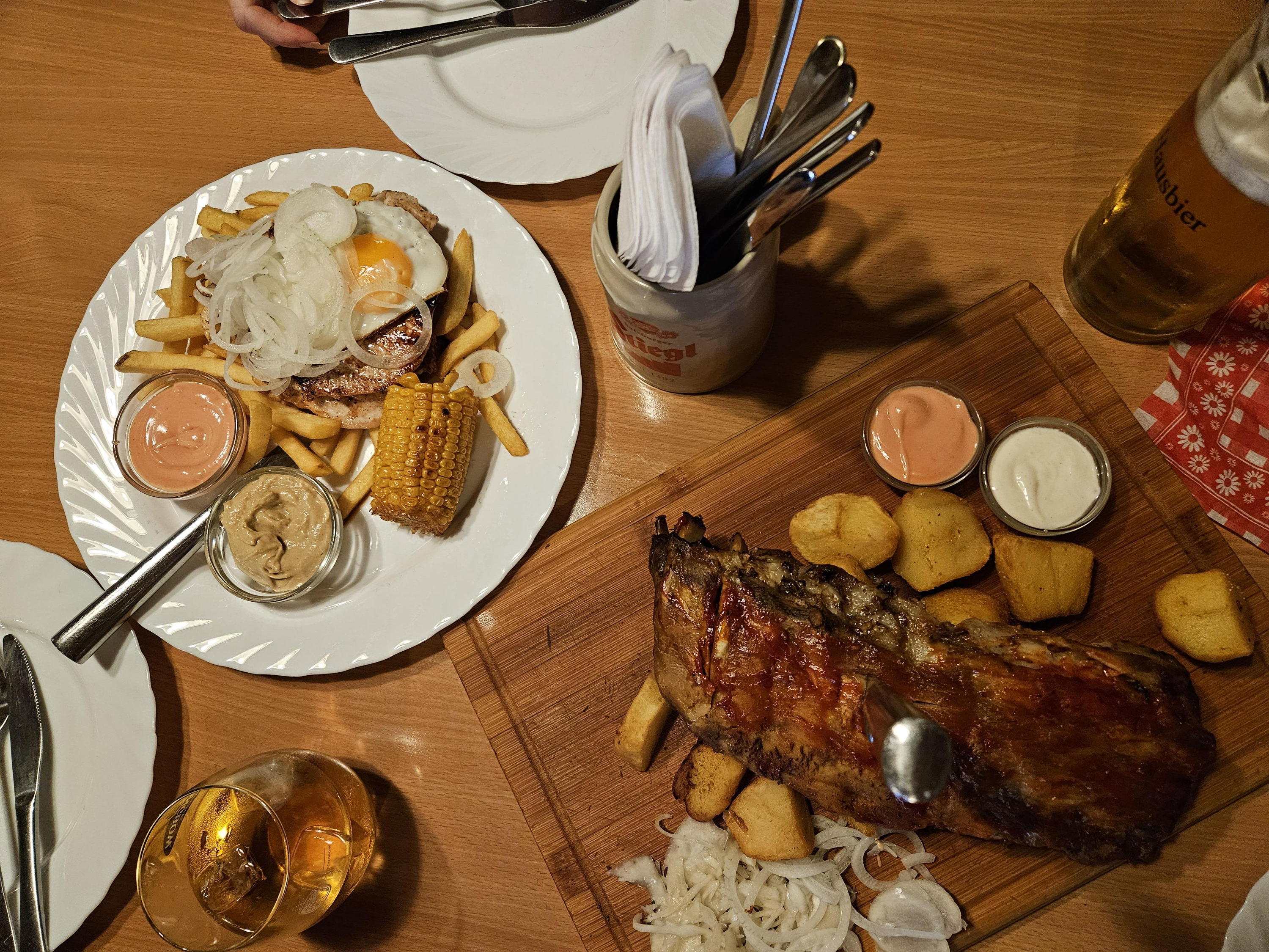 체력이 좋고 시장끼를 못느끼니 늦게 저녁을 먹자는 딸을 설득하여 인근 맛집에서 립스와 샐러드 등을 안주로