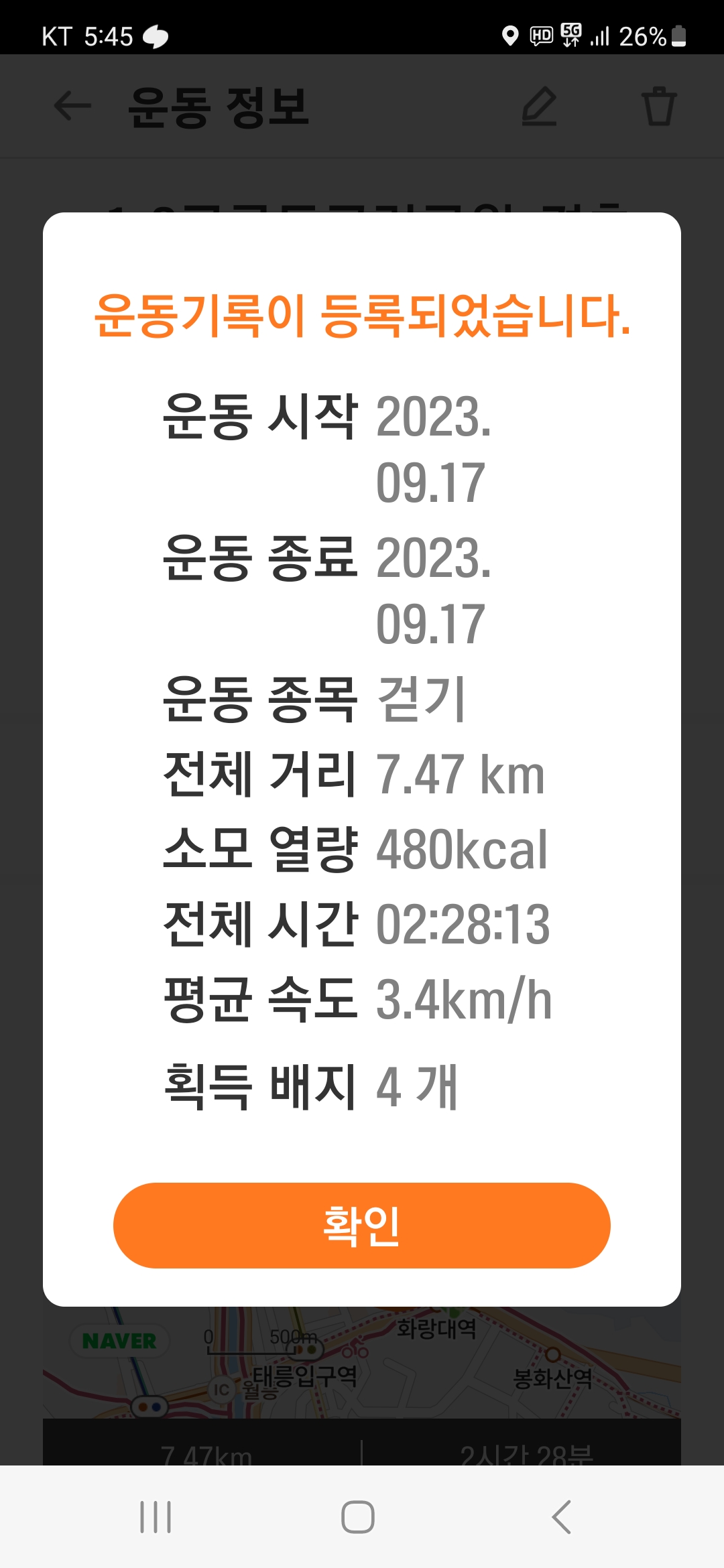 화랑대 철도공원까지 7.47km, 두시간 반을 걷고는 걷기를 마친다.