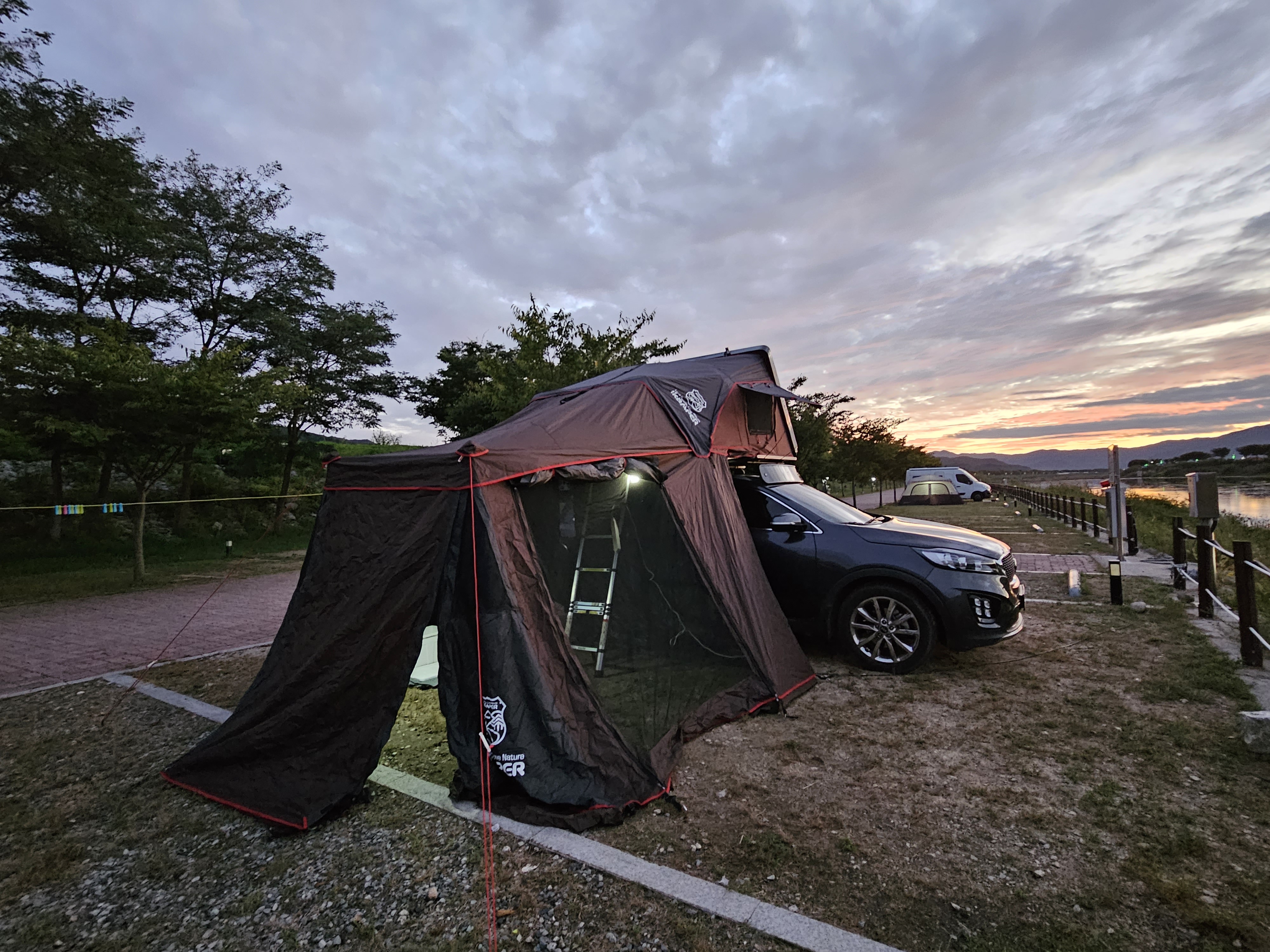 예약한 사이트는 루프탑이 들어갈수가 없어 강변으로 가란다.
