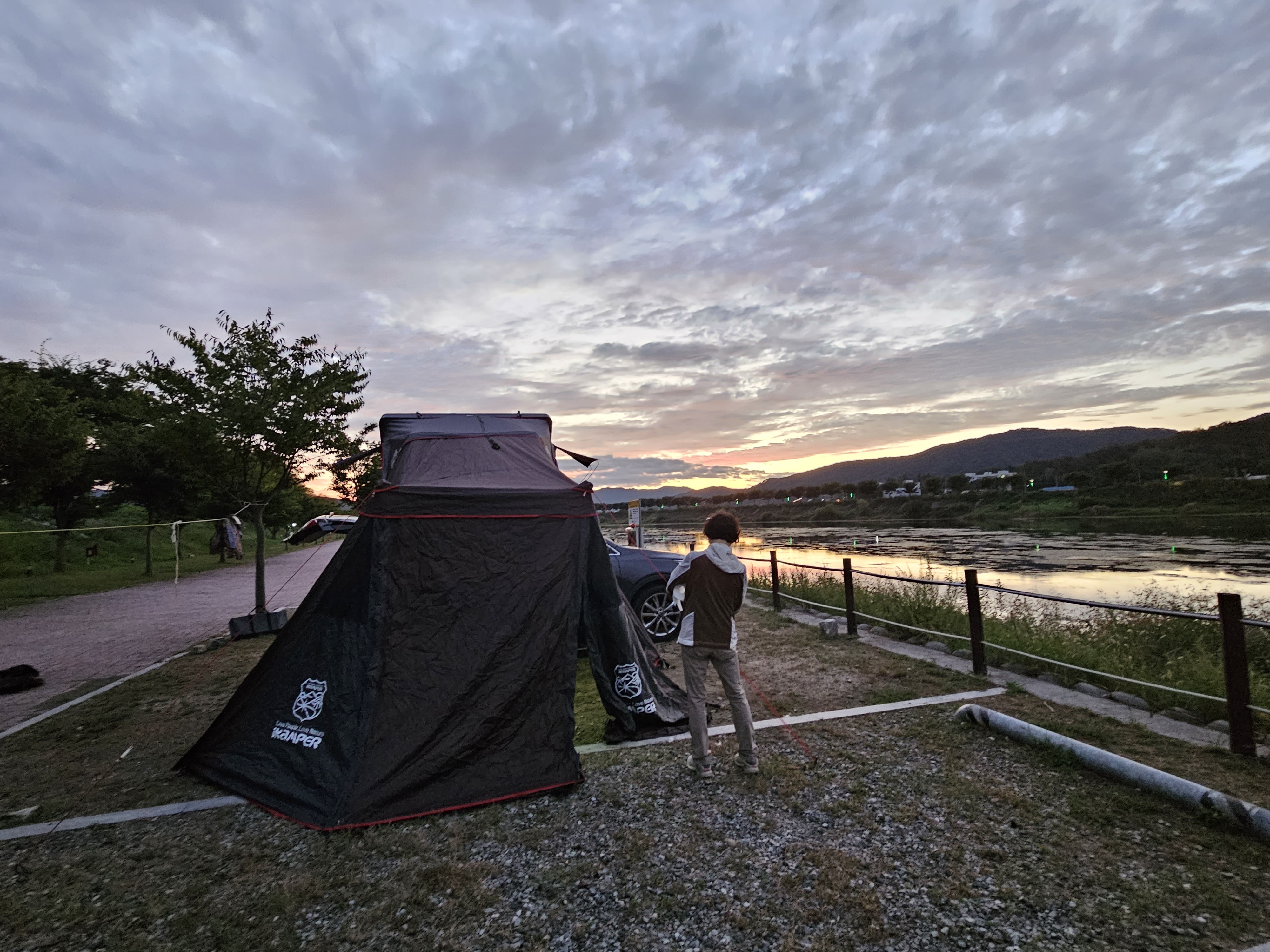 예약한 사이트는 루프탑이 들어갈수가 없어 강변으로 가란다.