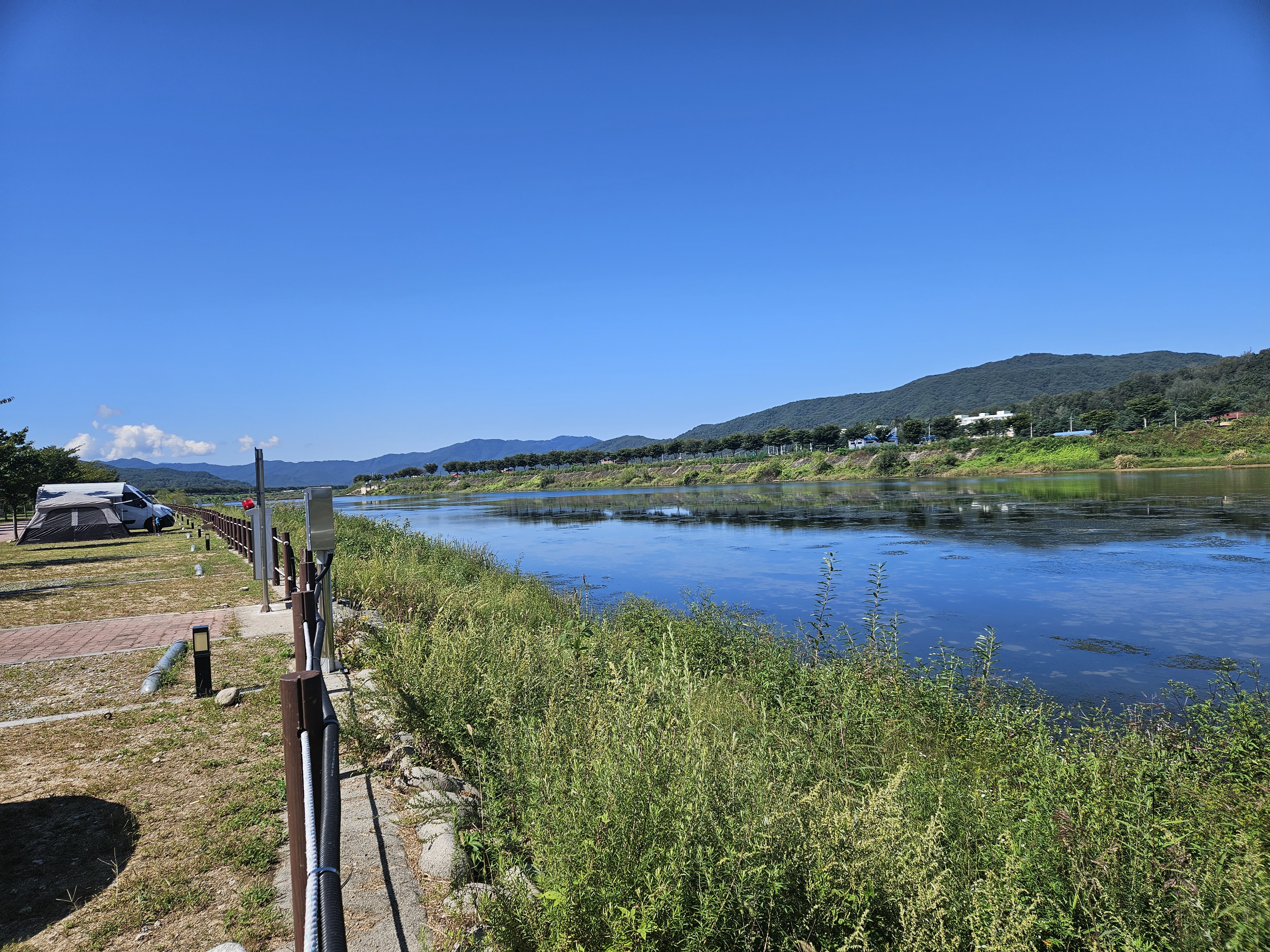 강변으로 이동하니 승리전망대에서 조망되던 DMZ안을 흐르던 화강이 흘러 내려오는 강변에 사이트가 조성되어있고