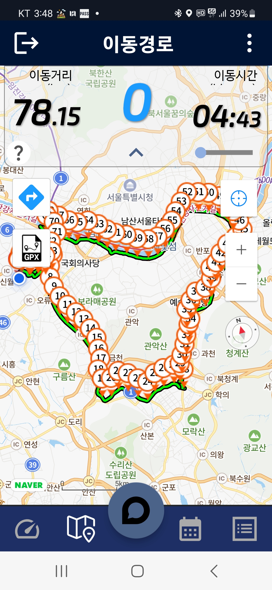 3.신정교-안양천-학의천-인덕원-과천-양재천-탄천-종합운동장-한강대교-안양천합수부-원점회귀,78.15km