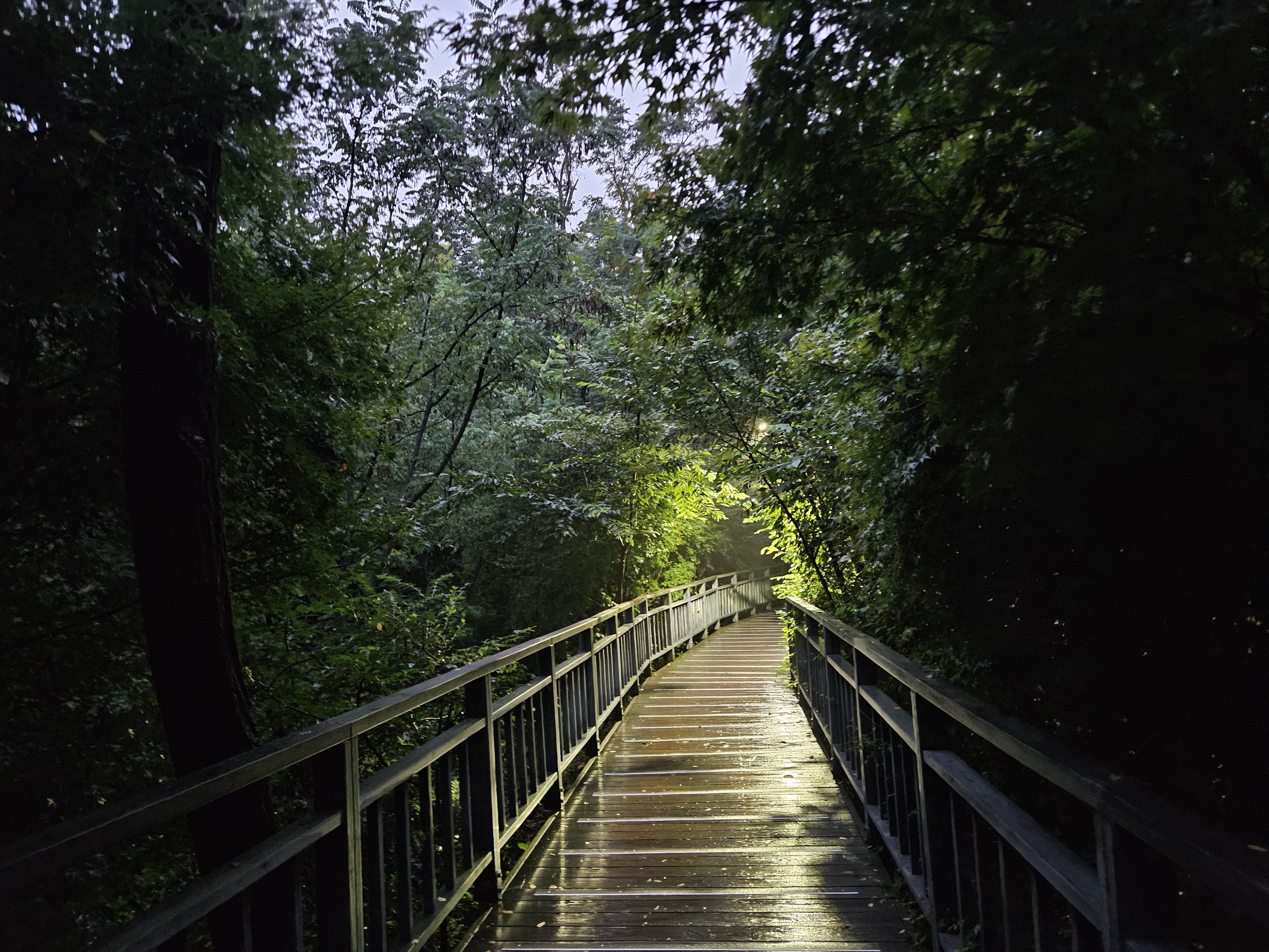 데크도 하루종일 내린비로 빗물에 젖어 있는데 여섯시반이 되니 가로등에 불이 들어오며 가을밤이 되어간다.