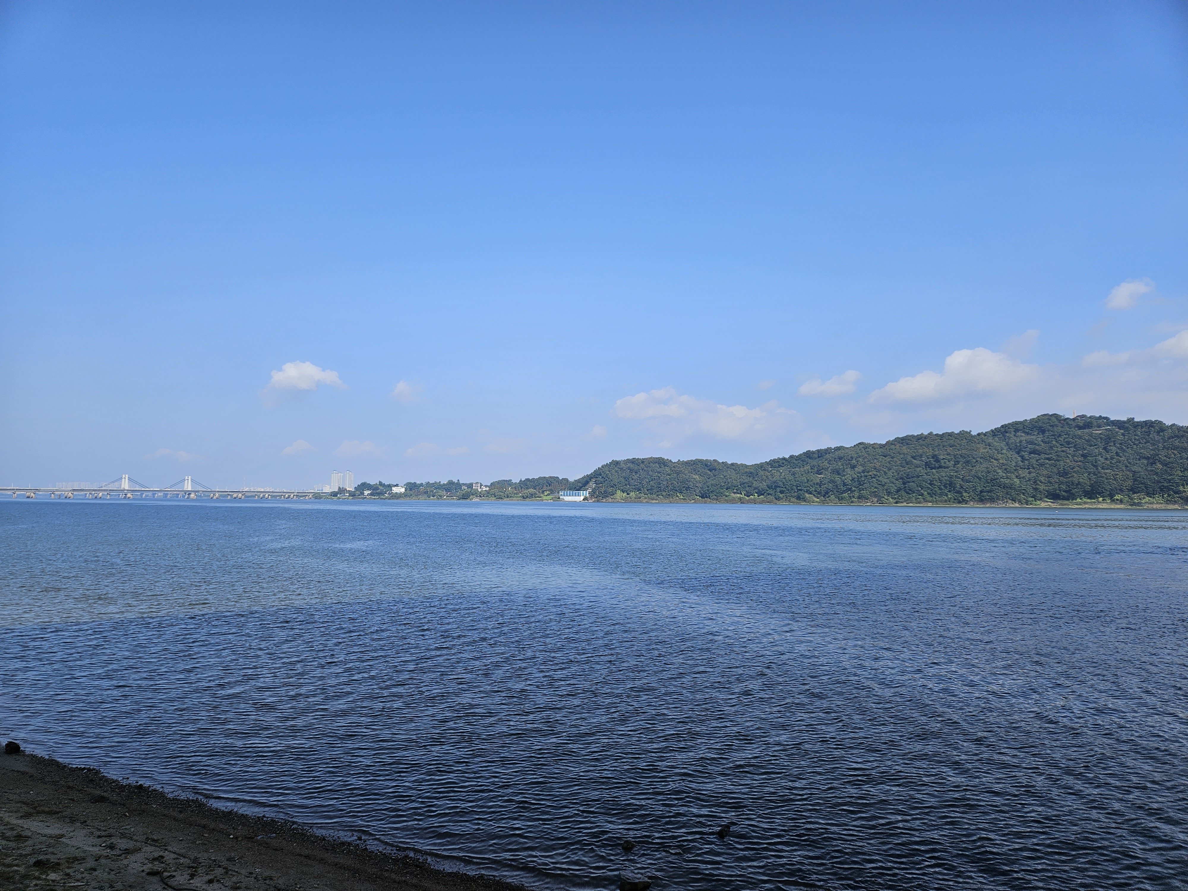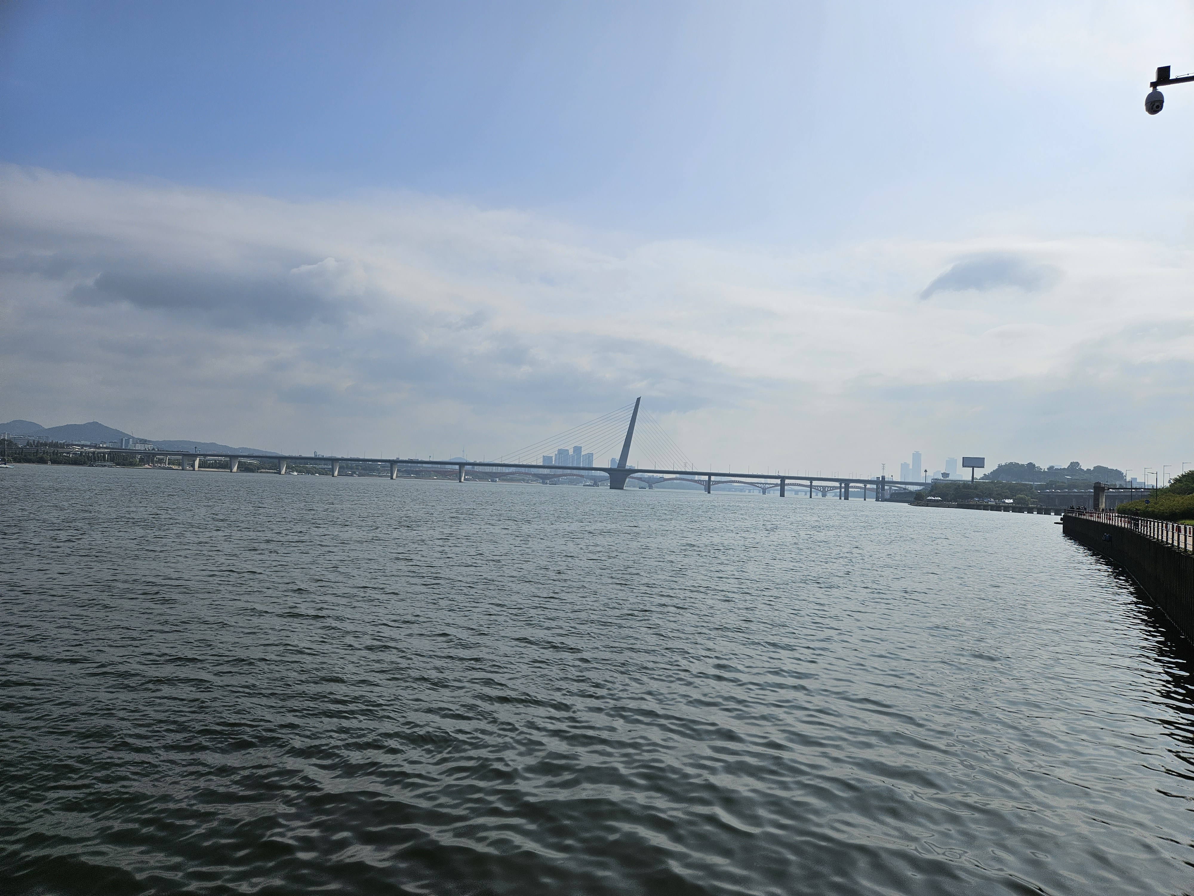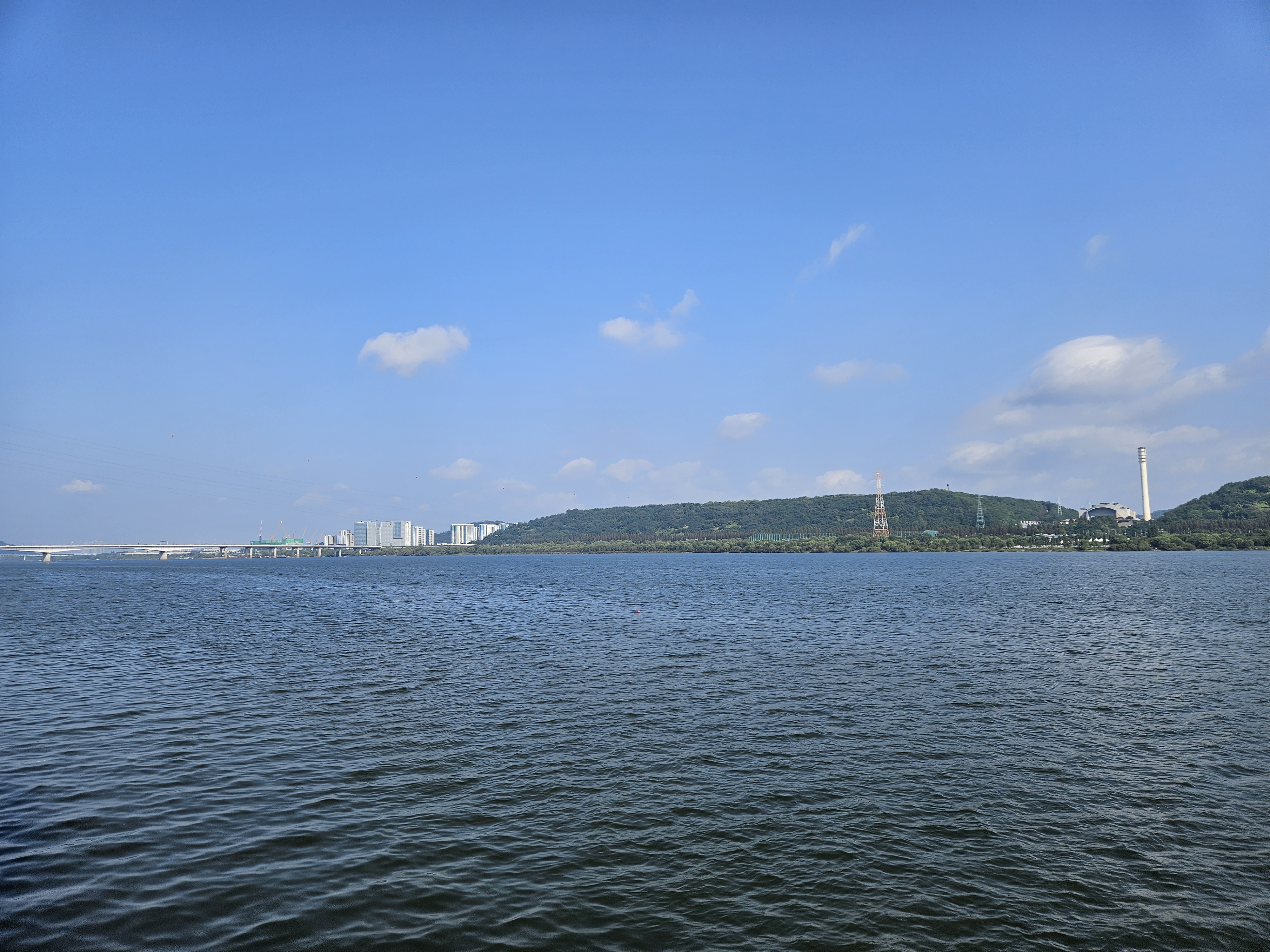 시원하게 한강합수부로 달리고는 방화대교를 향하다가 강변벤취에서 잠시 휴식을 취한다.