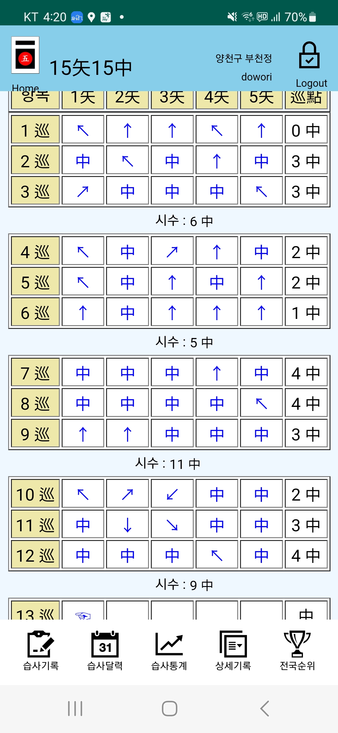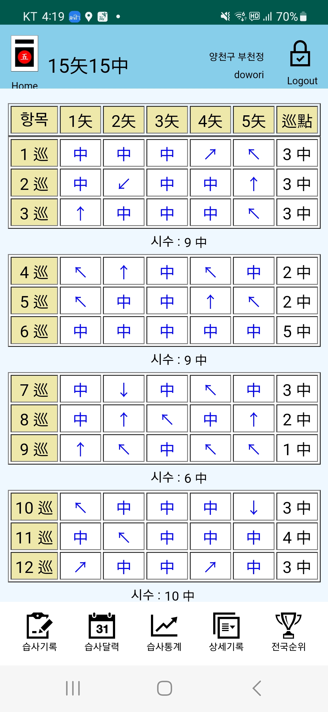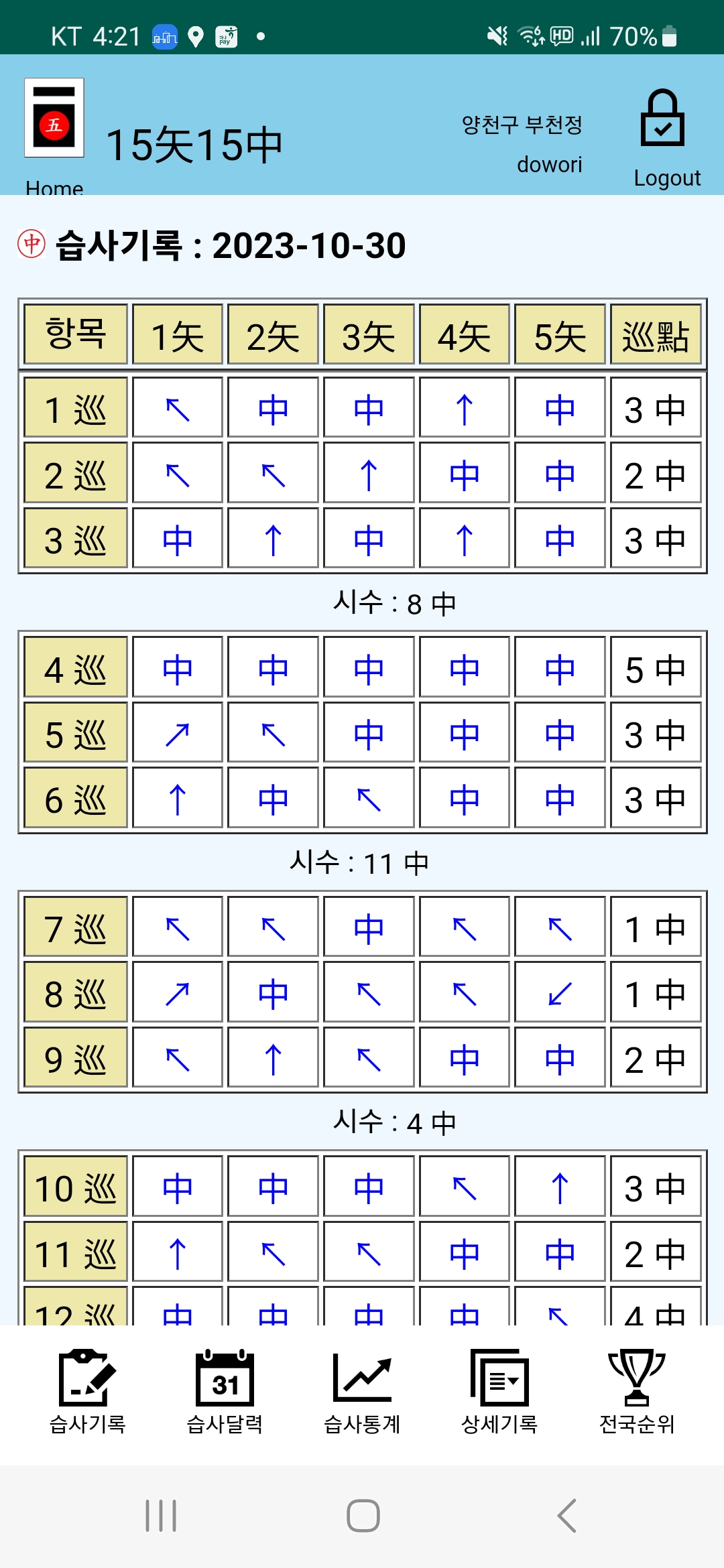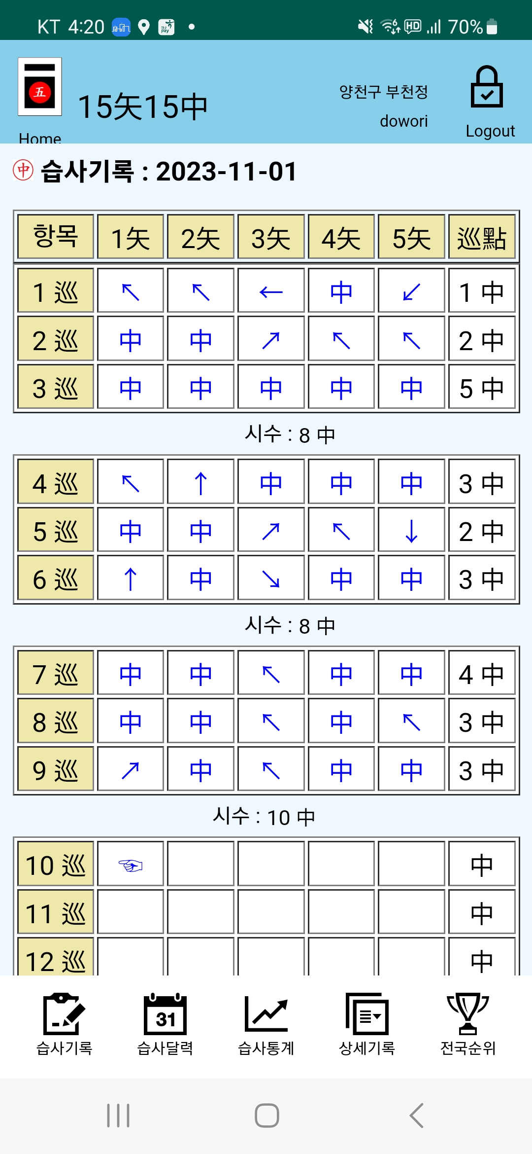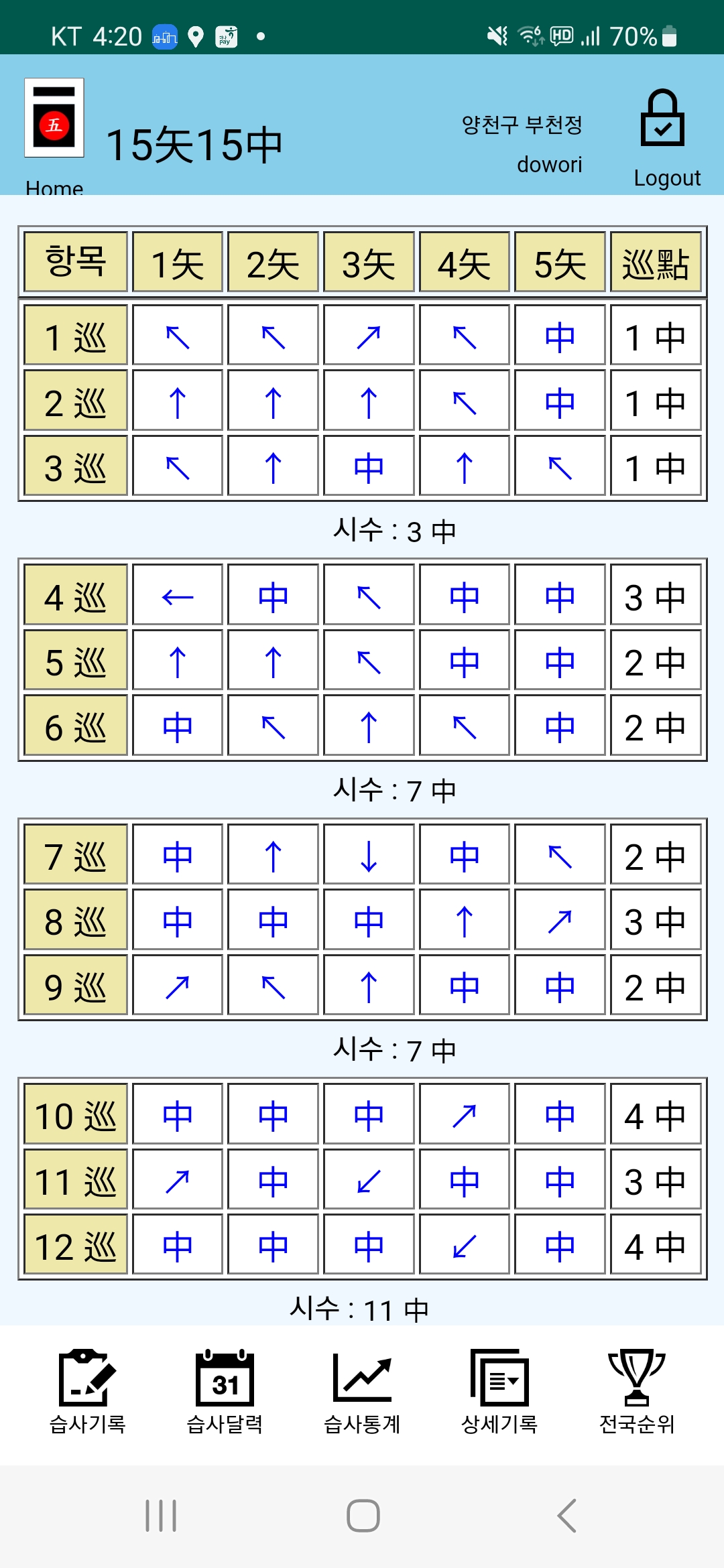 연초부터 지금까지 꾸준하게 열심히 습사를 하였다.