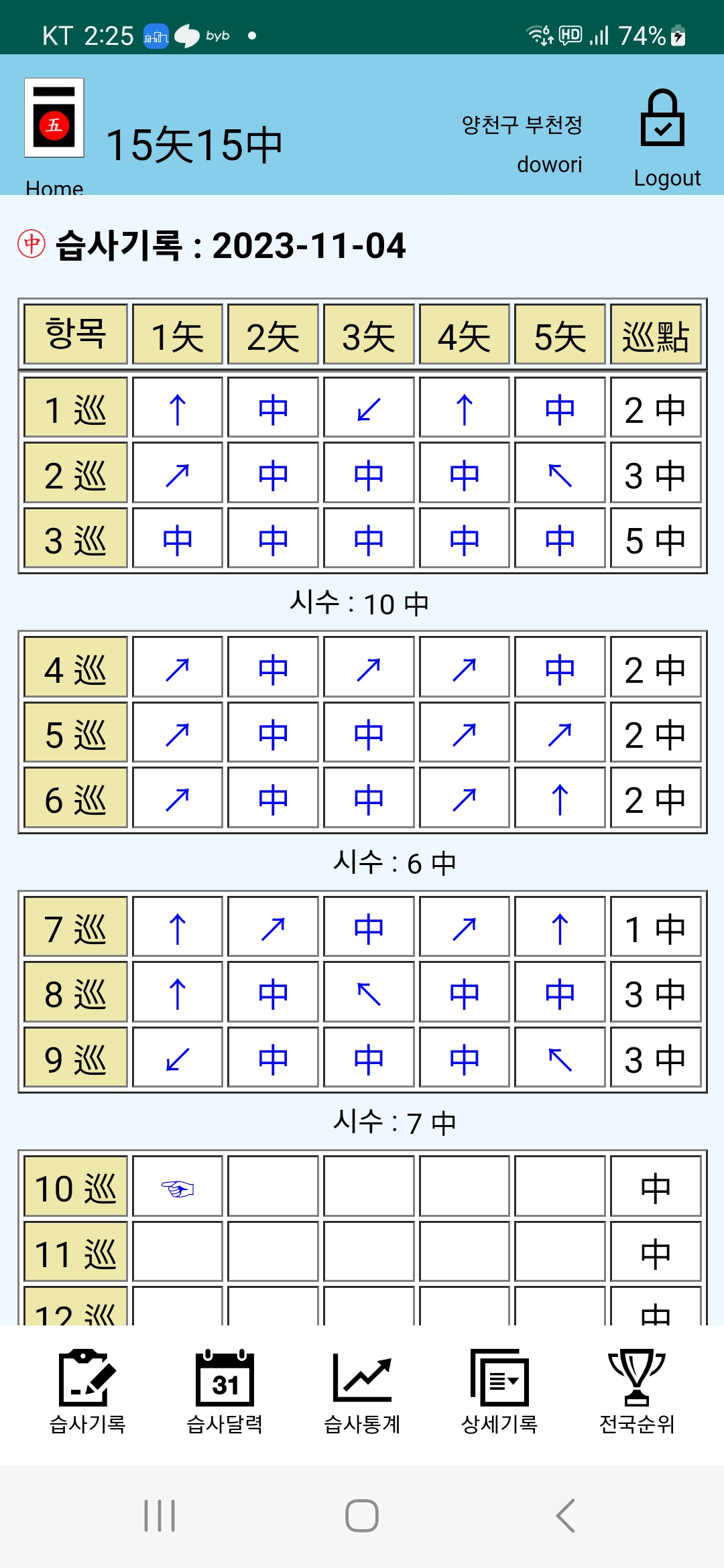 연초부터 지금까지 꾸준하게 열심히 습사를 하였다.